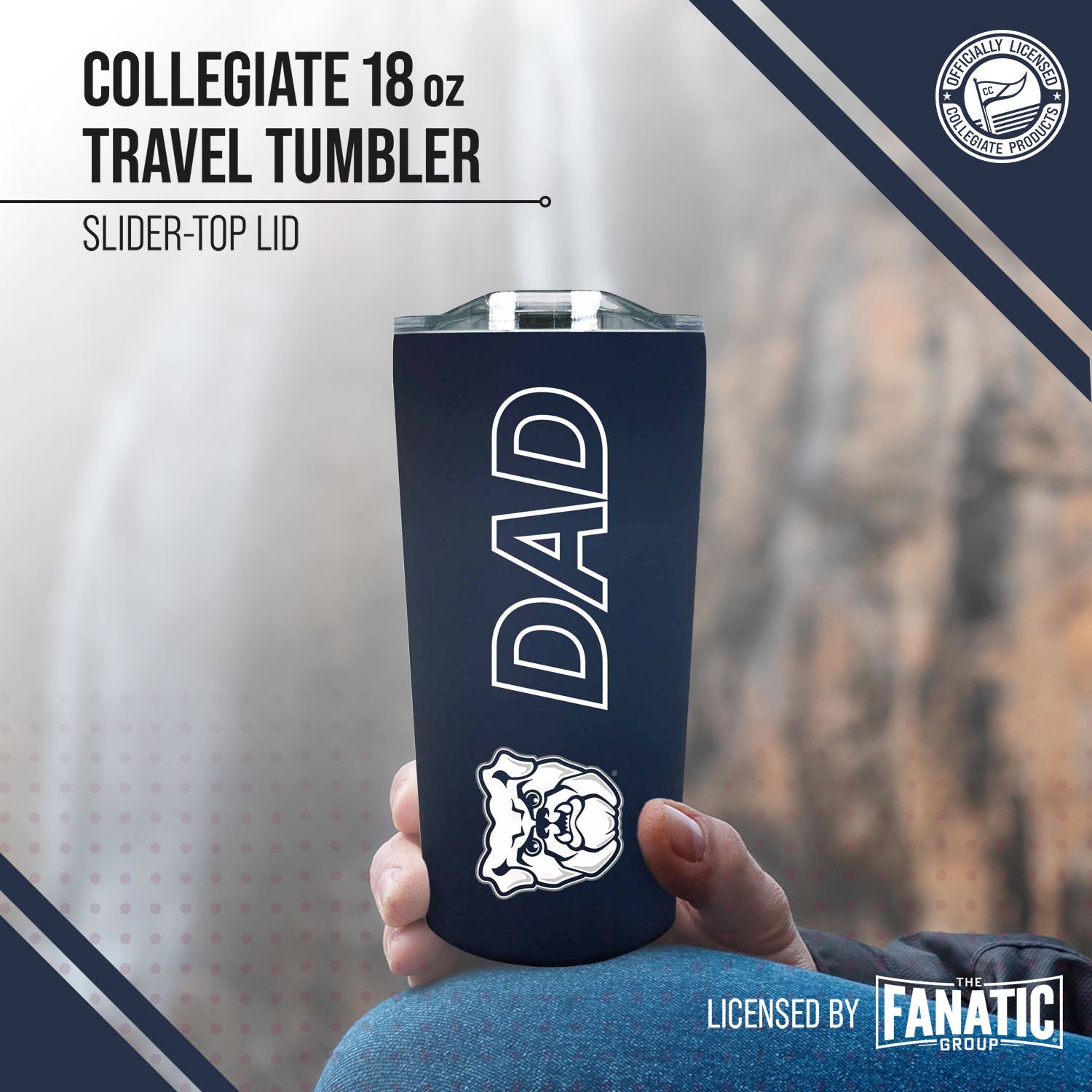 Our stainless steel tumbler mugs for dad are designed for constant use in any type of setting! At a sports game? These insulated tumblers are compact and can fit in most cup holders. On the move? Our contoured spout makes it easy to sip on the go! Your tumbler is there to compliment your Butler sweatshirt when you need to stay warm and there when you're looking for an ice-cold refreshment. No matter the setting, show your school and dad pride while properly and efficiently preserving the desired temperature of your beverage! This Butler Bulldogs DAD travel mug also makes a great gift if you're looking to give your dad, step dad, or father figure in your life a present! All of our products feature the official team colors, logos and lettering. We don't skimp on quality in any way. The colors are always vibrant and the graphics are always accurate and brimming with team spirit. Let everyone know you're a cool dad and get this dad tumbler today!