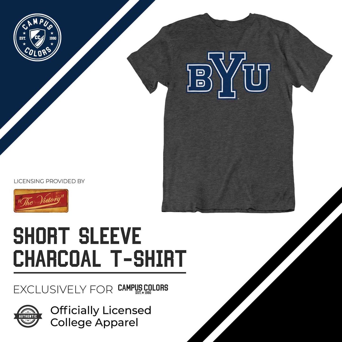 BYU Cougars Campus Colors NCAA Adult Cotton Blend Charcoal Tagless T-Shirt - Charcoal