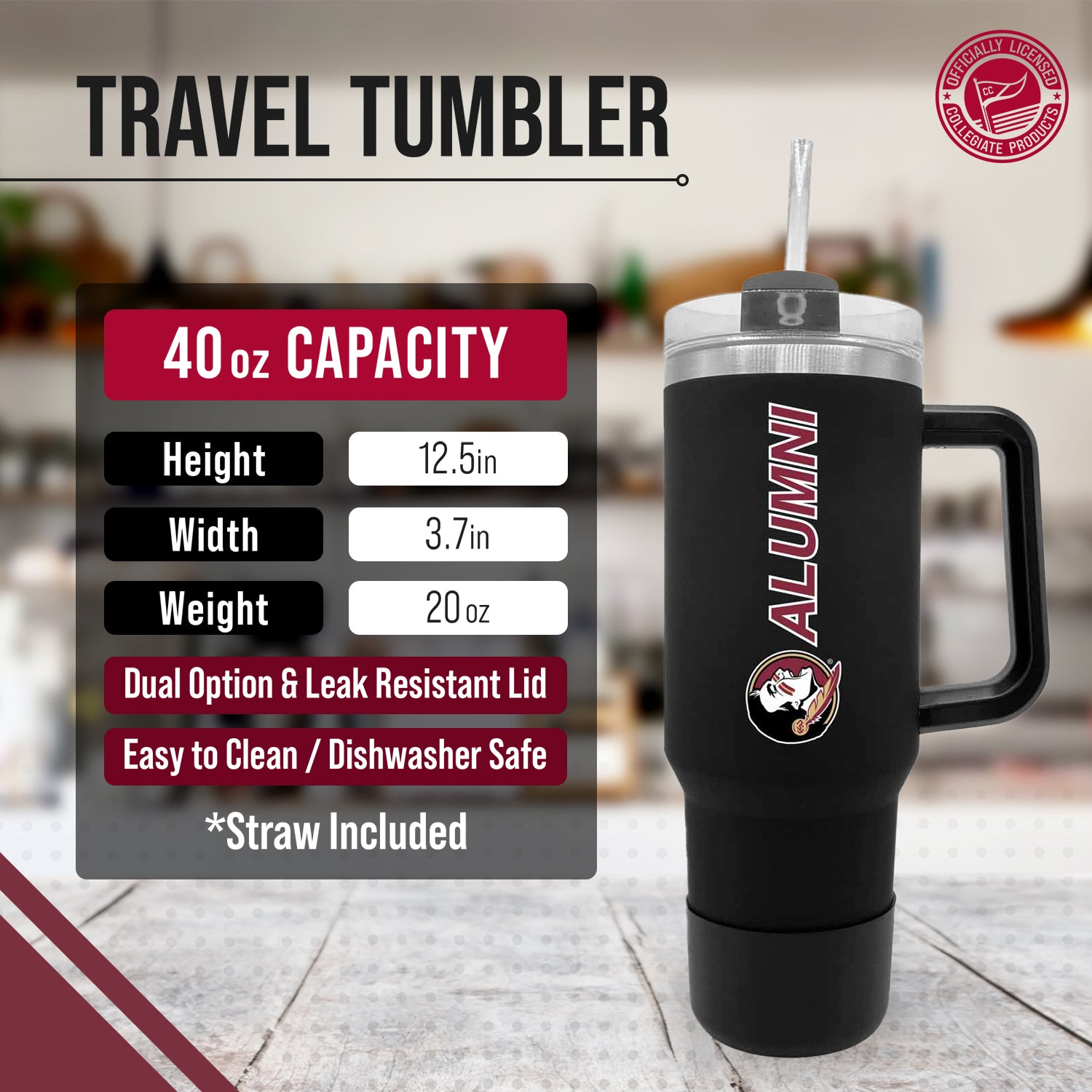 Florida State Seminoles Collegiate 40oz Stainless Steel Travel Tumbler with Handle for Alumni - Black