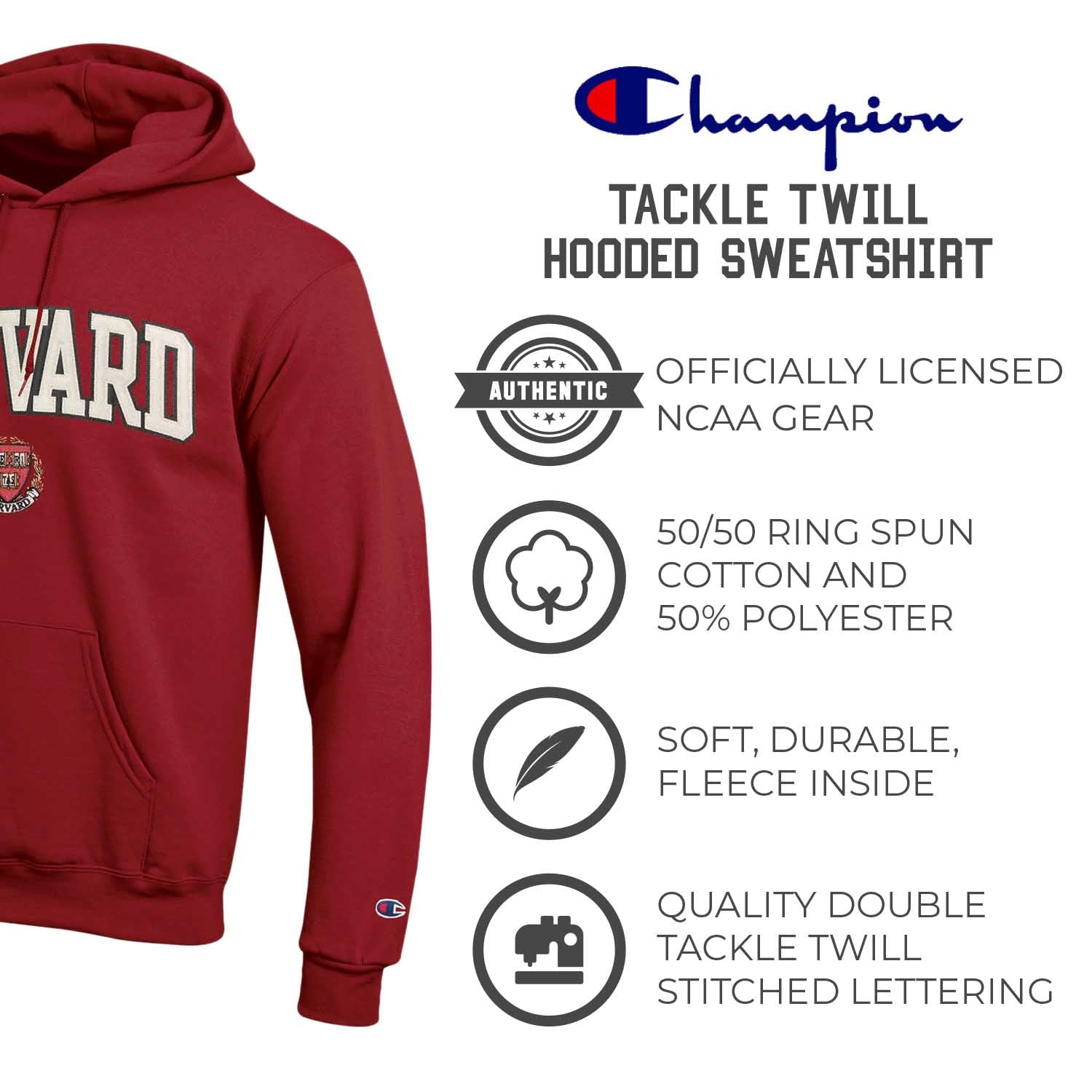 Harvard Crimson Champion Adult Tackle Twill Hooded Sweatshirt - Maroon