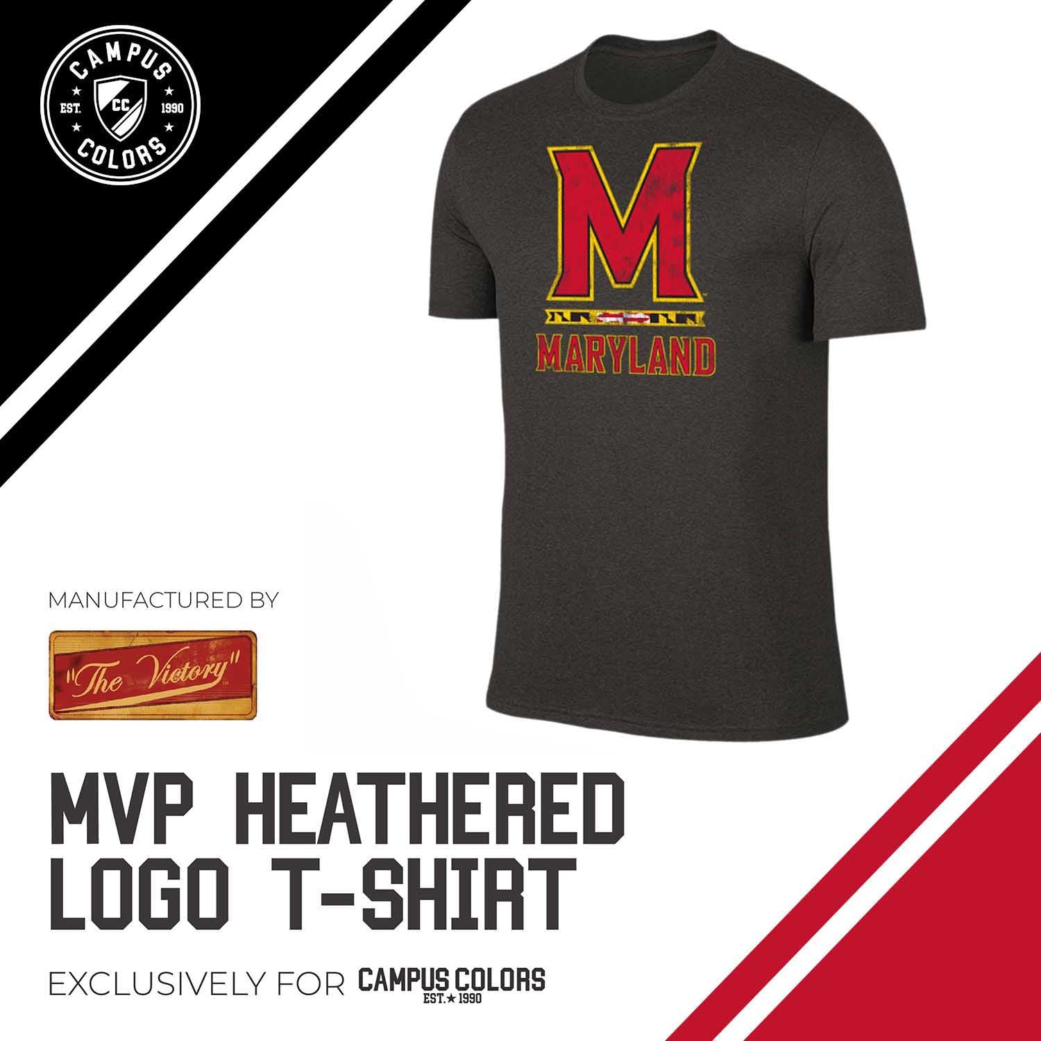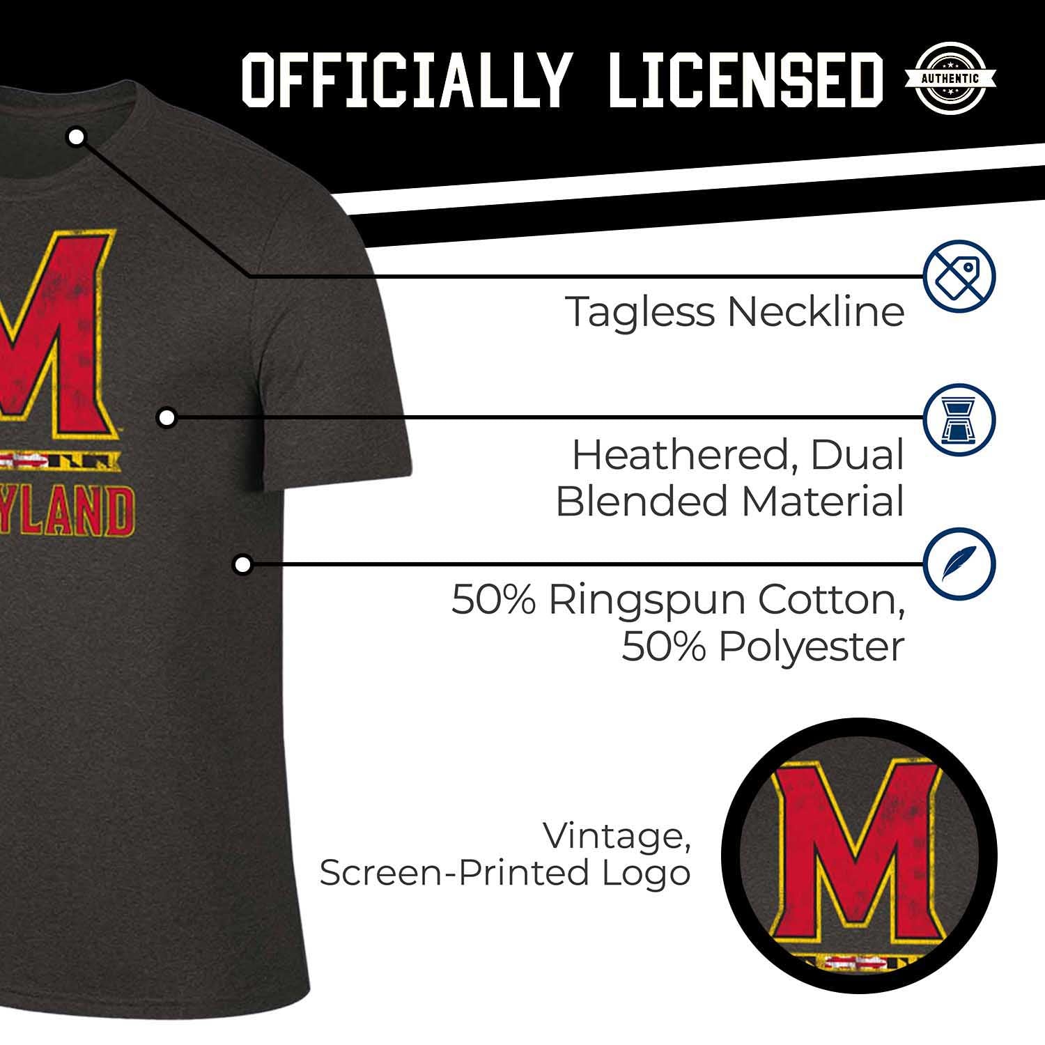 Support your Terrapins through another successful season while sporting this must-have shirt! Your dedication will be on full display when you wear the Maryland Terrapins NCAA Adult MVP Heathered Logo T-Shirt! This heathered t-shirt features official team colors as well as your favorite team name and logo! The screen printed graphics are displayed in a vintage style that gives you the look of a loyal and seasoned fan. Made from a dual blend of ringspun cotton and polyester, this super soft shirt will have you staying comfortable all day long! Wear it at the next tailgate or big game, or even while you watch your team win from home! Perfect for yourself or that next birthday, Christmas, or graduation gift you need to find! Never let your Terrapins fandom be questioned again, get this shirt today!