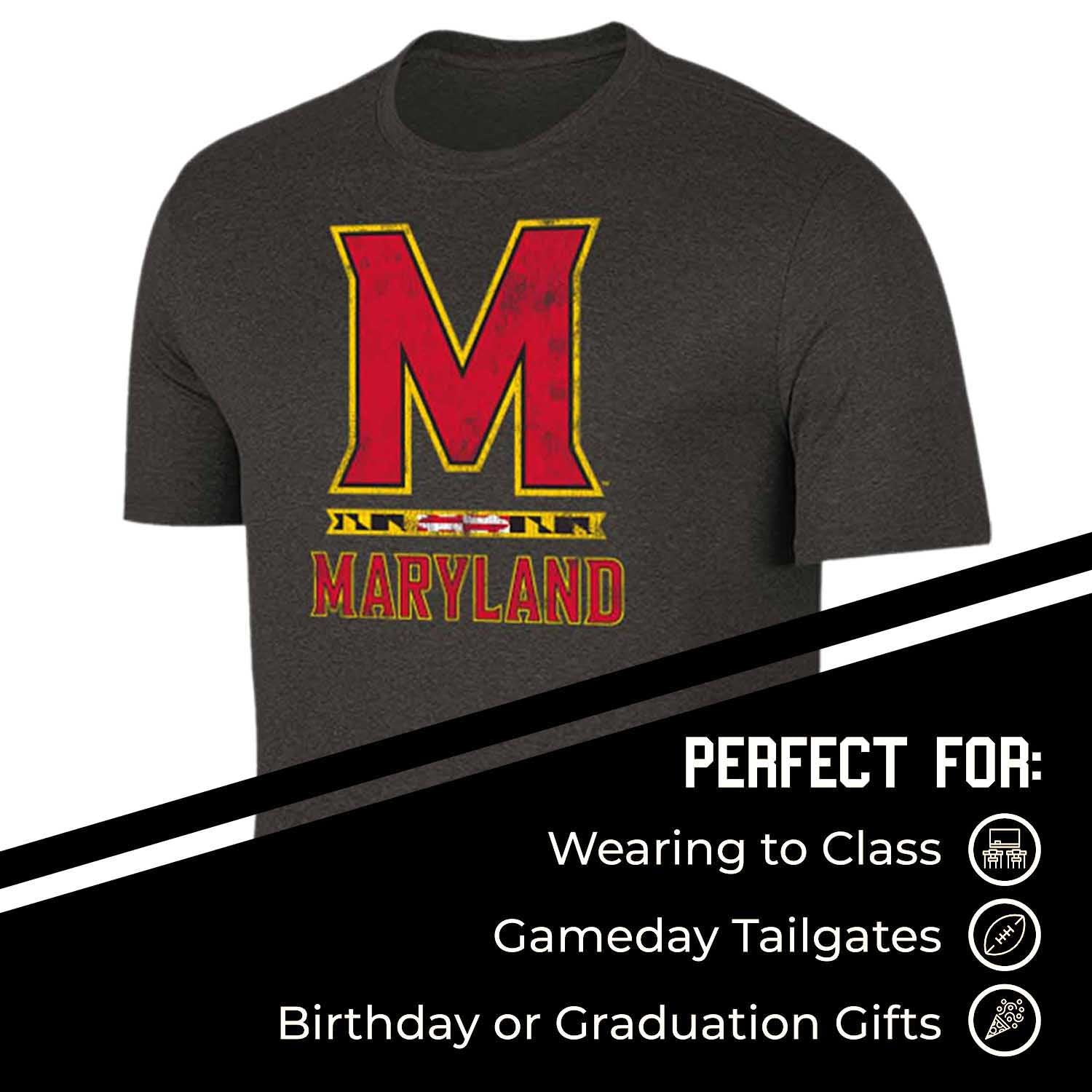 Maryland Terrapins Adult MVP Heathered Cotton Blend T-Shirt - Black
