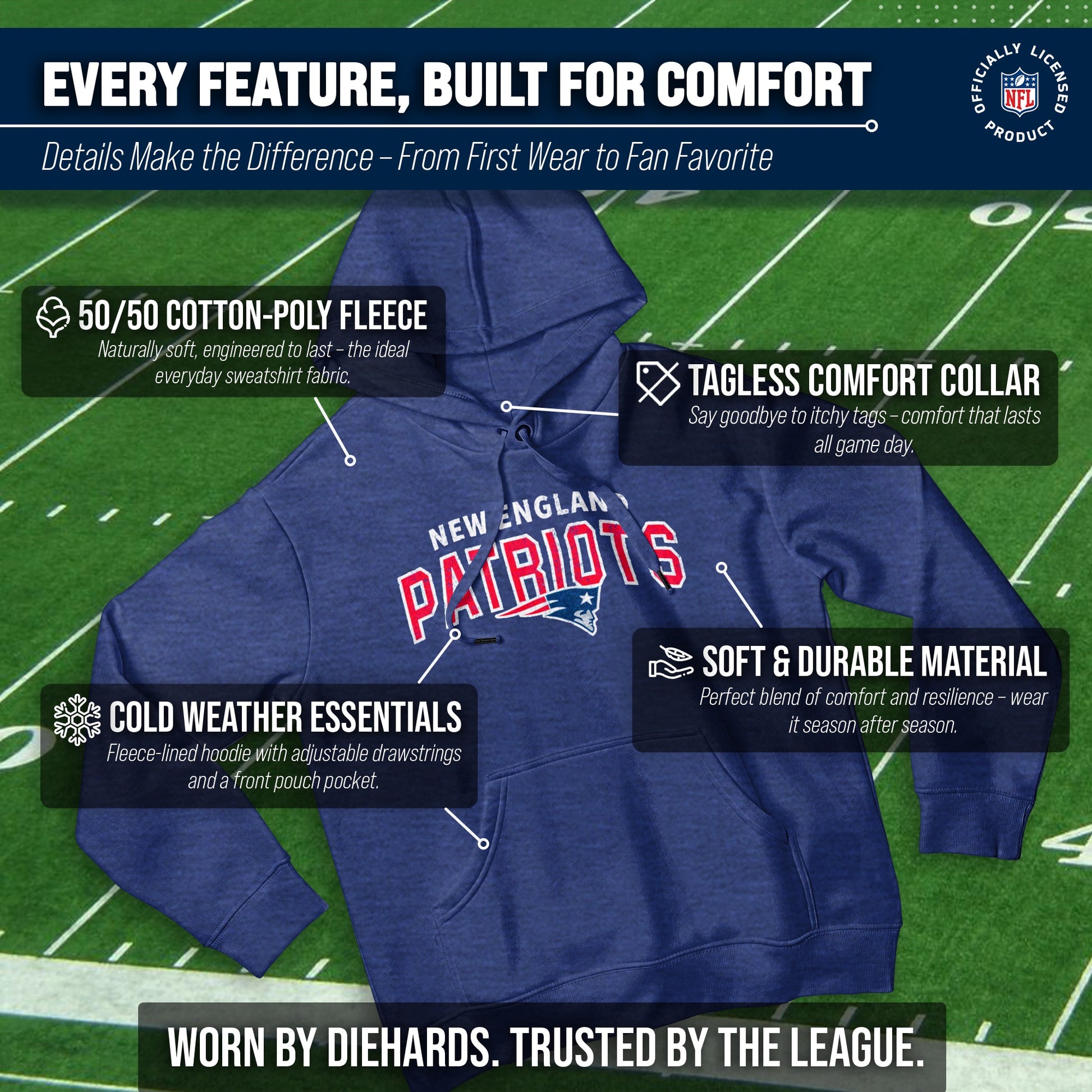 New England Patriots NFL Adult Unisex Starting Fresh Ultra Soft Fleece Hooded Sweatshirt - Navy