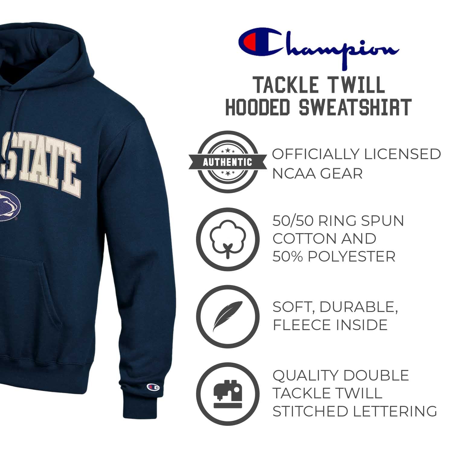 Penn State Nittany Lions Champion Adult Tackle Twill Hooded Sweatshirt - Navy