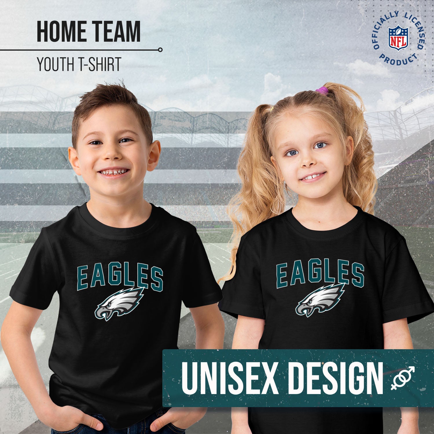 Philadelphia Eagles NFL Youth Home Team Tee- Youth Pro Football T-Shirt For Boys & Girls Kids clothes - Black