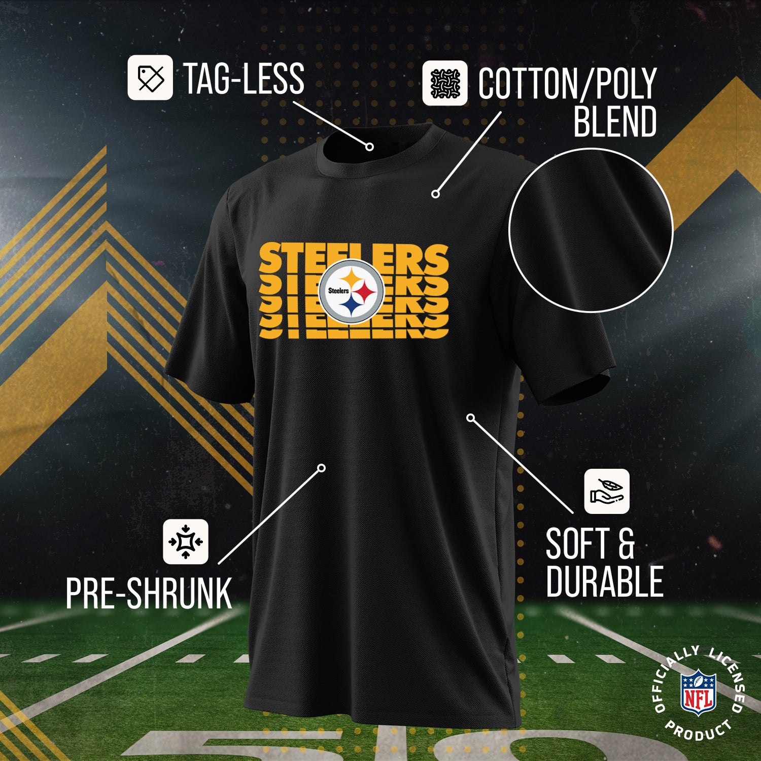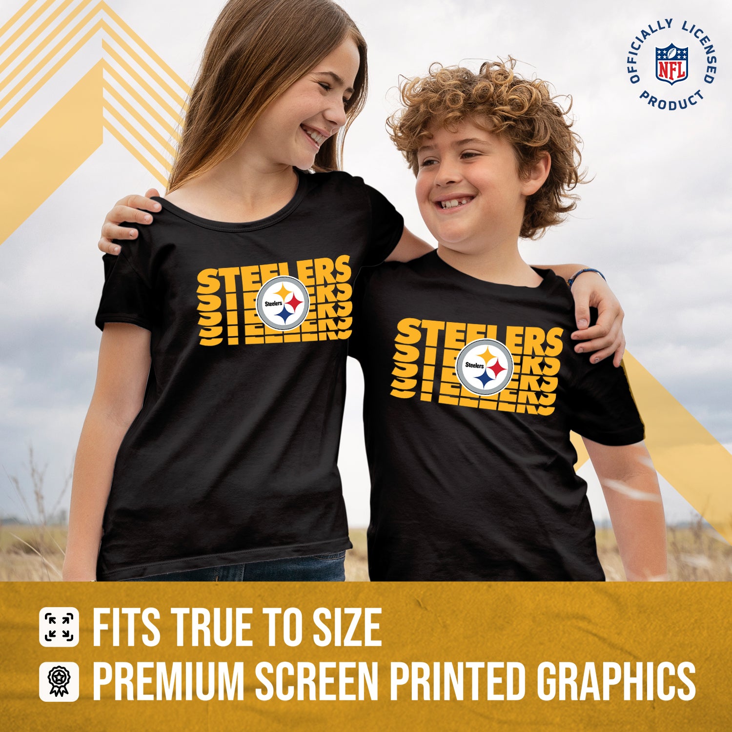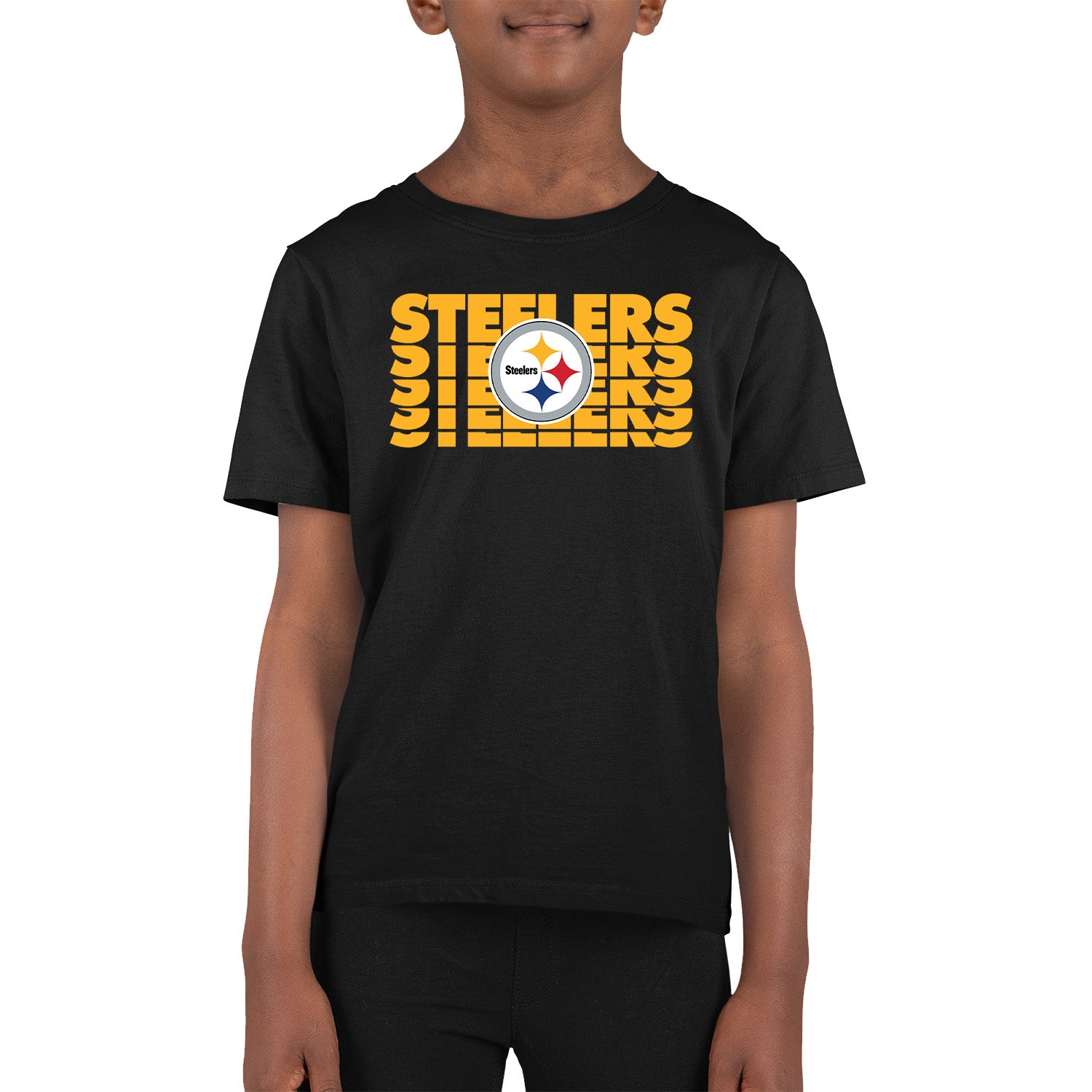 Pittsburgh Steelers NFL Youth Repeating Logo Football T-Shirt Unisex Tag Free Comfortable - Black