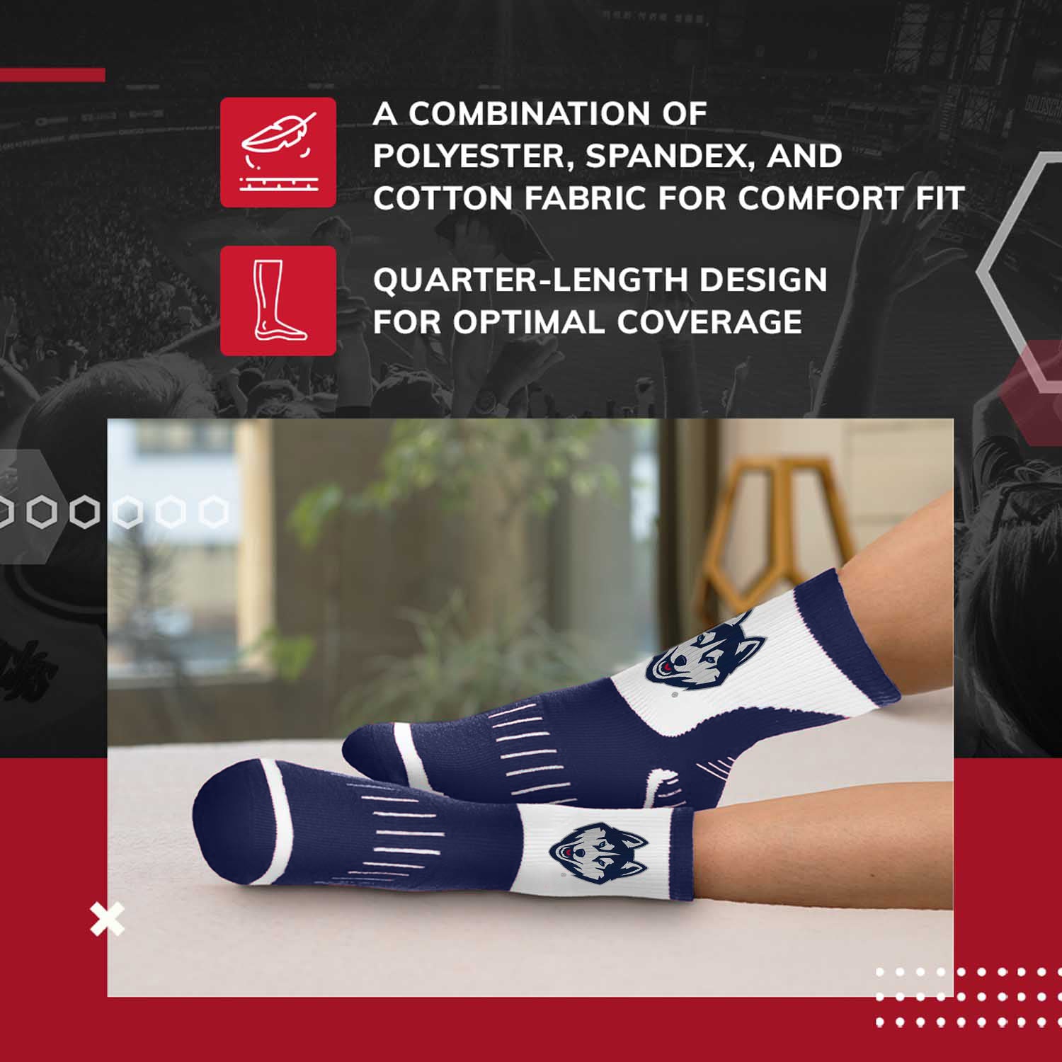 UCONN Huskies Adult Surge Quarter Length Crew Socks for Men and Women - Navy