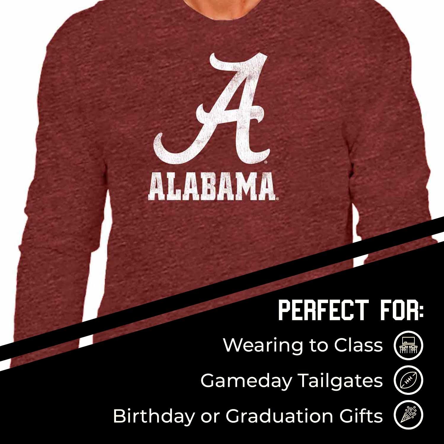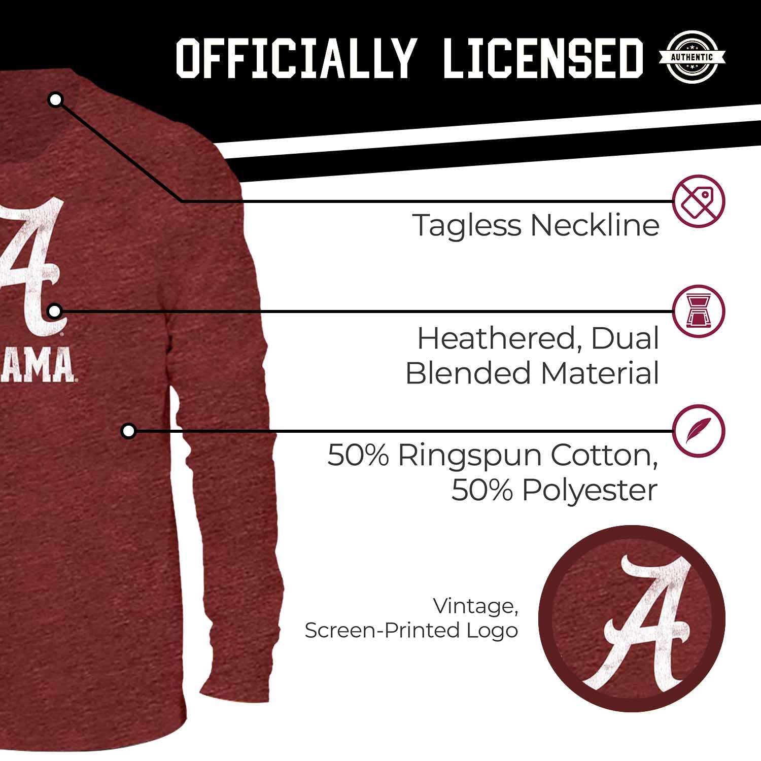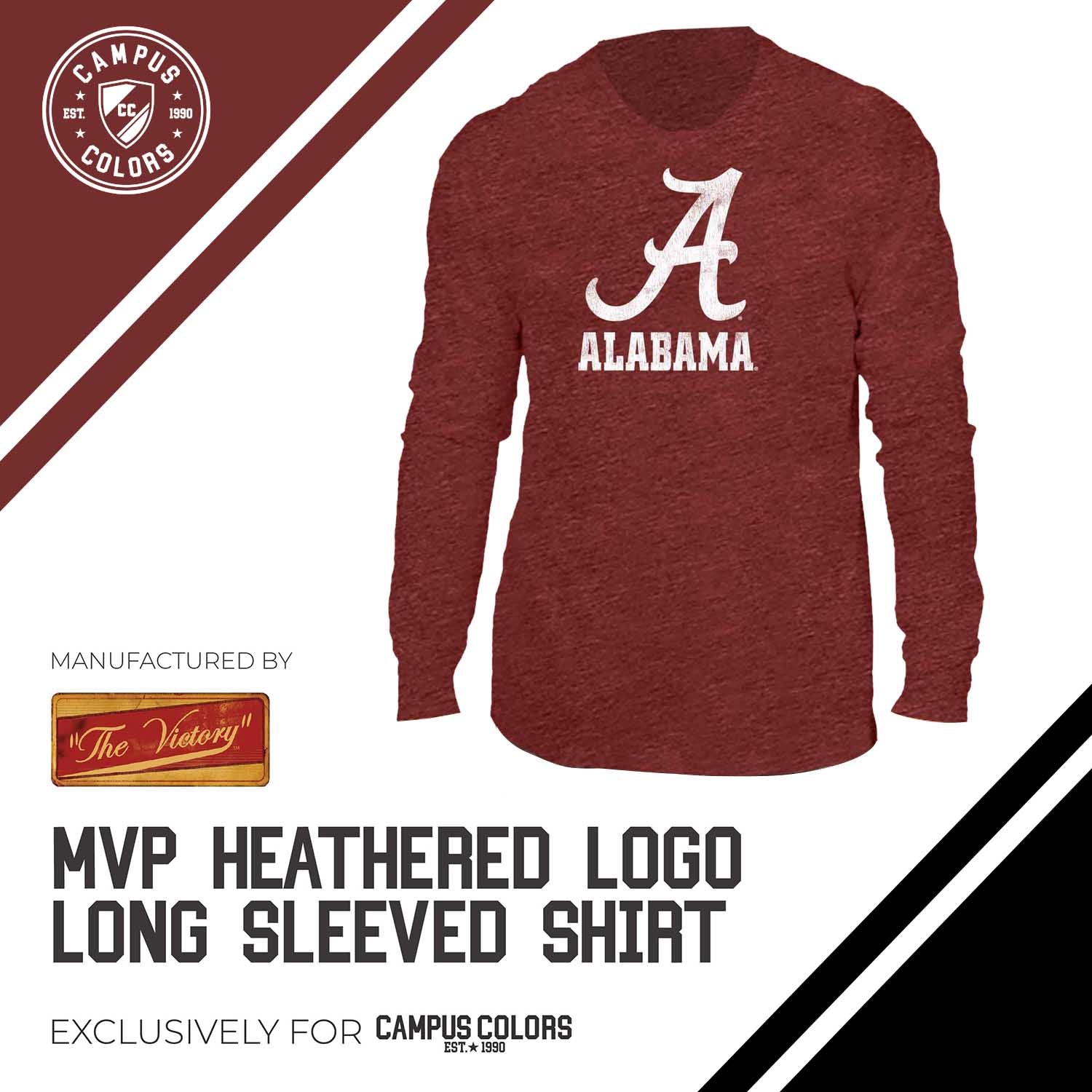 NCAA Unisex Adult MVP Heathered Logo Long Sleeve Breathable Gameday Cotton ShirtStaying dry helps keep yourself comfortable all day long. This long sleeve shirt helps to push moisture from the skin into the surface, allowing it to evaporate quickly and keeping it away from your garments. More than great apparel and accessories, it’s a way of life wearing this shirt will make you appear more attractive. Our well-crafted designs and high-quality material combine to create a vibrant yet comfortably fitted tee. You can shop this Shirt with confidence knowing our products are 100% officially licensed.�Support your team through another successful season while sporting this must-have shirt! Your dedication will be on full display when you wear the NCAA Unisex Adult MVP Heathered Logo Long Sleeve Breathable Gameday Cotton Shirt! This heathered long sleeve features official team colors as well as your favorite team name and logo! The screen-printed graphics are displayed in a vintage style that gives you the look of a loyal and seasoned fan.�Specification and Feature:� Breathable� screen printed graphics� Protective Long sleeves� This shirt is designed and printed in the USA� Great for tailgates, birthdays, Christmas, big games� Material: It is made from 50% ringspun cotton and 50% polyester� The logos and colors are officially licensed by NCAA and are of the highest quality.Made from a dual blend of ringspun cotton and polyester, this super-soft shirt will have you staying comfortable all day long! Wear it at the next tailgate or big game, or even while you watch your team win from home! Perfect for yourself or that next birthday, Christmas, or graduation gift you need to find! Never let your Crimson Tide fandom be questioned again, get this long sleeve today!