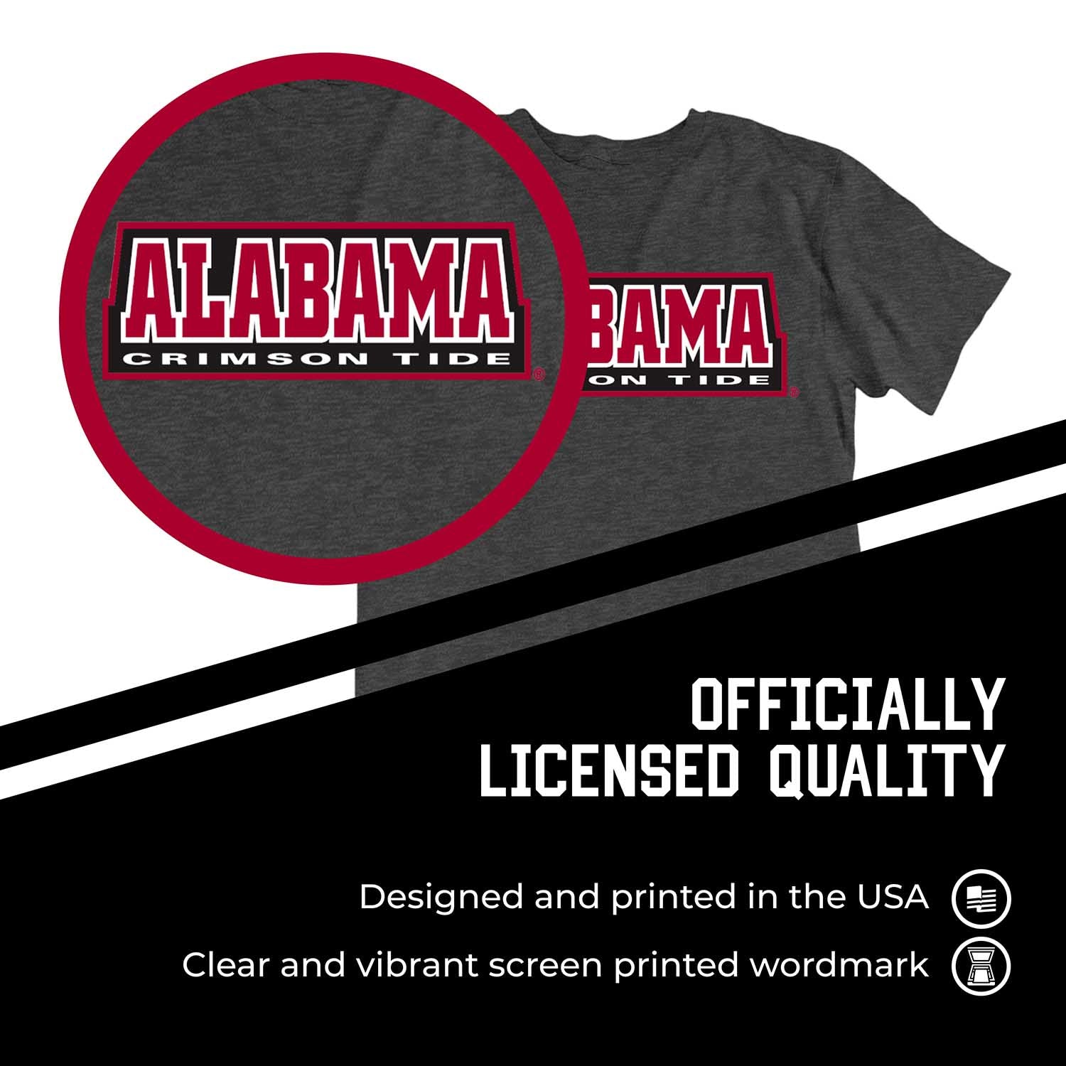 Alabama Crimson Tide Campus Colors NCAA Adult Cotton Blend Charcoal Tagless T-Shirt - Charcoal