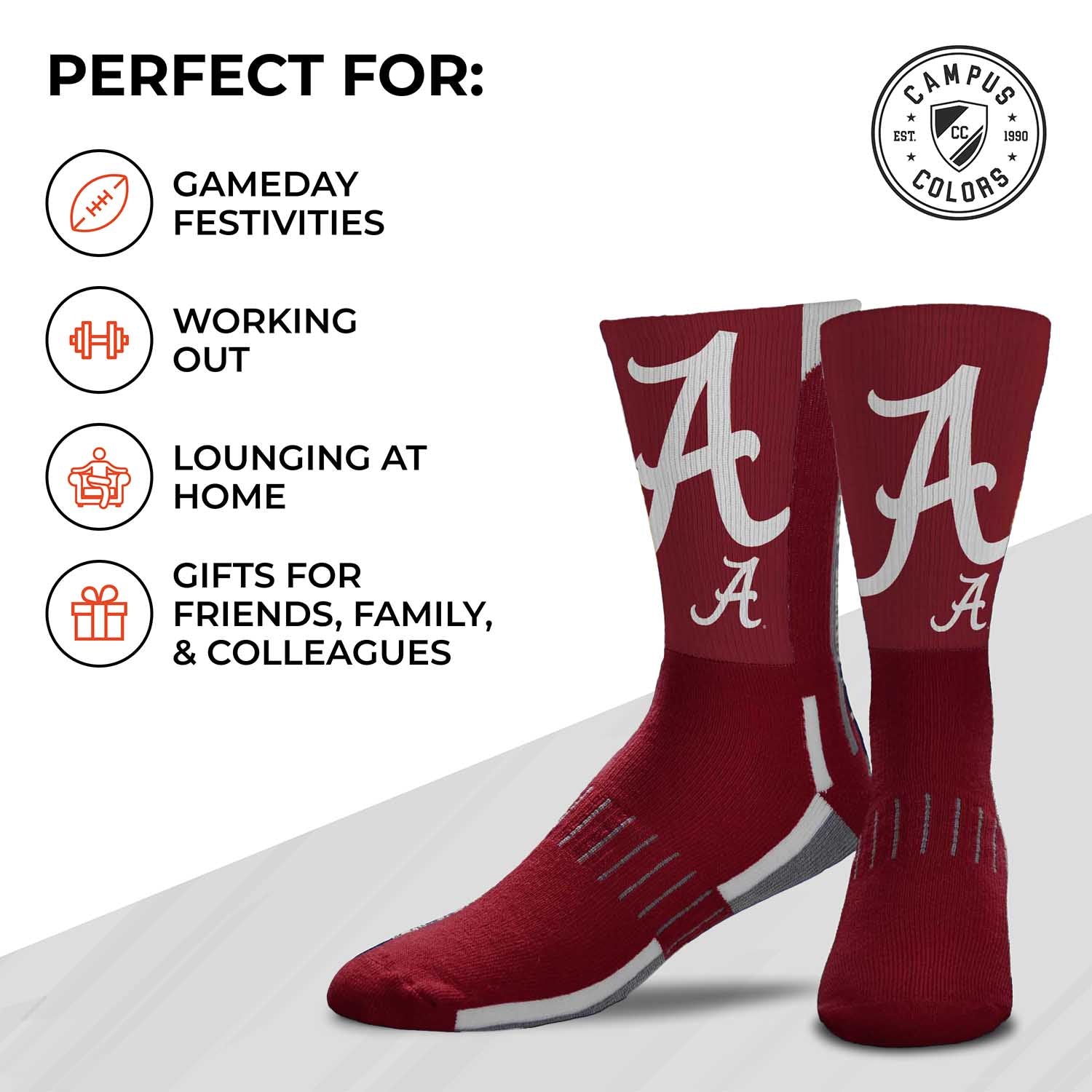 Alabama Crimson Tide NCAA Adult State and University Crew Socks - Cardinal