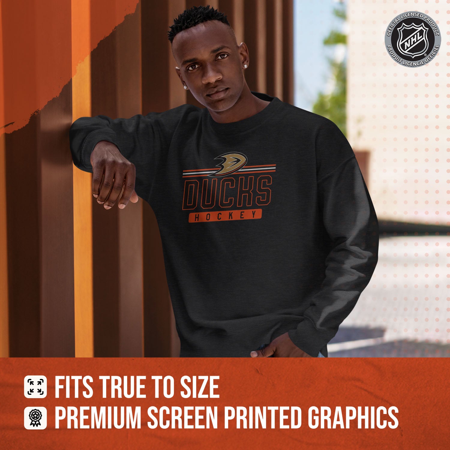 Score with Team Fan Apparel, the ultimate destination for officially licensed NHL apparel for men and women. Designed and printed in the USA, we use only the highest quality screen printing techniques to bring you the most comfortable, durable, and stylish clothing possible. Go ahead and show your team pride at the big game or any time! This premium crewneck fits both male and female adults and comes in small, medium, large, XL, and XXL. So needless to say, it fits Anaheim Ducks fans of all types! Maybe you aren't a Ducks fan but you know someone who is? Don't worry! This high-quality crewneck is soft, lightweight, breathable, and a GREAT gift for any birthday, anniversary, Father's Day, Mother's day, you name it! So, if you want to stand out as the #1 fan at the next big game or watch party, you're going to want to be wearing one of these hockey t-shirts.