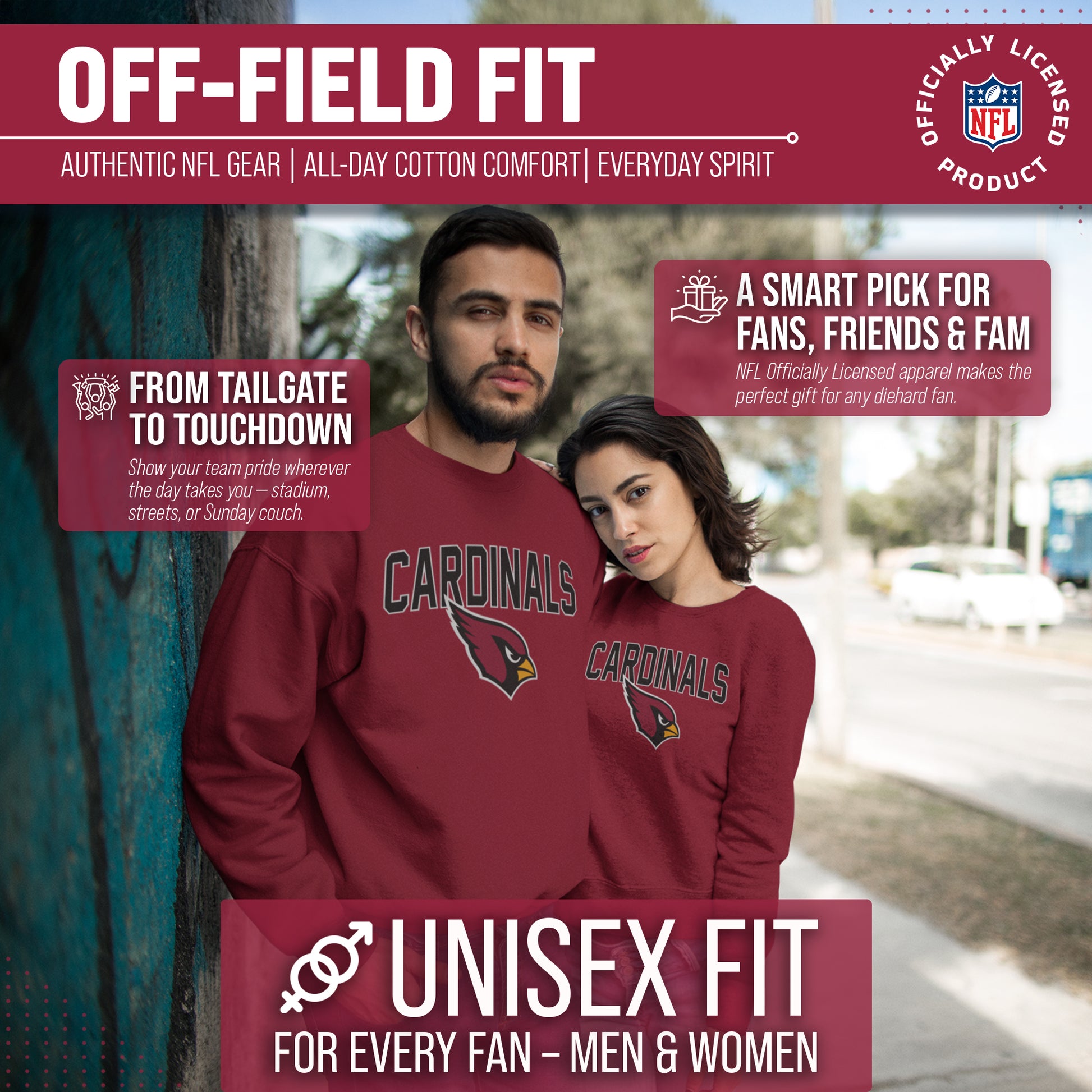 If you are looking for the best football gift for a Cardinals fan, the Home Team Crew is perfect for you! This Cardinals sweatshirt is great for showing team pride all year long. Our Arizona Cardinals  sweatshirts are the perfect fan apparel for Arizona Cardinals tailgate outfits and games. This Arizona Cardinals pullover is ideal for cold weather. The football pullover sweatshirt is made from a cotton-poly blend fleece material with a cotton face. Our Cardinals crewneck sweatshirts also make the best Cardinals gifts for men and women. Give this Arizona Cardinals crew as an oversized sweatshirt gift for your boyfriend or girlfriend. If you are looking for the best Cardinals gifts for women, Cardinals shirts, Cardinals sweatshirts, or Cardinals winter clothes, look no further than the Home Team Crew. Get yours today!