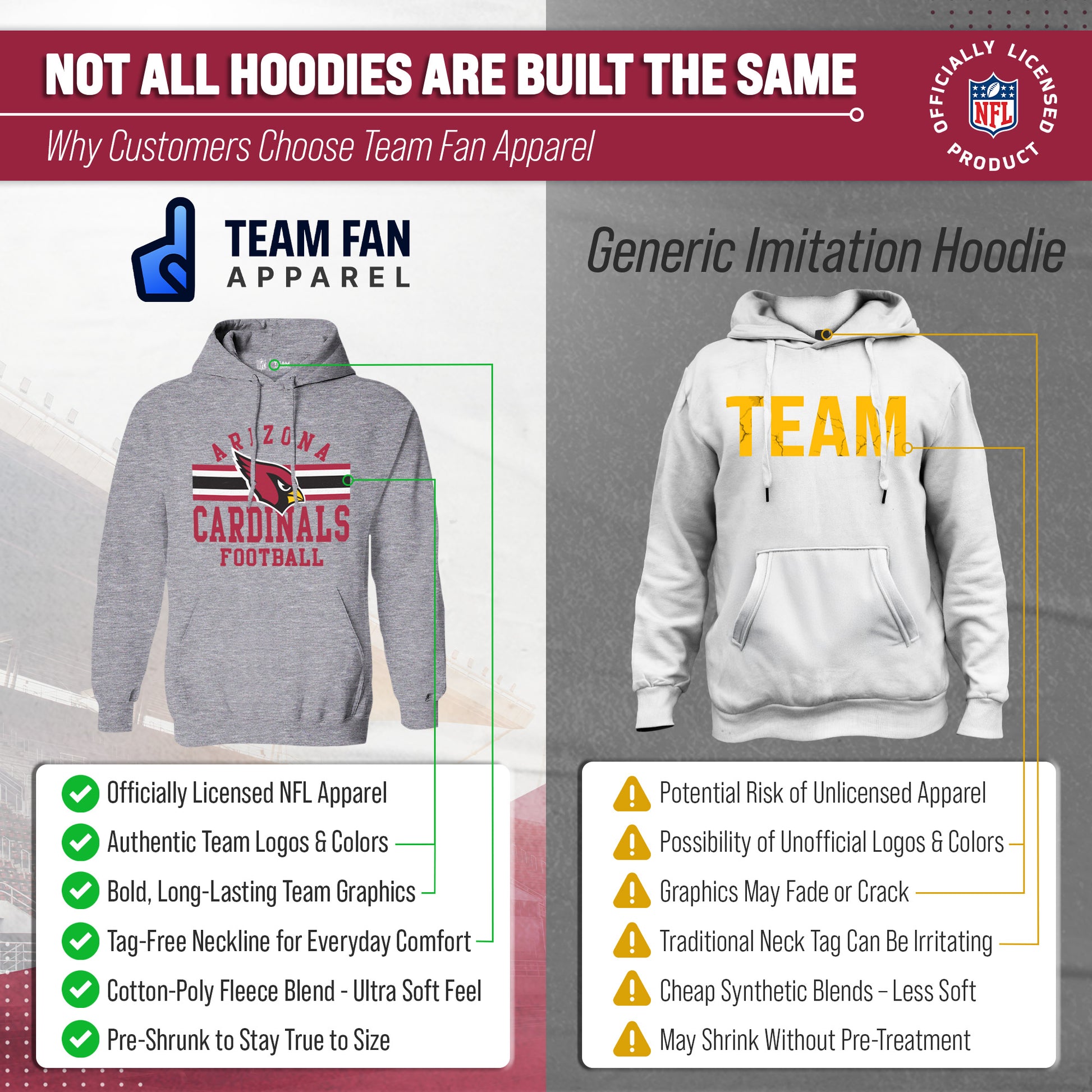 This Arizona Cardinals hoodie is made from cotton-poly fleece. Our soft Cardinals pullover hoodie is beyond comfortable and thick enough to keep you warm on game day. This hoodie is soft enough that you'll want to wear it every day. The tagless pro football sweatshirt hoodie ensures comfortability and avoids neck irritation. The pro football hoodie features official graphics. Our Cardinals sweatshirts are designed and printed in the USA. These high-quality Cardinals hoodies are made with stitch density for a smoother printing surface. This Arizona hoodie gives the sports look only a true fan can accomplish. This is essential apparel for any football or sports fan. This soft hoodie is perfect for watching the game, working out, or for a fathers day gift. It's perfect for Arizona football games.