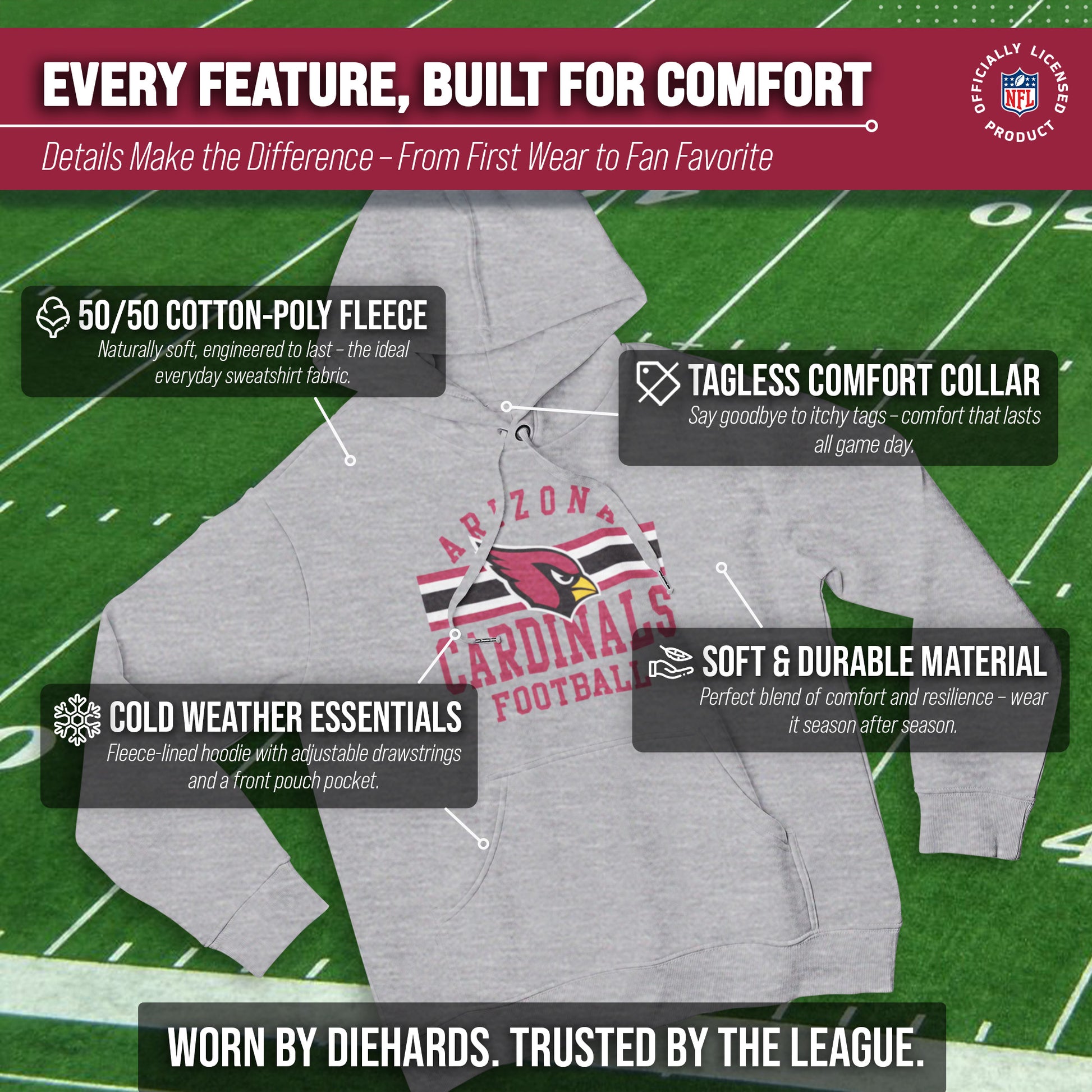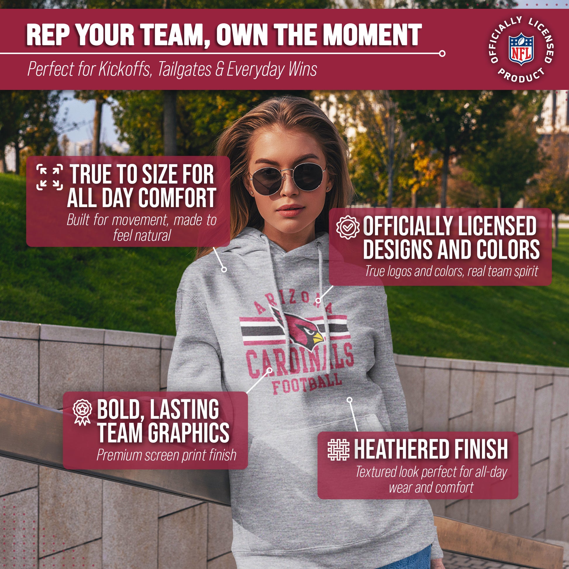 Arizona Cardinals NFL Team Stripe Hooded Sweatshirt- Soft Pullover Sports Hoodie For Men & Women - Sport Gray