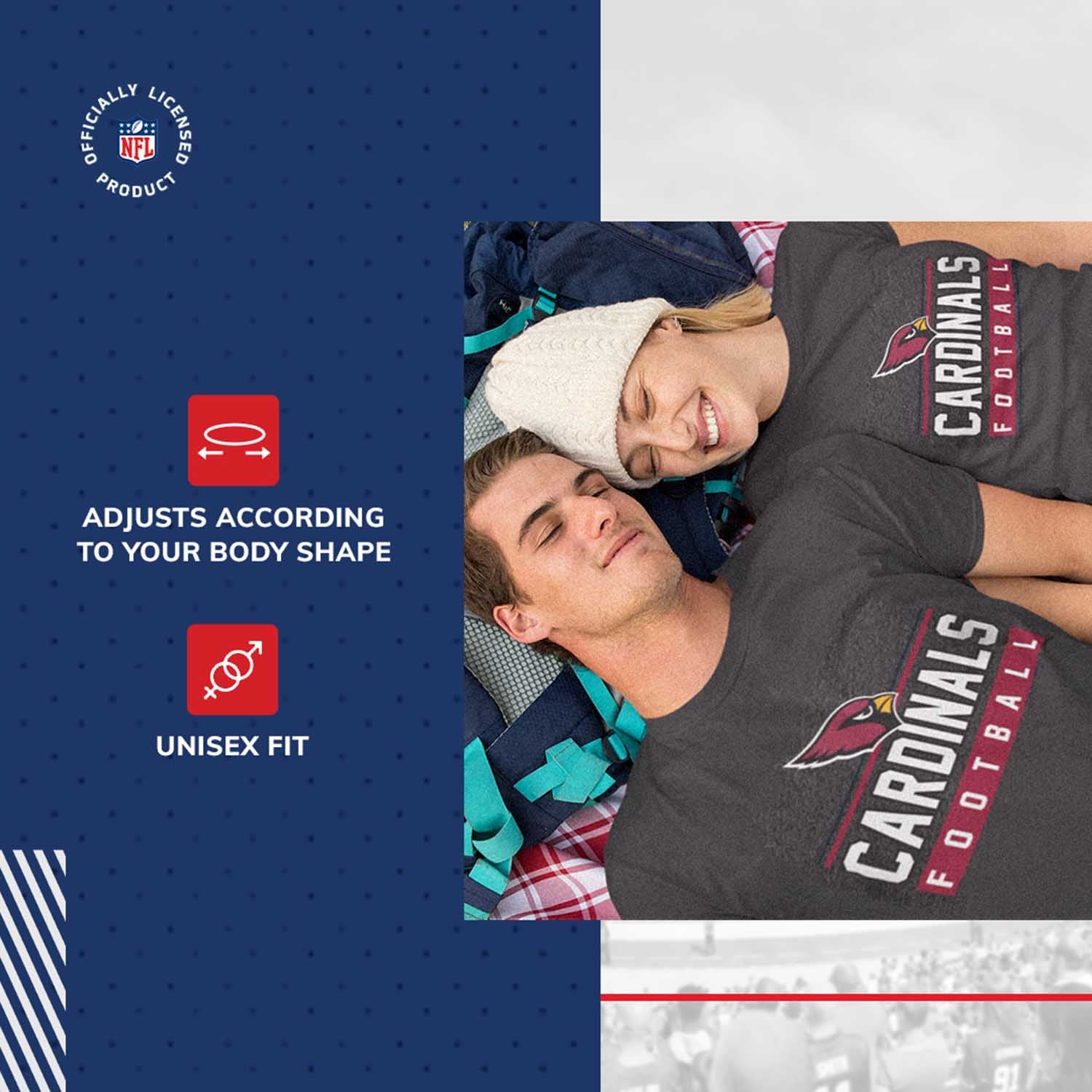 The True Fan womens and mens Arizona Cardinals t shirts are the ultimate light, soft, and comfortable tee. These Arizona Cardinals tshirts are the most versatile football apparel. Let us help you celebrate and showcase team pride with our durable and lightweight Arizona Cardinals t shirts for men and women. This tee features a quality, screen printed wordmark that will last wear after wear. The official wordmark design gives you the look of a loyal and seasoned sports fan and the unique heather, dual-blended material gives a trendy, distressed look without that heavy printed feel. Made of 50% ringspun cotton and 50% polyester, the dual blend material is extremely soft, smooth and comfortable. These Arizona Cardinals shirts for men and women comes without a tag, so you'll never feel annoyed or irritated by those pesky neck tags again! Quality [team short] t shirt makes the best birthday, Christmas, or graduation gifts for [team short] fans.