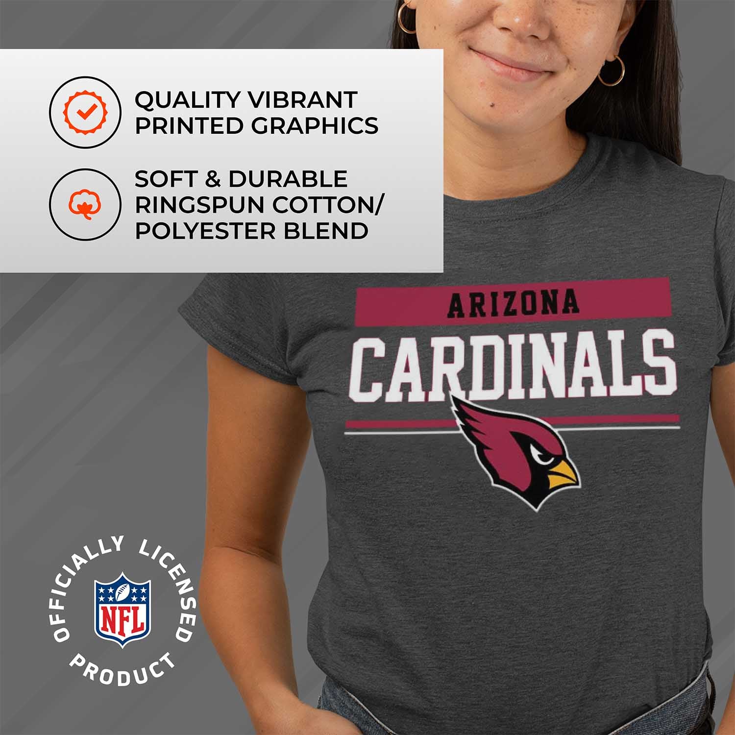 Our officially licensed womens Arizona shirt is super comfortable, runs true to size, and is great for showing off your Arizona Cardinals pride. The high-quality thermal printed logo will look fresh after years of wear, making it a great alternative to your womens Arizona Cardinals jersey. Our charcoal t-shirt has a relaxed yet contoured fit for a casual yet feminine look. The short sleeve shirt is perfect with shorts for tailgates in warmer months, or with jeans or leggings and a sweater during colder months. Available in plus sizes up to 3XL, our Arizona shirts for women plus size or straight size will make anyone feel comfortable enough to show off their love for the Arizona Cardinals. If you're looking to give team t shirts for women as a gifts, our womens charcoal tshirt is the Cardinals shirt women will love. Officially licensed to ensure no counterfeit designs or colors, our Arizona Cardinals womens shirts are great for superfans. 100% ringspun and made from a blend of cotton and polyester, designed to keep you cool and comfortable all year long. The womens gameday football t shirt will definitely become one of your favorite tops.