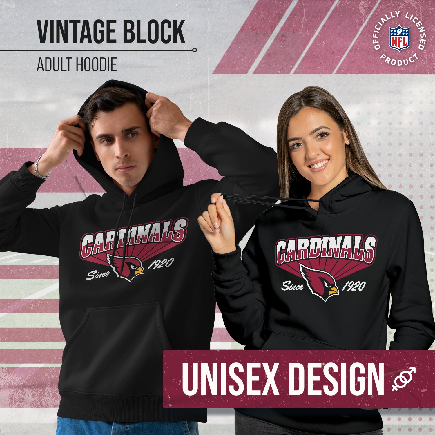 Arizona Cardinals NFL Adult Unisex Vintage Block Ultra Soft Fleece Hooded Sweatshirt - Black