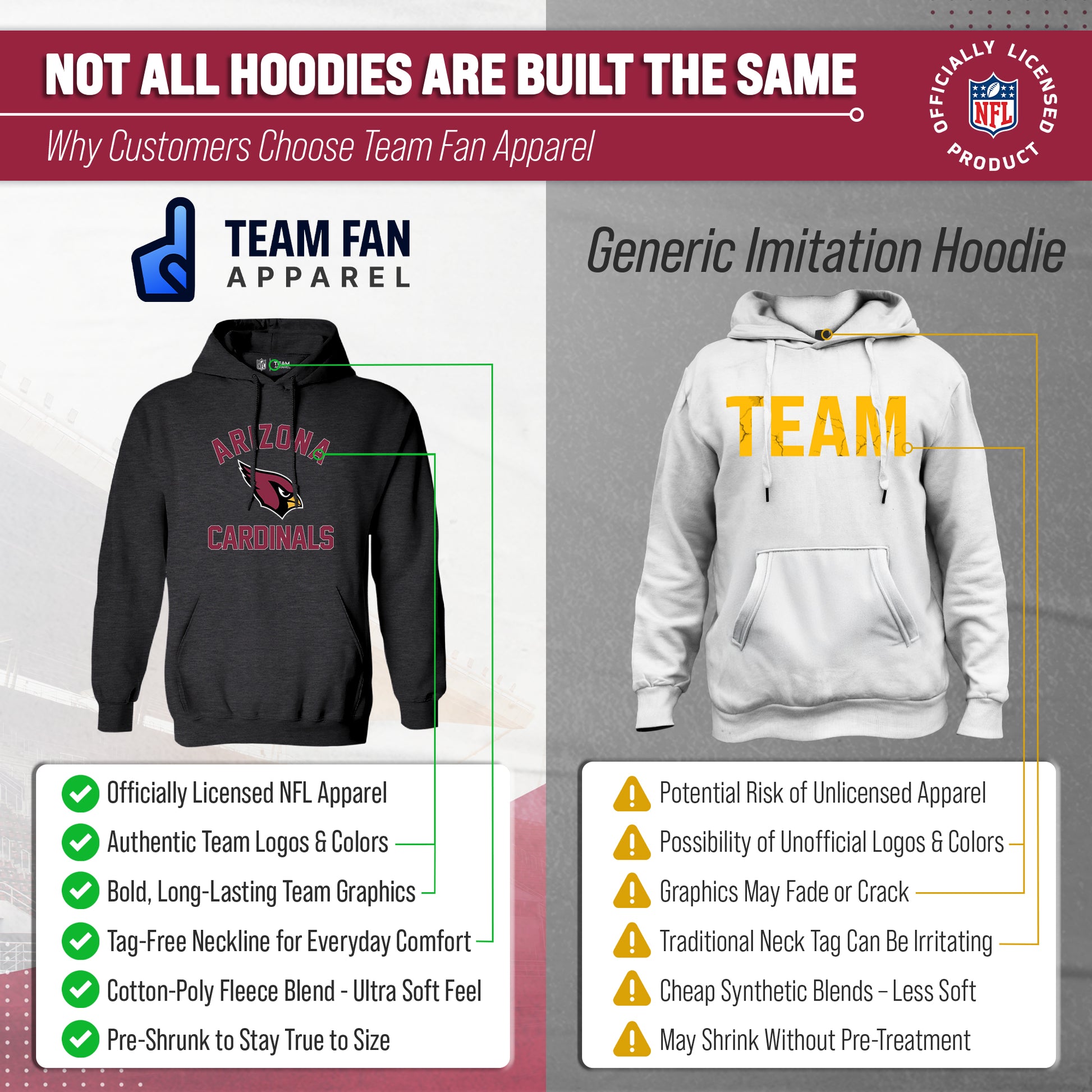 Our Adult Gameday Arizona Cardinals football pullover hoodie with a front pouch pocket is the ideal sweatshirt to wear on gameday. This Arizona hoodie is comfortable and great for showing team pride all year long. This is an essential piece of womens and mens football apparel for pro football fans. Our Arizona Cardinals team colored hoodie sweatshirts are the perfect fan apparel for tailgates and sports games. This hooded sweatshirt pullover with a pocket and drawstrings is ideal for warm or cold weather games. The football pullover hoodie is made from a cotton poly blend fleece material with cotton face. These pro football sweatshirts have high quality features. Our football pullover hoodies feature 1x1 ribbing at cuffs and waistband. This Cardinals hoodie sweatshirt has a twill neck tape and jersey lined hood. The metal eyelets on the sweatshirt drawstrings add a sophisticated look to these pro football team hoodies for men and women. This tagless sweatshirt ensures the most comfortable fit for men and women. The standard fit makes our football team hoodies for men and women the perfect sweatshirt for Arizona fans. The thermal printed graphics are high definition, true team color, and resist fading. Our hoodies also make the best Cardinals gifts for men and women. Arizona Cardinals apparel is the perfect birthday gift for any professional sports fan. Our football team hoodies for men and women are great mens football apparel for tailgating, stadium fun, or watching the game at home.