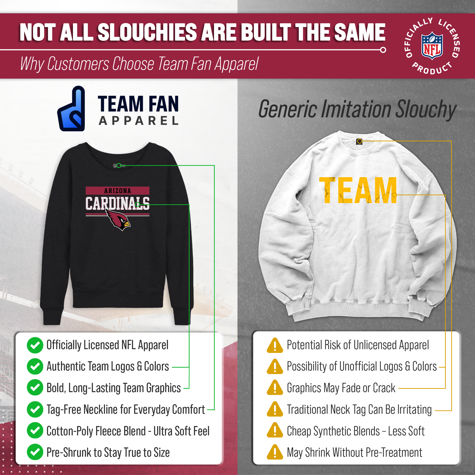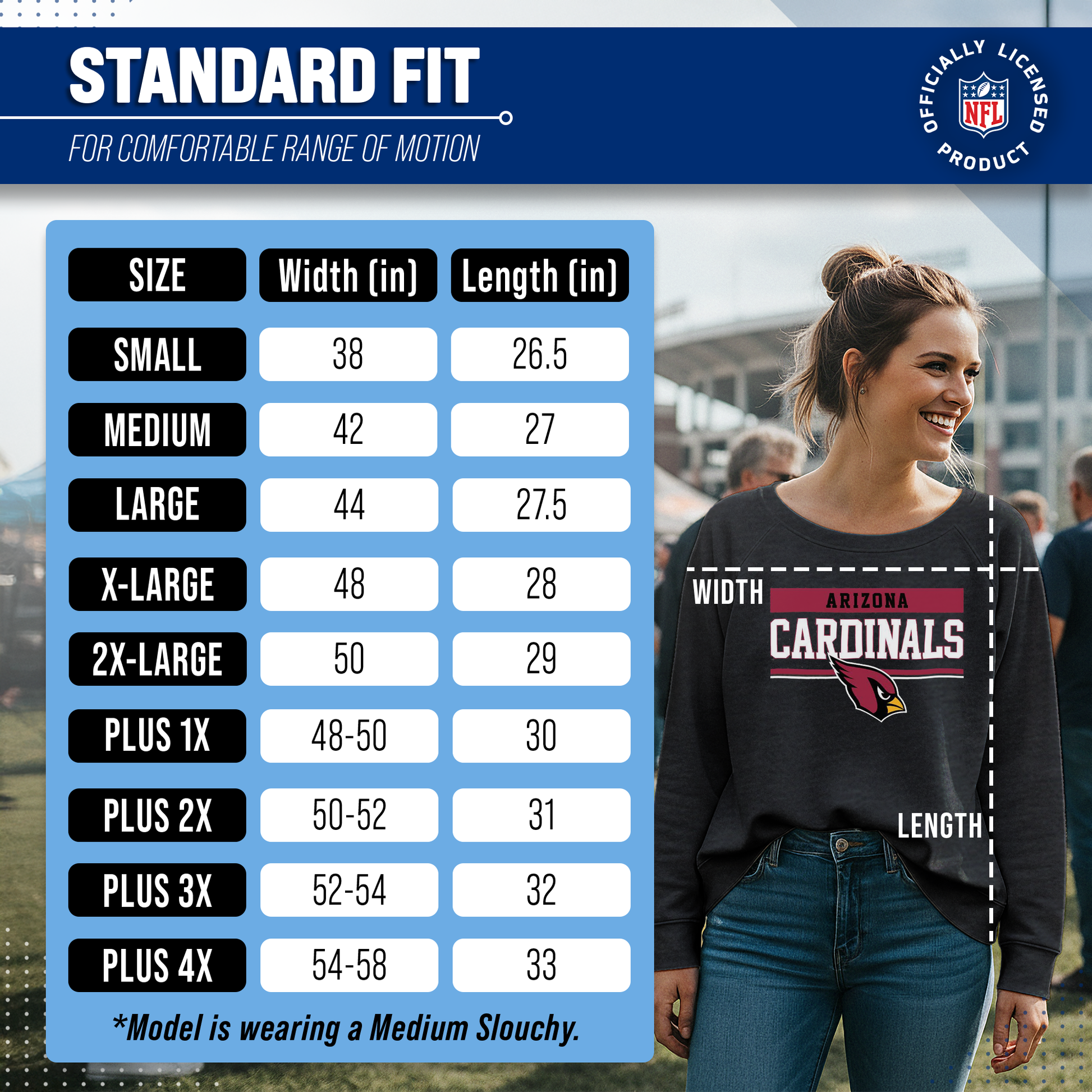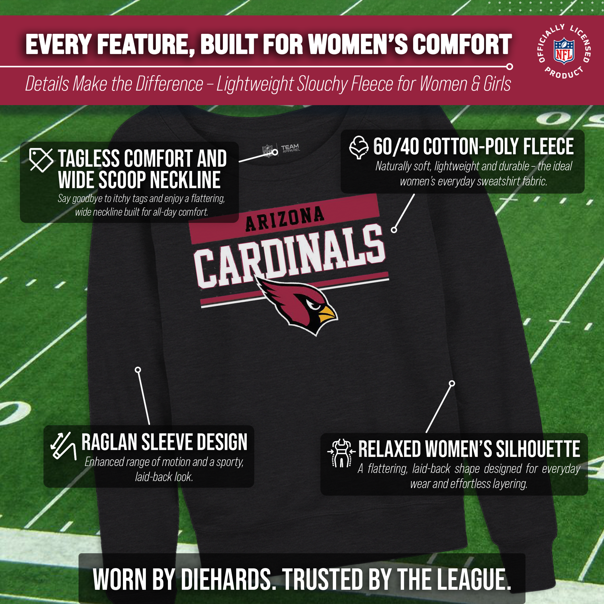 Our officially licensed womens Arizona Cardinals long sleeve charcoal crew neck pullover is super comfortable, has an oversized fit, and is great for showing off your Arizona pride. The high-quality thermal printed logo and wordmark will look fresh after years of wear, making it a great alternative to wearing a Arizona Cardinals womens jersey. Our womens long sleeve slouchy crewneck has a relaxed fit for a casual, comfortable look. The long sleeve Arizona crew will look great with shorts at tailgates in warmer months, or with jeans or leggings when it gets cooler. Layer it with a hoodie or even a Arizona football jersey when the weather gets cold. Available in plus sizes up to 3XL, this is a Arizona Cardinals pullover that women who are plus size or straight size will feel comfortable in. If you're looking to give the gift of ladies Arizona apparel, our long sleeved Arizona Cardinals Slouchy Crew is the perfect gift. Officially licensed to ensure no counterfeit designs or colors, these Arizona crews for women are perfect for super fans. Made from a cotton poly blend to keep you comfortable, the womens raglan long sleeve Gameday Slouchy Crew will definitely become one of your favorite pieces of Arizona Cardinals apparel.