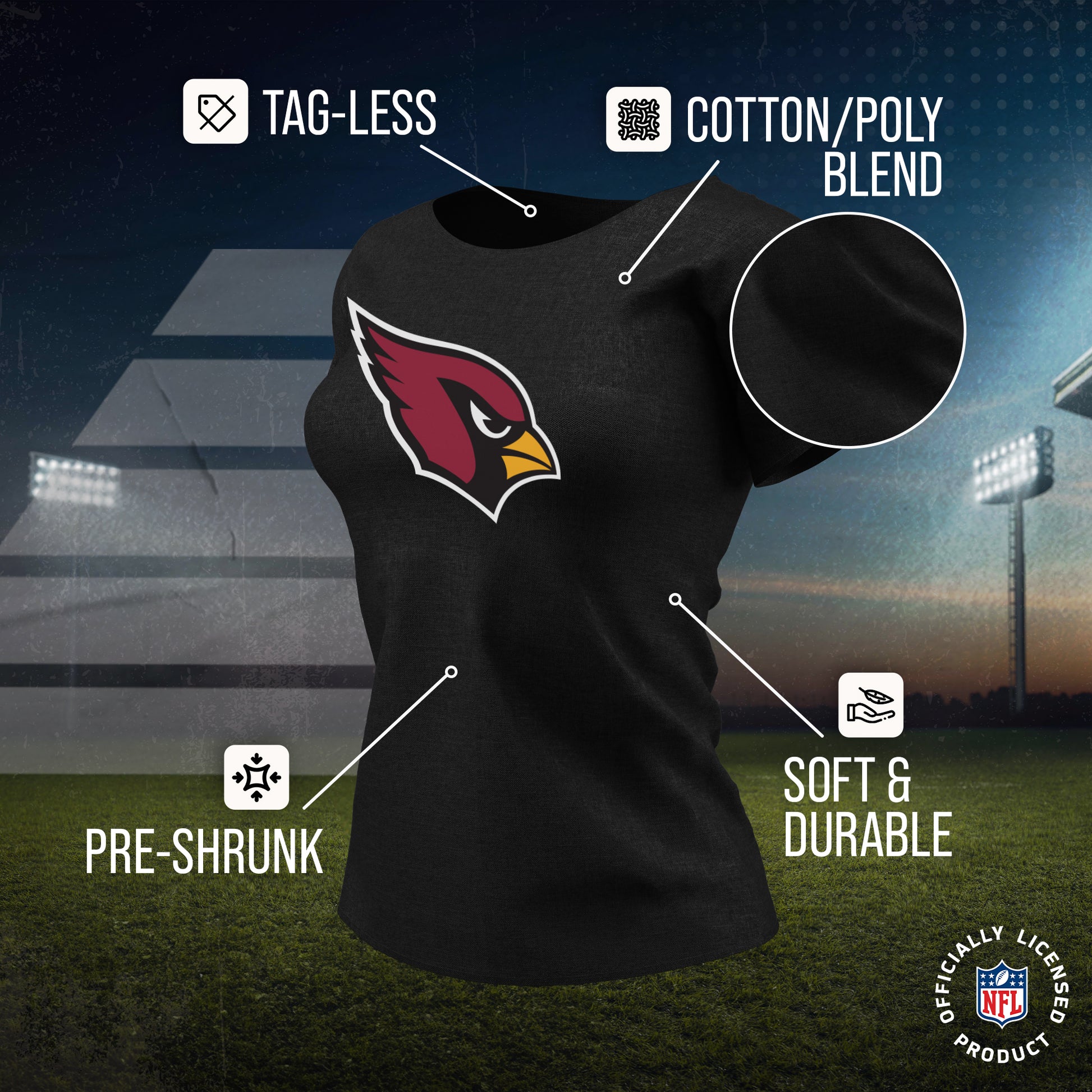 Our officially licensed womens Cardinals shirt is super comfortable, runs true to size, and is great for showing off your Arizona Cardinals pride. The high-quality printed logo will look fresh wash after wash, making it a great alternative to your womens Arizona Cardinals jersey. Our logo t-shirt has a relaxed yet contoured fit for a casual yet feminine look. The short sleeve shirt is perfect for tailgates in warmer months, or with jeans or leggings and a sweater during colder months. If you're looking to give team t shirts for women as a gift, our womens heather logo tshirt is the Cardinals shirt women will love. Officially licensed to ensure no counterfeit designs or colors, our Arizona Cardinals womens shirts are great for superfans. The womens gameday football t shirt will definitely become one of your favorite tops.