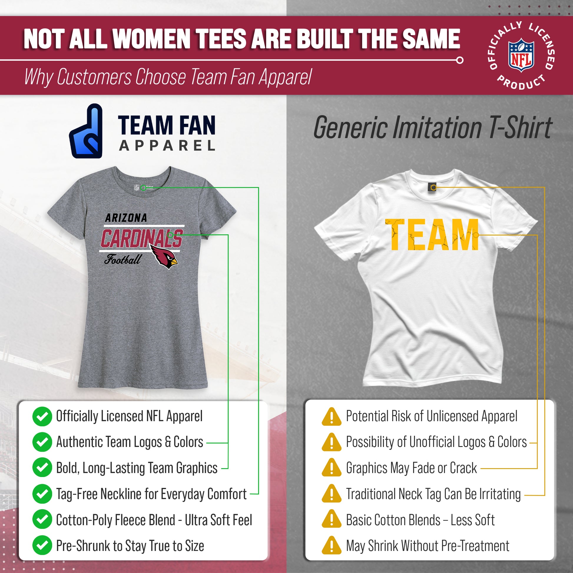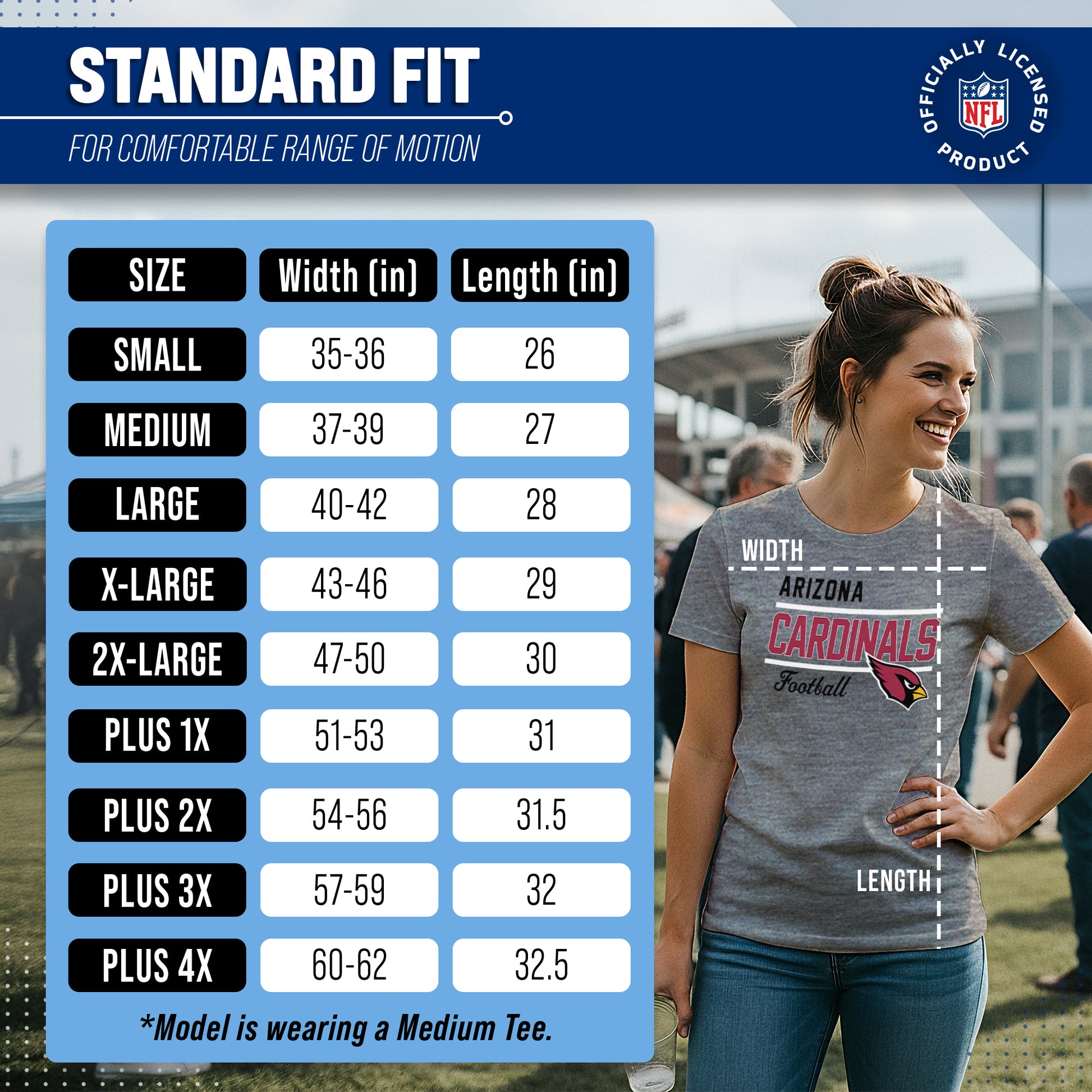 Our officially licensed Cardinals shirt is super comfortable, runs true to size, and is great for showing off your Arizona Cardinals pride. The high-quality thermal printed logo will look fresh after years of wear, making it a great alternative to your womens Arizona Cardinals jersey. Our Gameday t-shirt has a relaxed yet contoured fit for a casual yet feminine look. The short sleeve shirt is perfect with shorts for tailgates in warmer months, or with jeans or leggings and a sweater during colder months. Available in plus sizes, our Cardinals shirts for women plus size or straight size will make anyone feel comfortable enough to show off their love for the Arizona Cardinals. If you're looking to give team t shirts for women as a gifts, our Gameday tshirt is the Arizona shirt women will love. Officially licensed to ensure no counterfeit designs or colors, our Arizona Cardinals womens shirts are great for superfans. 100% ringspun and made from a blend of cotton and polyester], designed to keep you cool and comfortable all year long. The womens gameday football t shirt will definitely become one of your favorite tops.