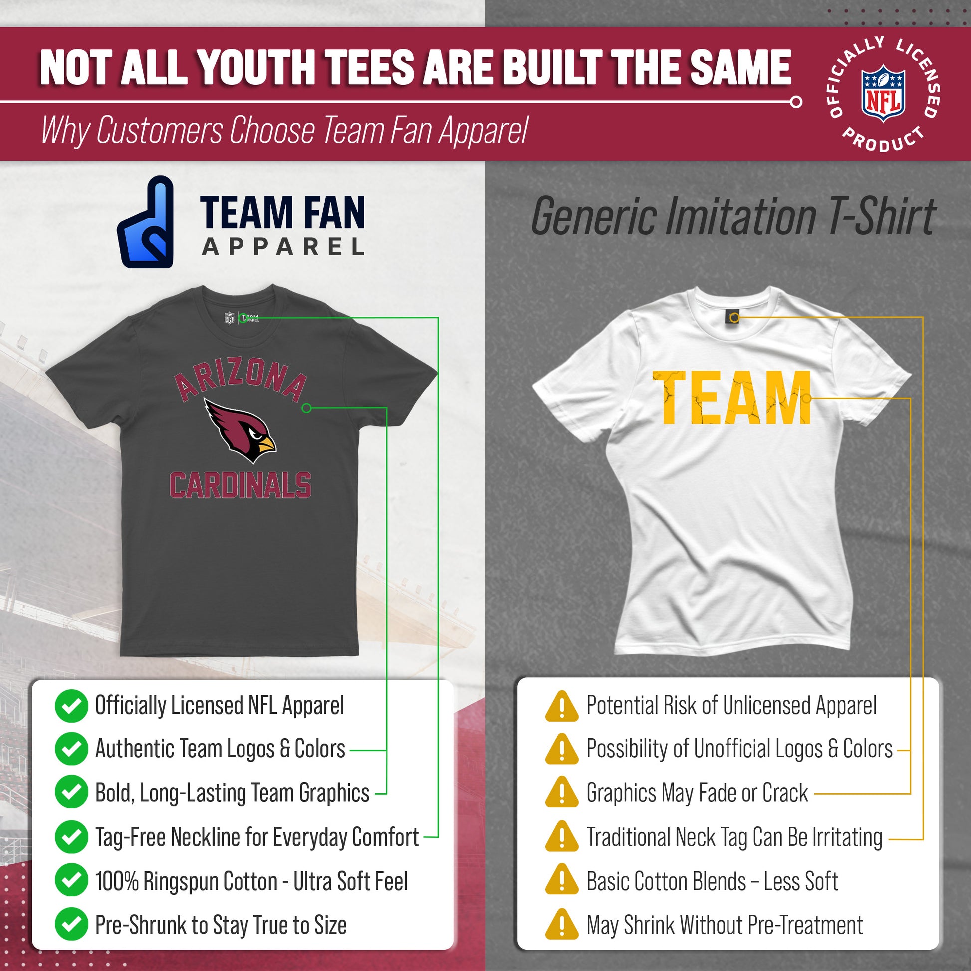 There's nothing more exciting than a much-anticipated gameday. Our Youth Gameday Arizona Cardinals football tshirt is the ideal shirt to wear on gameday whether you're at the game, or watching from the comfort of your own home. This Arizona tshirt is super comfortable, runs true to size, and is great for showing team pride all year long! The semi-fitted style makes this the perfect Cardinals youth shirt for both boys and girls. Our shirts really are the perfect fan apparel for school and sports games. The youth gameday shirt is lightweight and ideal for warmer weather or as an extra layer during colder months. Our Cardinals shirts for boys and girls are essential apparel for young football fans. Our tagless Arizona Cardinals youth shirt ensures the most comfortable fit. This semi-fitted tshirt is made from a 50/50 cotton/polyester blend; contrast shoulder to shoulder neck tape and 1x1 rib knit neck makes for comfortable fit around the neck and shoulders. This high quality shirt for kids features a double-needle sleeve and bottom hems. These are high quality Cardinals graphic shirts for girls and boys. The vivid graphics will stay crisp wear after wear, and year after year. The thermal printed graphics are high definition, official true team colors, and also resist fading. This Arizona tshirt is made with high stitch density for smoother printing surface. Our official shirts for boys and girls make the best gifts. This piece of Arizona Cardinals apparel is the perfect birthday or Christmas gift for any young football fan. This tee is absolutely perfect for school, stadium fun, or watching the game at home.