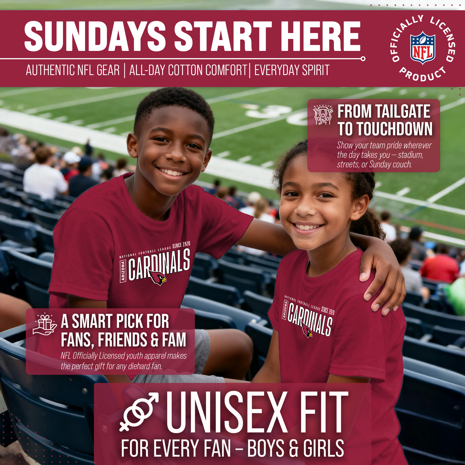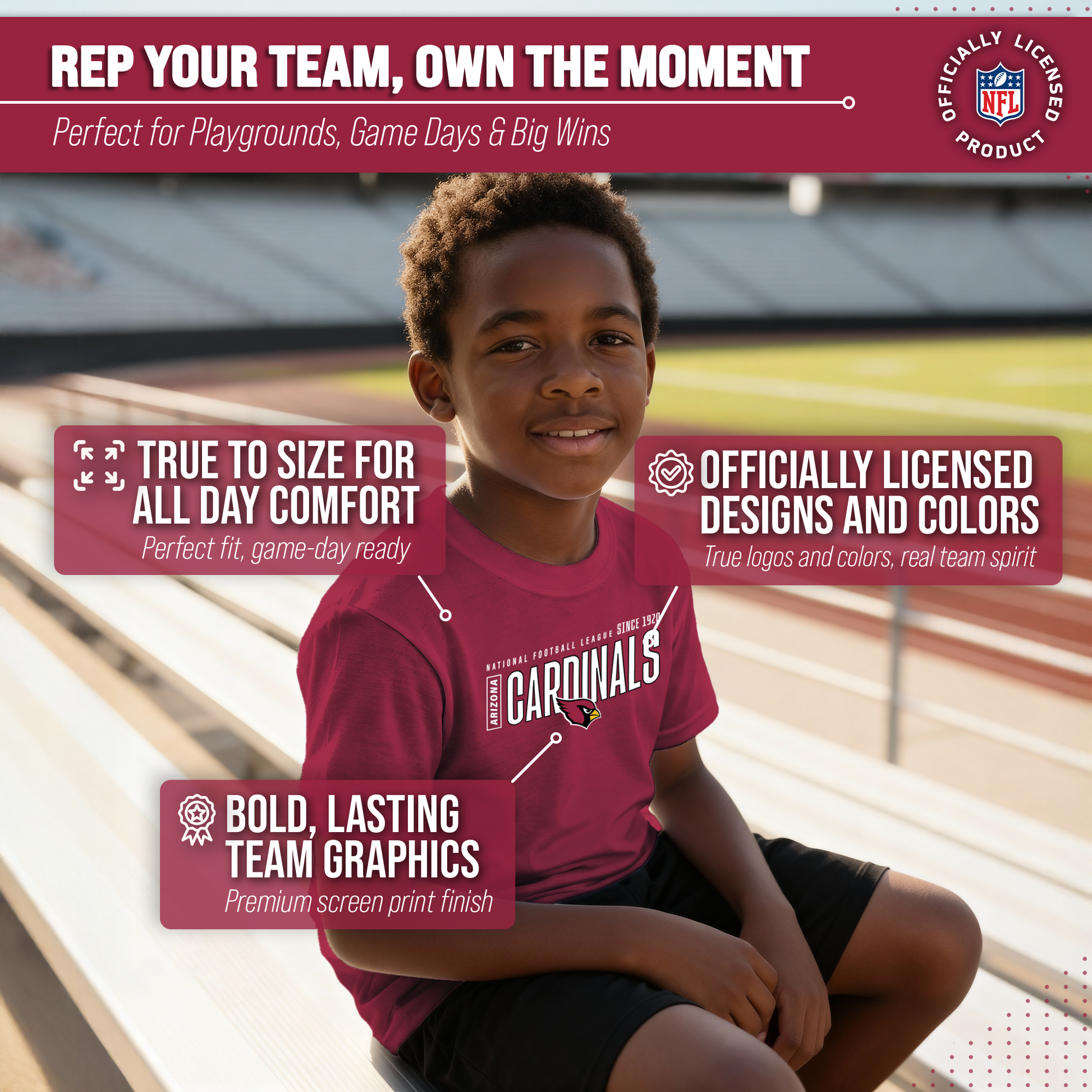 Arizona Cardinals NFL Youth Modern Endzone Football T-Shirt Unisex Tag Free Comfortable - Cardinal