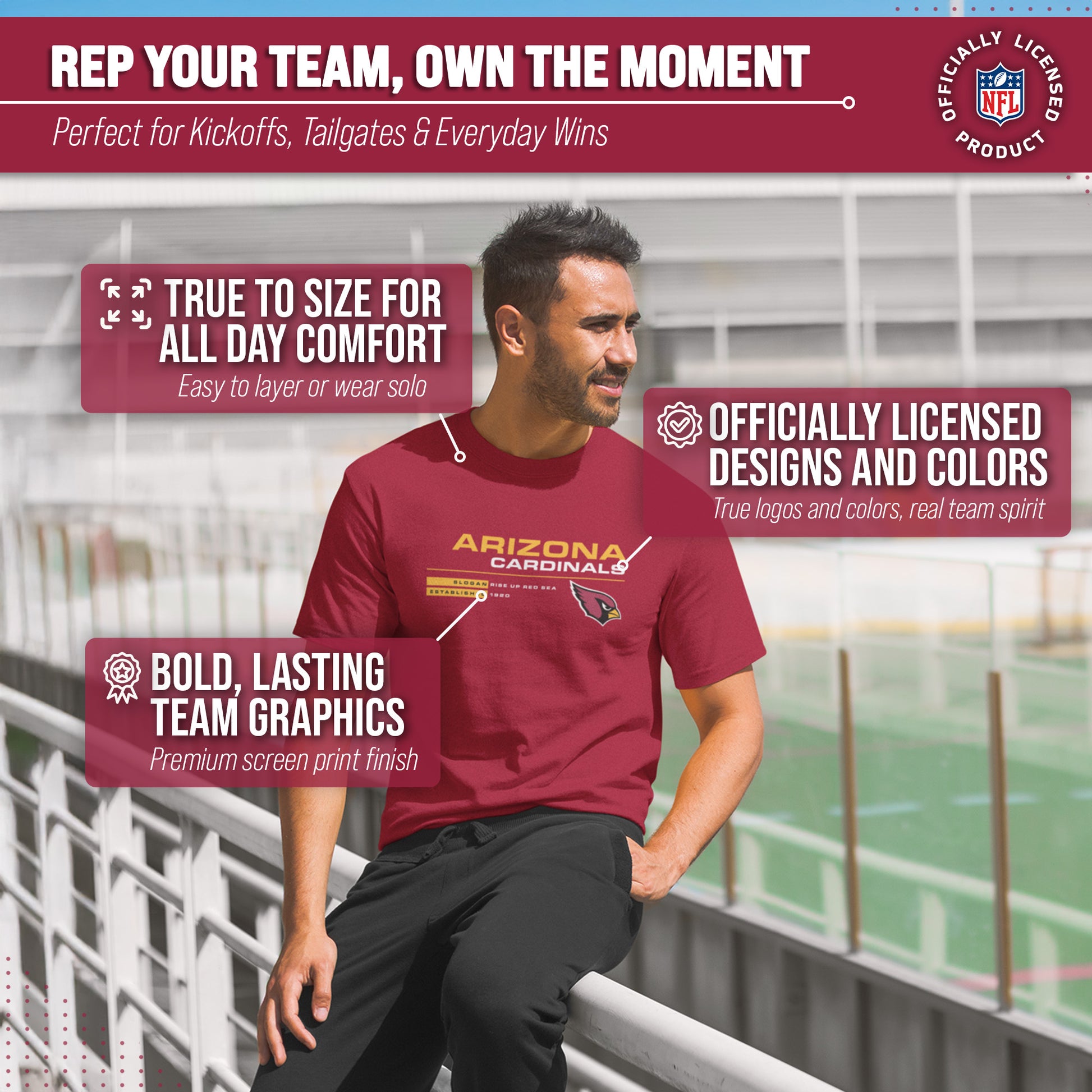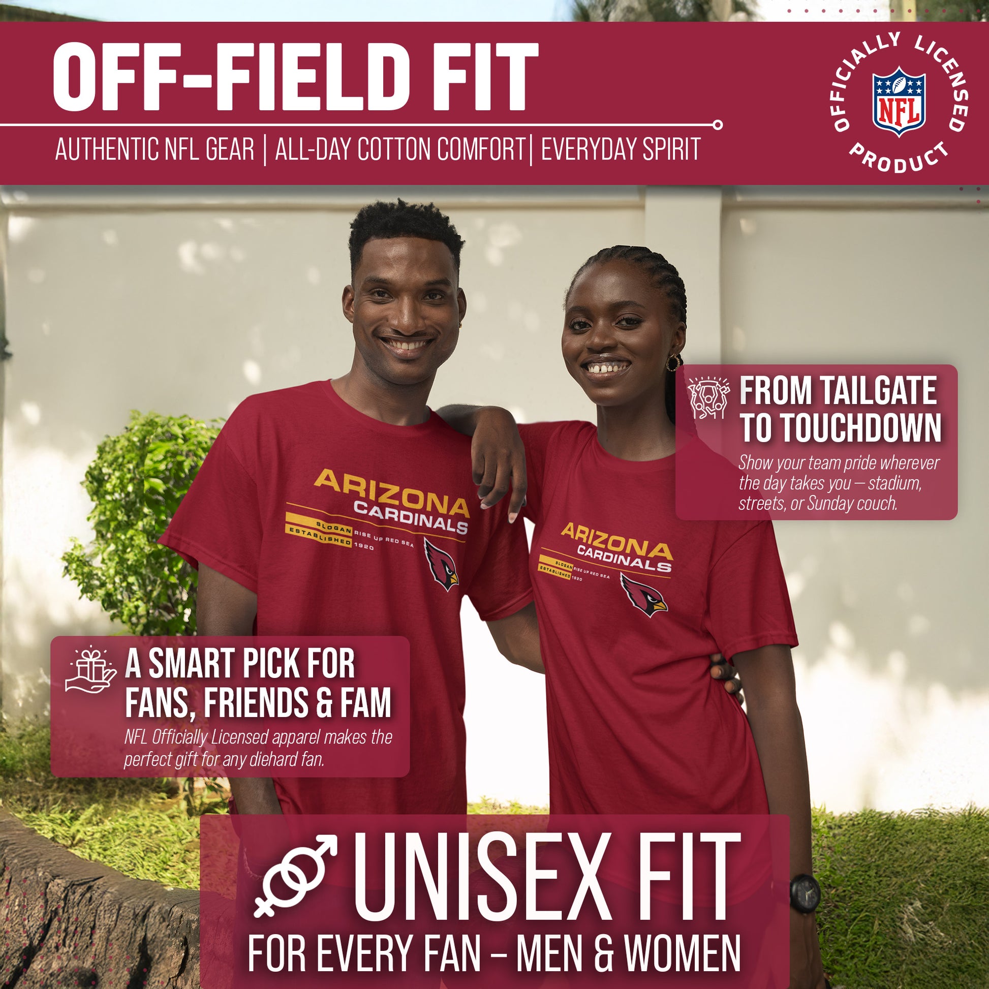 Score with Team Fan Apparel, the ultimate destination for officially licensed NFL apparel for men and women. We use only the highest-quality screen printing techniques to bring you the most comfortable, durable, and stylish clothing possible. Go ahead and show your team pride at the big game or any time! This premium t-shirt fits both male and female adults and comes in small, medium, large, XL, and XXL. So needless to say, it fits Arizona Cardinals fans of all types! Maybe you aren't a Cardinals fan but you know someone who is? Don't worry! This high-quality t-shirt is soft, lightweight, breathable, and a GREAT gift for any birthday, anniversary, Father's Day, Mother's day, you name it! So, if you want to stand out as the #1 fan at the next big game or watch party, you're going to want to be wearing one of these football t-shirts.