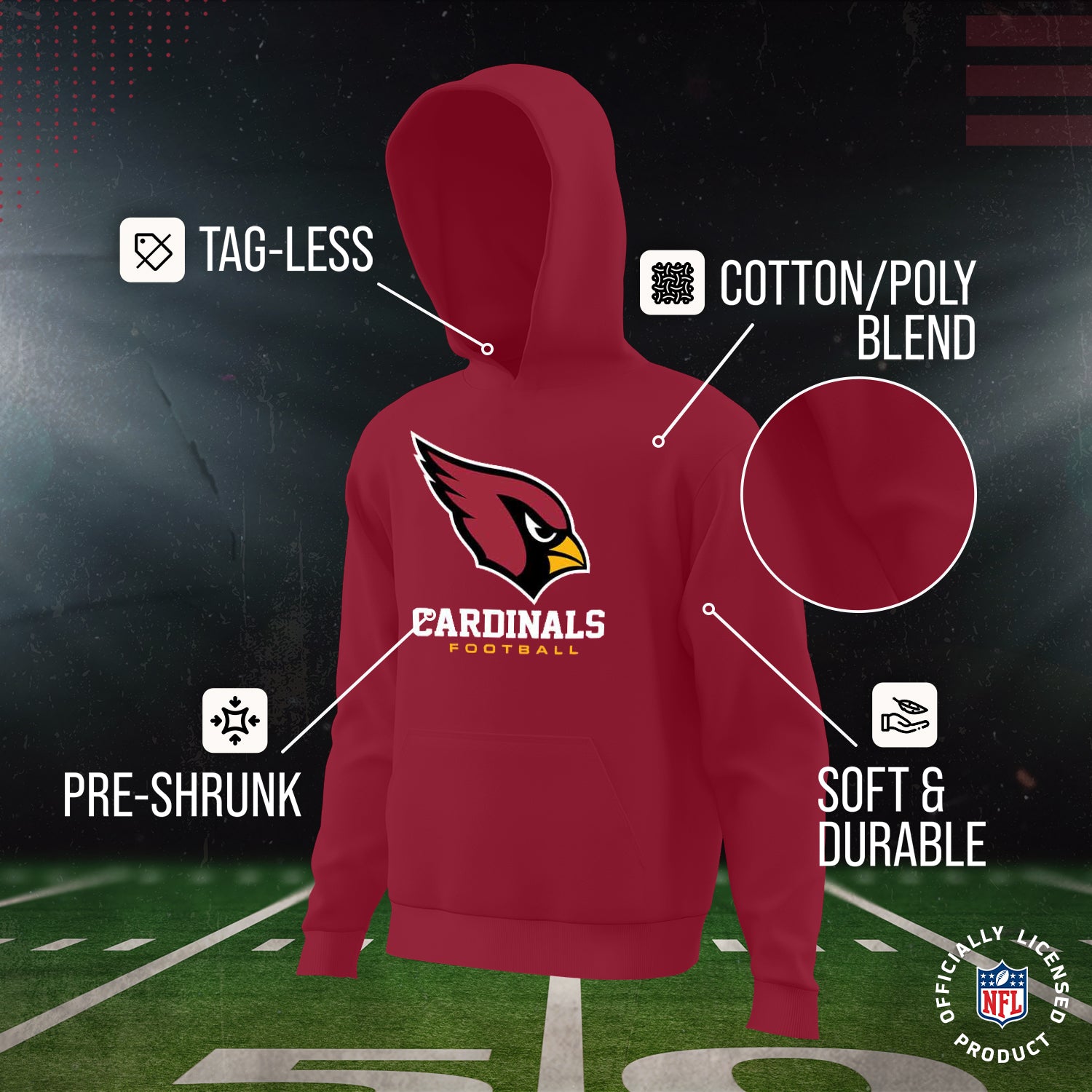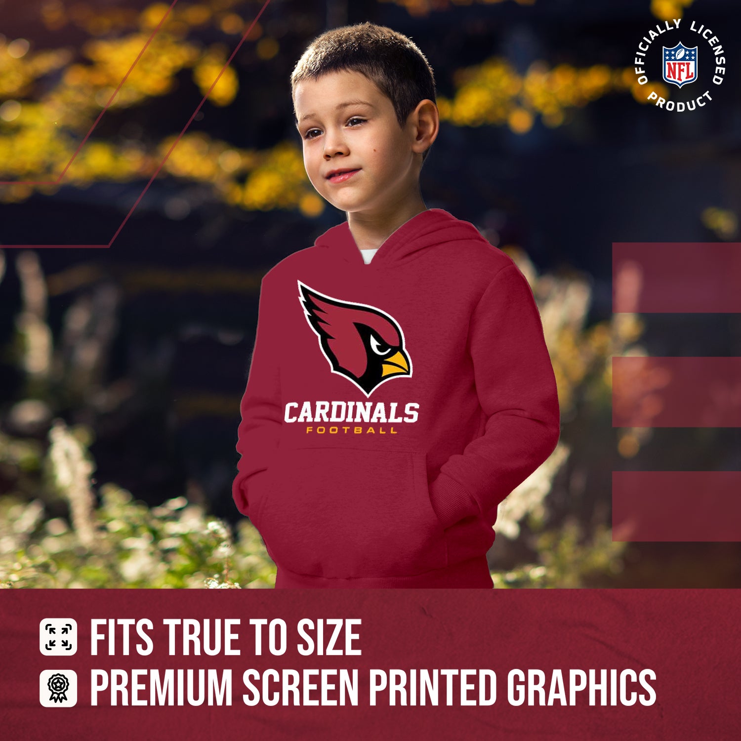 Arizona Cardinals Youth NFL Ultimate Fan Logo Fleece Hooded Sweatshirt -Tagless Football Pullover For Kids - Cardinal