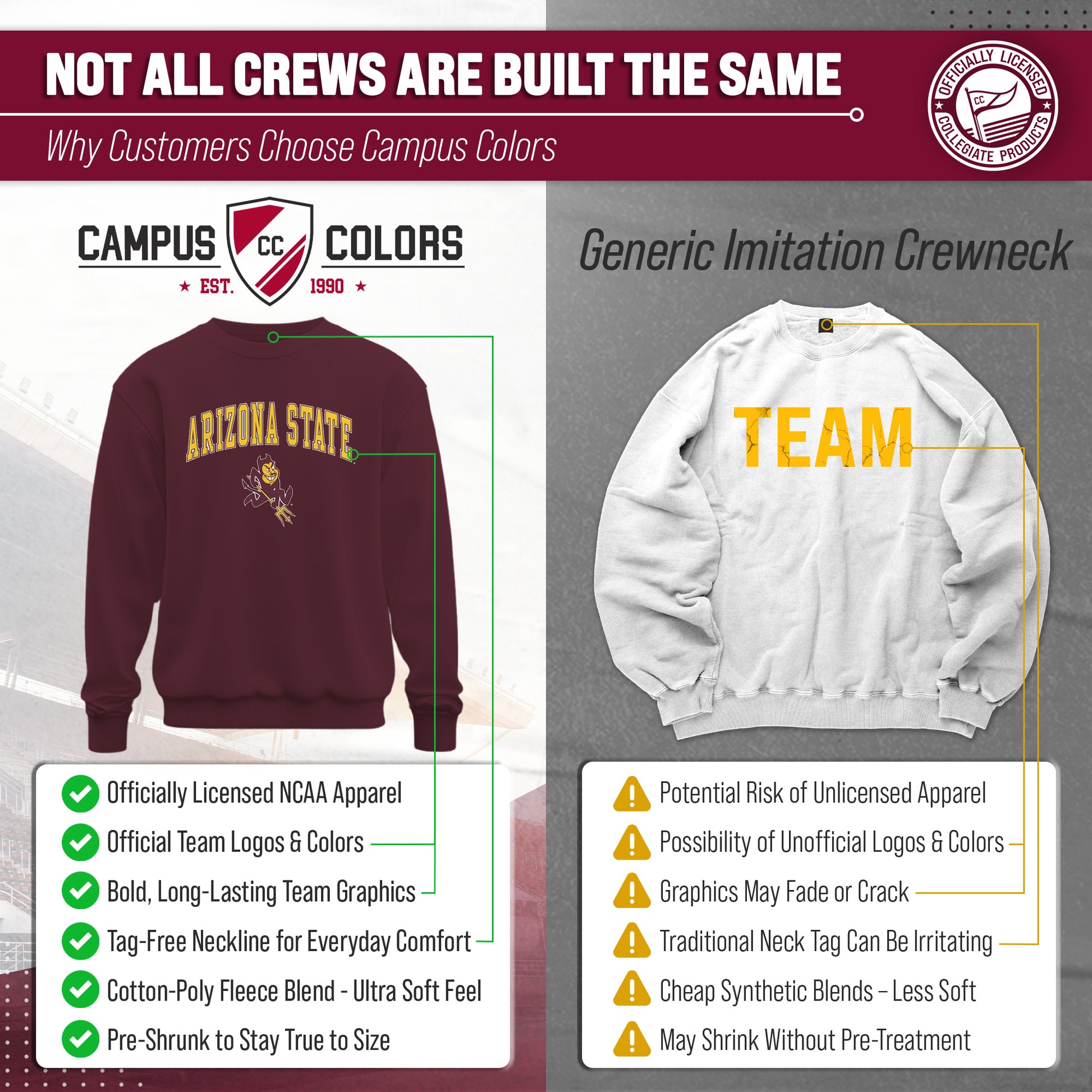 You know what's better than a perfect game? Scoring the best merch! Go ahead and show your team pride at the big game or any time! This premium-quality Gameday crew pullover is super comfy, fits both male and female adults, and comes in small, medium, large, XL, and XXL. So needless to say, it fits Arizona State Sun Devils fans of all types! Maybe you aren't a Arizona State fan but you know someone who is? Don't worry! This high-quality design machine washable unisex fit crew is perfect for anyone who loves their team. We use only the highest quality screen printing techniques to bring you the most comfortable, durable, and stylish team apparel possible. It doesn't matter if your headed to the next big game or just hanging out at home, the love of your favorite team never stops. So, make sure the everyone know who's the number one team you support. Our crew sweatshirts make the perfect gift for Father's Day, birthdays, Christmas, and more.