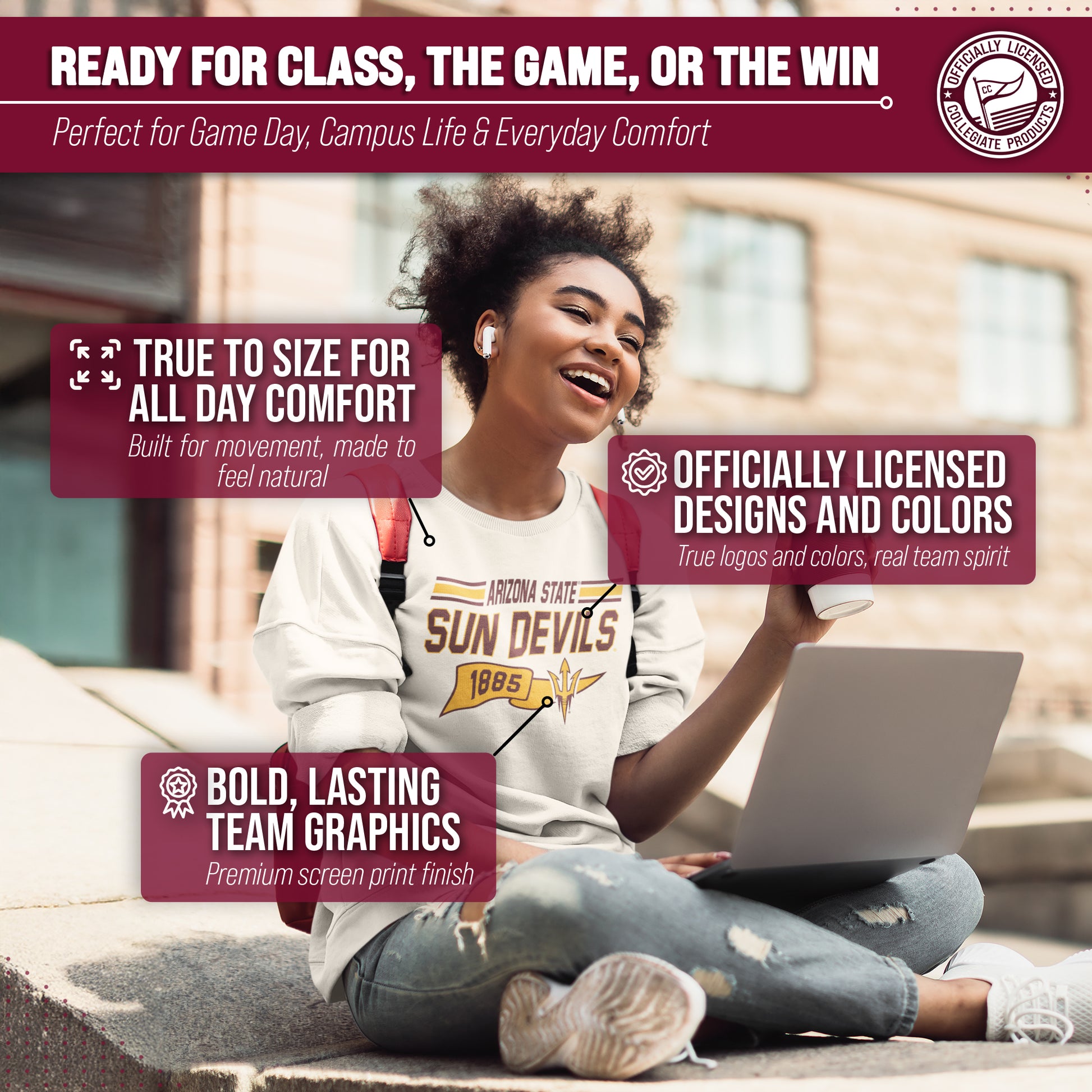 Show off your team spirit and stay warm in the NCAA Adult Unisex Varsity Club Pennant Arizona State Sun Devils Crewneck Fleece Sweatshirt! This cozy sweatshirt is perfect for any Arizona State fan, with its vibrant colored pennant design. Made from a comfortable cotton poly fleece fabric, this Sun Devils crewneck sweatshirt features long sleeves, ribbed wrists and waistband, and will keep you warm on chilly days! But that's not all - you can wear this Arizona State sweatshirt game after game without worrying about wear and tear. It's the perfect addition to your college team apparel collection, whether you're cheering on your team at the stadium or just lounging at home. It is the number one Arizona State item you'll want to have on the next cold game day! So why settle for a plain old sweatshirt when you can show off your love for Arizona State Sun Devils in style? Get your NCAA Adult Unisex Varsity Club Pennant Crewneck Fleece Sweatshirt today for yourself or any Sun Devils fan in your life and be confident know that you are rocking the most authentic and official gear!