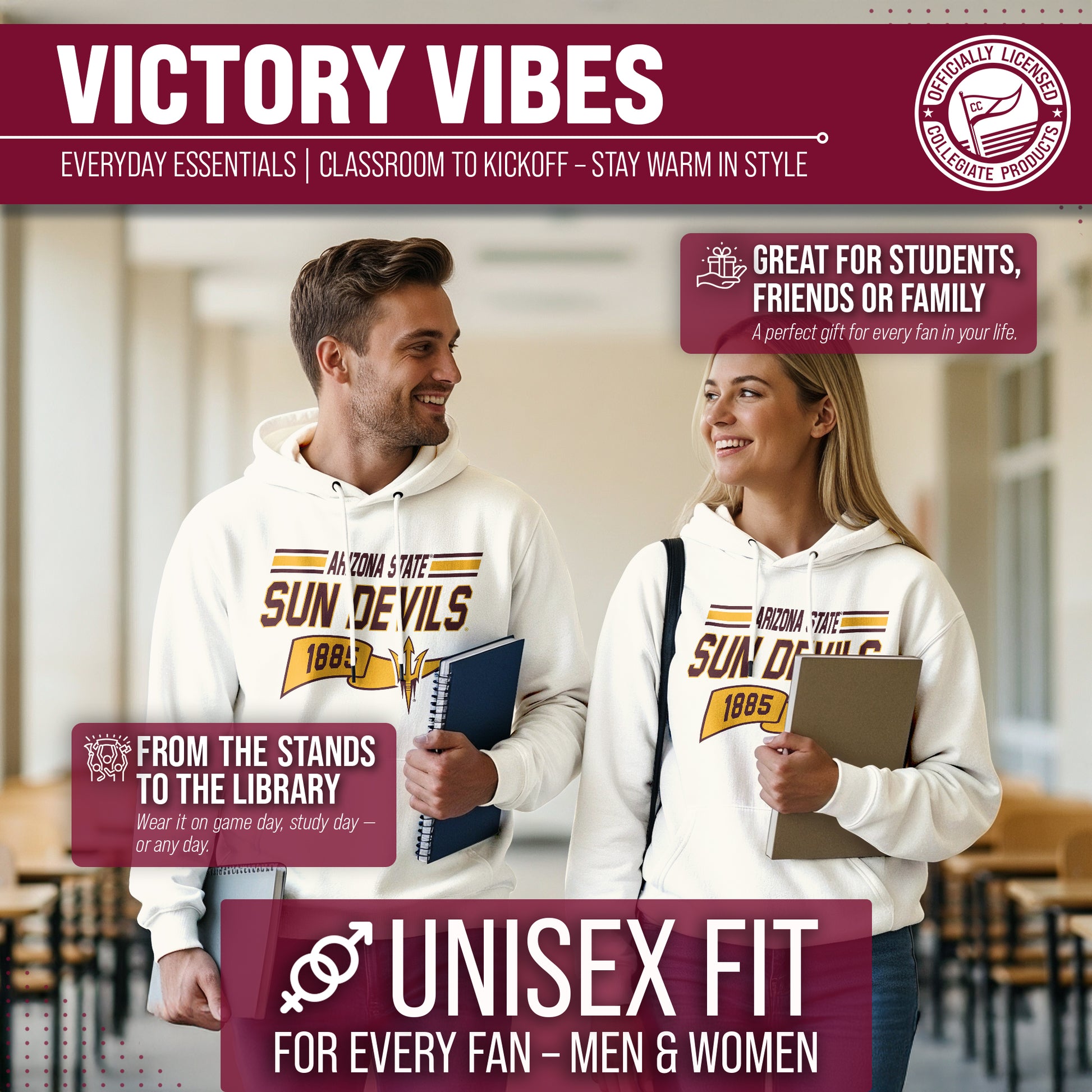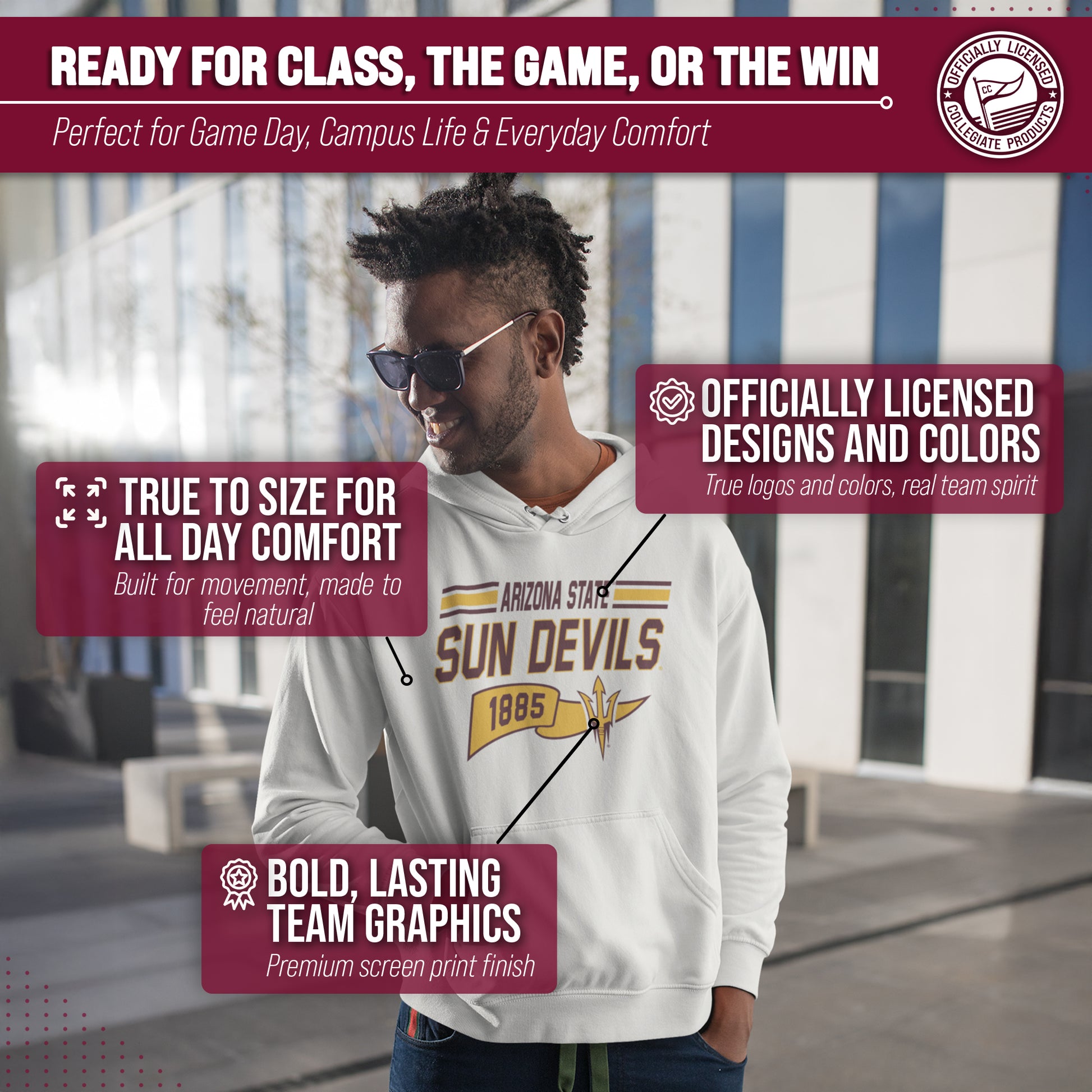 Show off your team spirit and stay warm in the NCAA Adult Unisex Varsity Club Pennant Arizona State Sun Devils Hooded Fleece Sweatshirt! This cozy sweatshirt is perfect for any Arizona State fan, with its vibrant colored pennant design. Made from a comfortable cotton poly fleece fabric, this Sun Devils hooded sweatshirt features long sleeves, a front pouch pocket, and a hood to keep you extra snug on chilly days. But that's not all - you can wear this Arizona State sweatshirt game after game without worrying about wear and tear. It's the perfect addition to your college team apparel collection, whether you're cheering on your team at the stadium or just lounging at home. It is the number one Arizona State item you'll want to have on the next cold game day! So why settle for a plain old sweatshirt when you can show off your love for Arizona State Sun Devils in style? Get your NCAA Adult Unisex Varsity Club Pennant Hooded Fleece Sweatshirt today for yourself or any Sun Devils fan in your life and be confident know that you are rocking the most authentic and official gear!