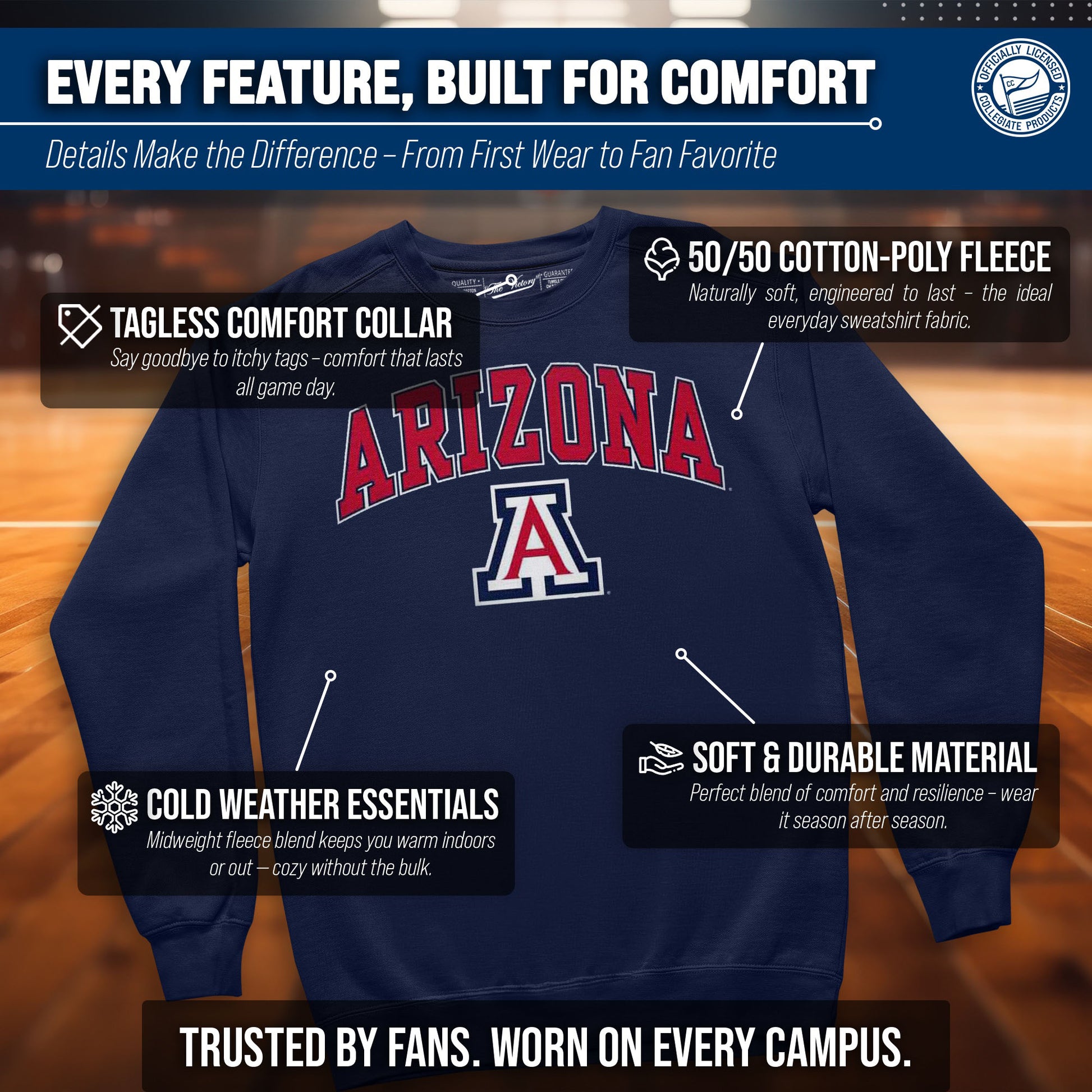 Arizona Wildcats Adult Arch & Logo Soft Style Gameday Crewneck Sweatshirt - Navy