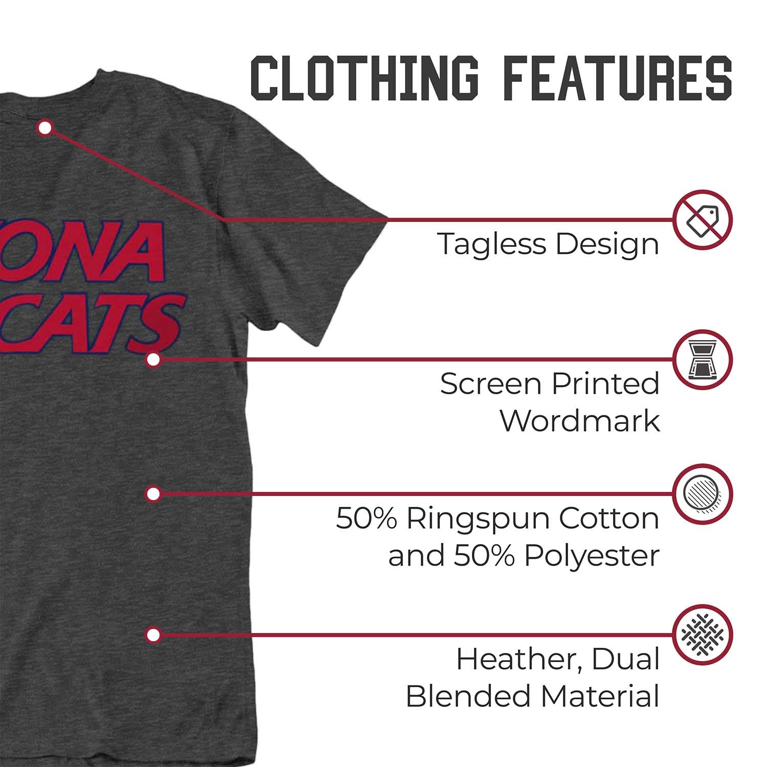 The Campus Colors Adult Heather College wordmark T-Shirt is the ultimate light, soft, and comfortable college tee. These college tshirts for mens and womens short sleeve shirt is the most versatile college or university apparel. Let us help you celebrate and showcase school pride with our durable and lightweight t-shirt. This tee features a quality, screen printed wordmark that will last wear after wear. The official wordmark design gives you the look of a loyal and seasoned sports or school fan and the unique heather, dual-blended material gives a trendy, distressed look without that heavy printed feel. Made of 50% ringspun cotton and 50% polyester, the dual blend material is extremely soft, smooth and comfortable. These Arizona t shirts comes without a tag, so you'll never feel annoyed or irritated by those pesky neck tags again! This tee is essential apparel for any college sports fan or university student. This classic college apparel t-shirt will stand out and is perfect for walking around campus, going to class, hanging out with friends, or wearing to the gym. It's the perfect college shirt for staying cool at a hot gameday tailgate! The unisex fit and design makes it ideal for both men and women! Quality college t shirt makes the best birthday, Christmas, or graduation gifts for current students, alumnus, upcoming graduates, proud parents or NCAA fans; Our university t-shirts run true to size. All quality logos and colors are officially licensed and are of the highest quality. Show off your school pride with this official short sleeve t-shirt! Be confident and wear this Arizona shirt knowing your fandom is superior.