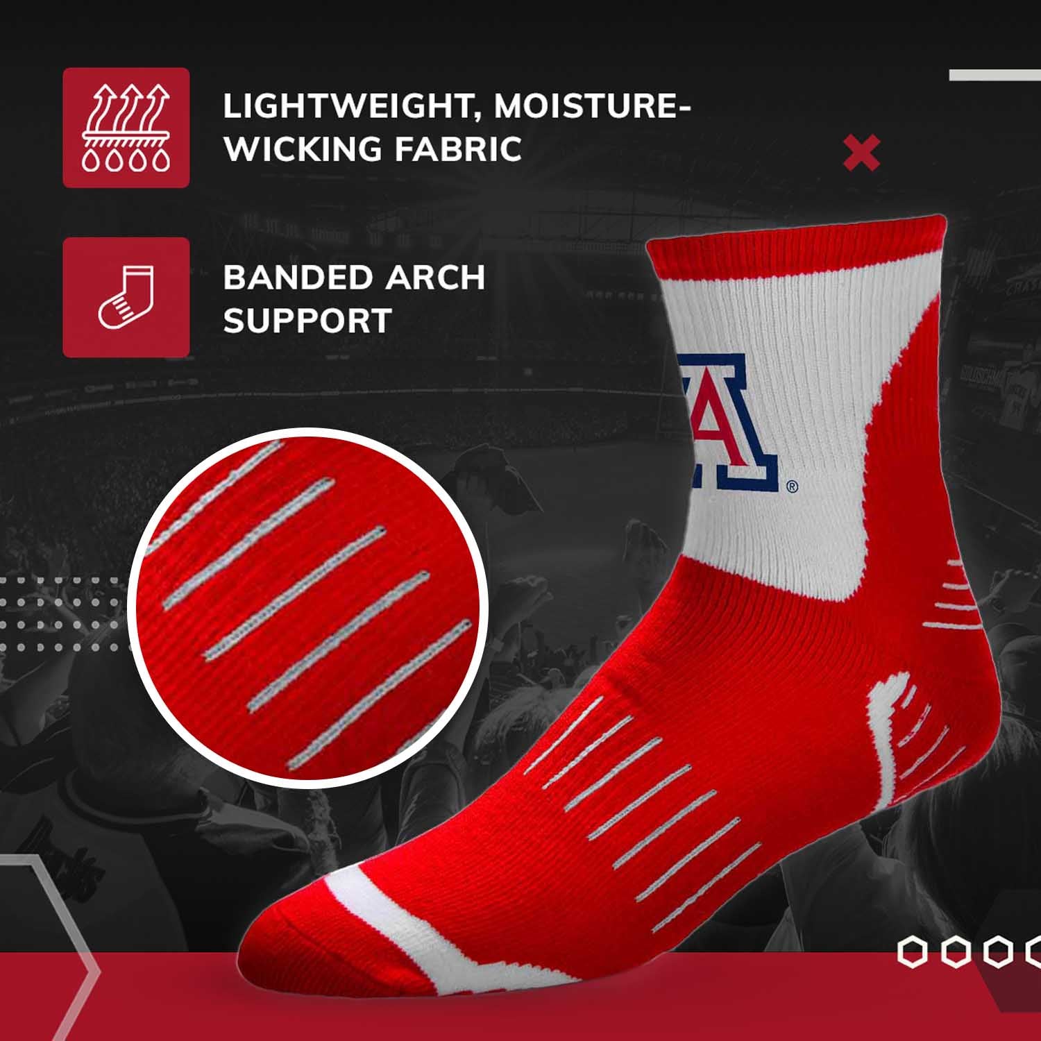 Arizona Wildcats Adult NCAA Surge Quarter Length Crew Socks - Red