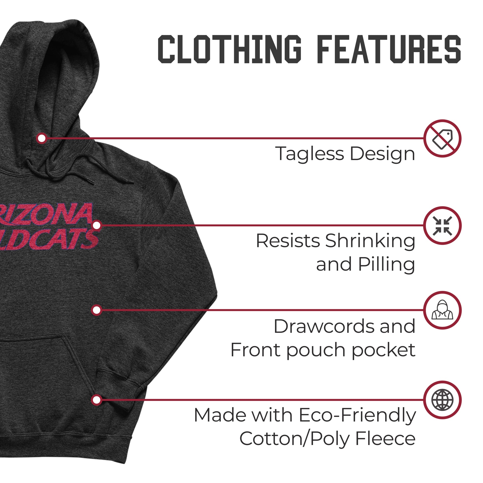 Arizona Wildcats NCAA Adult Cotton Blend Charcoal Hooded Sweatshirt - Charcoal