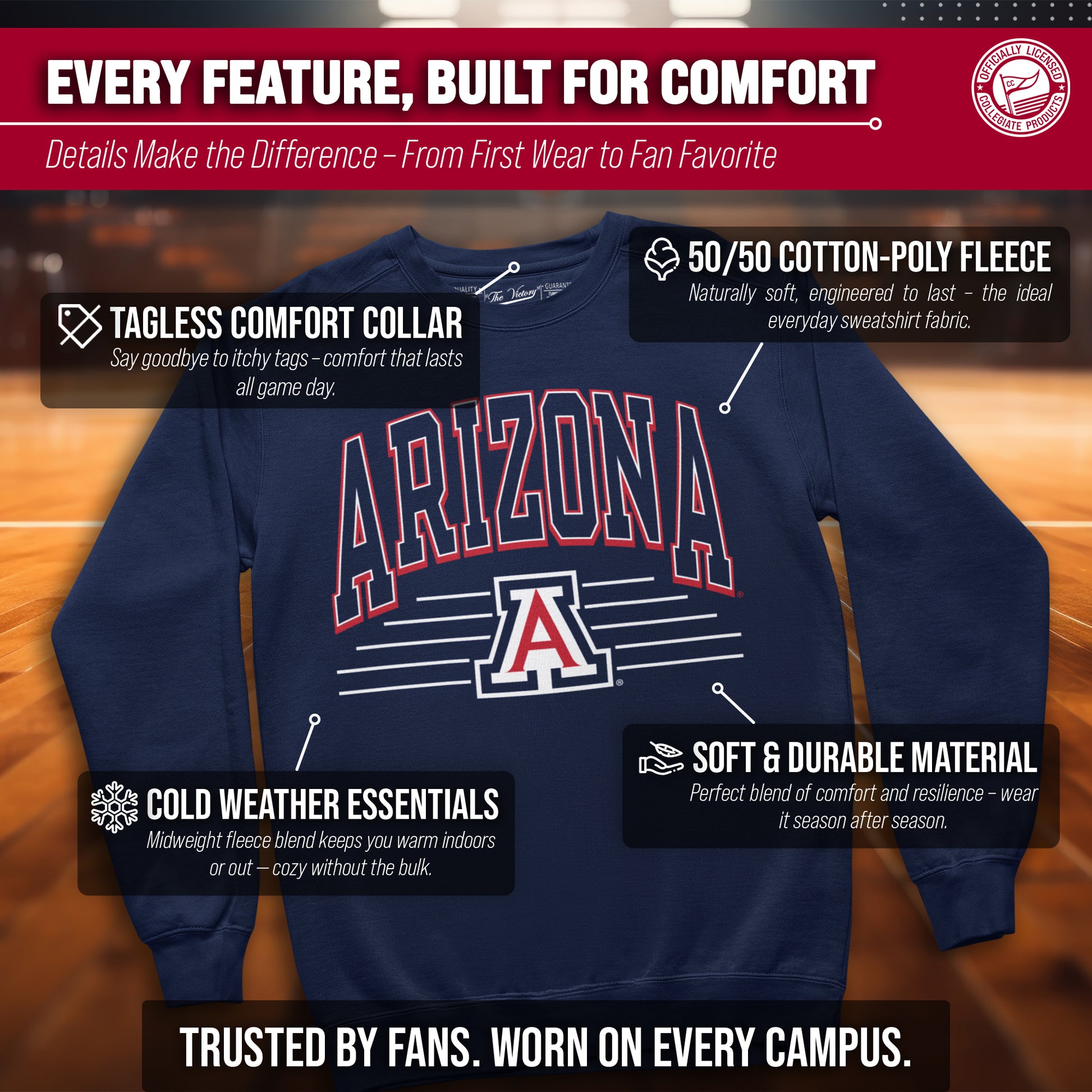 Arizona Wildcats NCAA Adult Unisex Overtime Classics Crewneck Fleece Sweatshirt - Navy