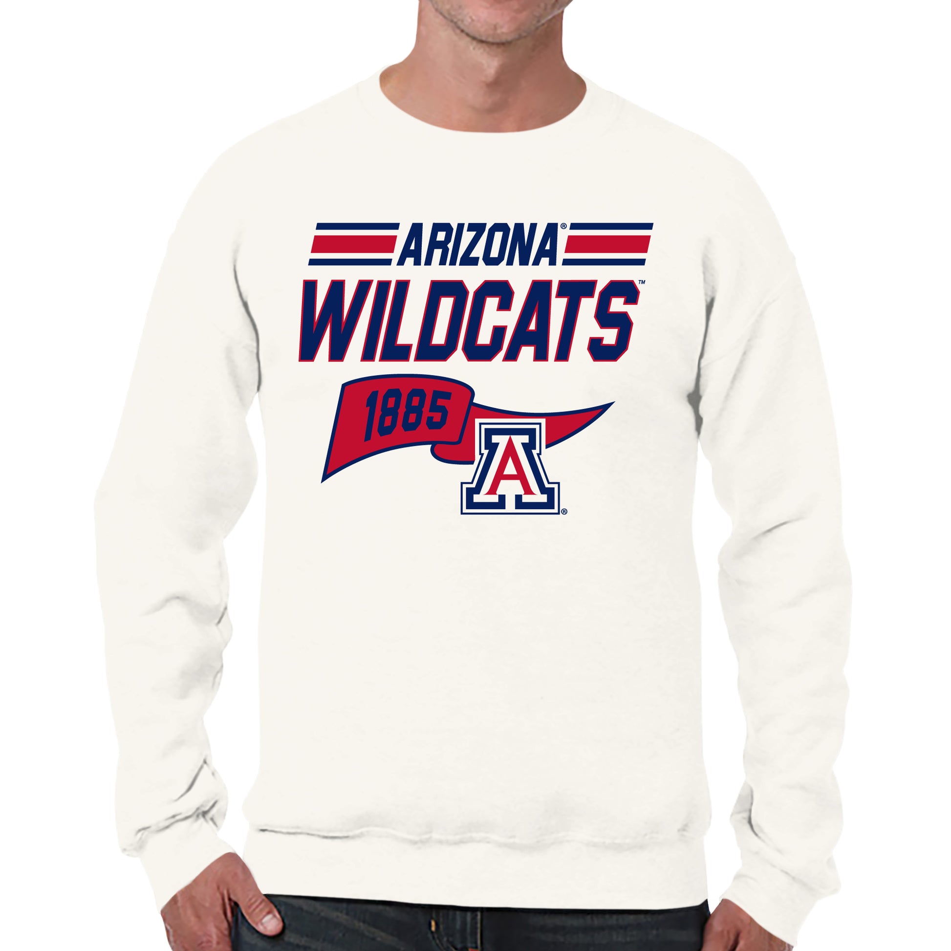 Arizona Wildcats NCAA Adult Unisex Varsity Club Pennant Crewneck Fleece Sweatshirt - Off White