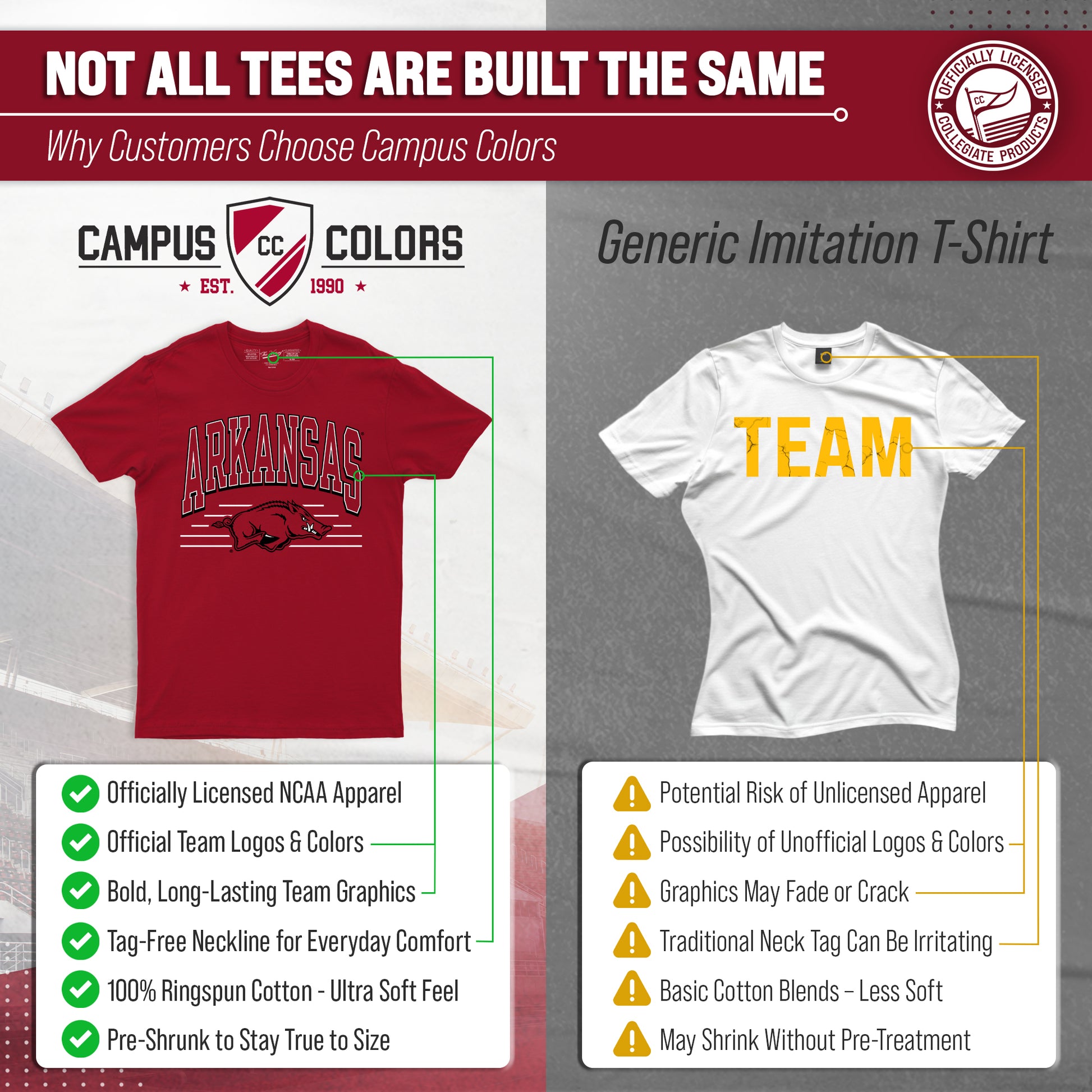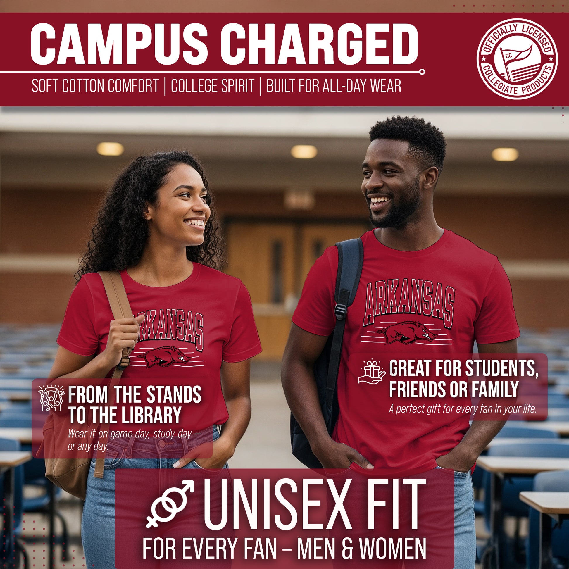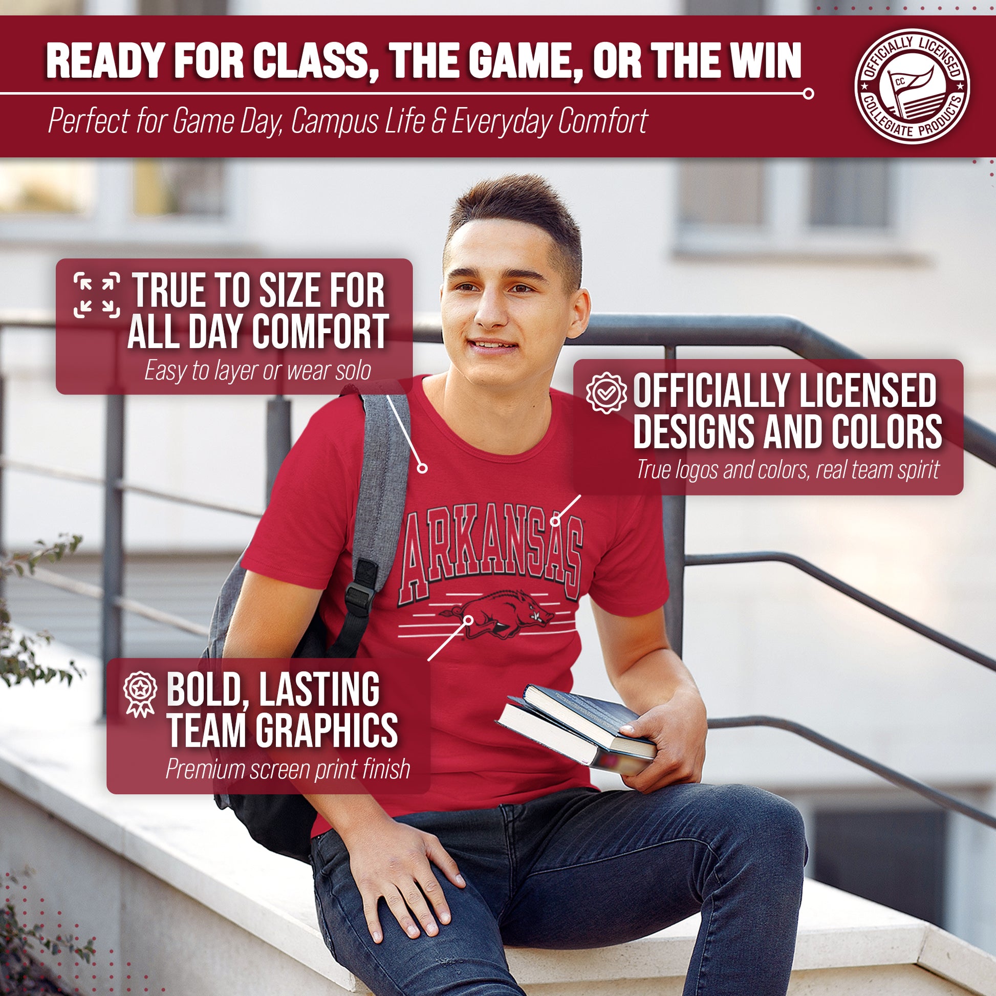 Go Team, Go! Show off your school spirit with the NCAA Adult Unisex Overtime Classics Arkansas Razorbacks T-Shirt! Our officially licensed apparel will have you feeling like a member of the team! Made from comfortable and breathable cotton and featuring a teamcolor garment, this t-shirt is perfect for game days, tailgates, or just lounging around. The tag-less design ensures ultimate comfort and no annoying tags to distract you from cheering on your team. Perfect for wearing to the big game, watching from home, hanging with friends, or even working out! Our Overtime CLassics Arkansas Razorbacks shirt makes a great gift for yourself, or any Razorbacks fan in your life! Our shirts are made from ringspun cotton for a soft feel against your skin and features a classic design highlighting your favorite college team. With short sleeves and a variety of sizes to choose from, these t-shirts are perfect for men and women alike. So gear up for game day with the NCAA Adult Unisex Overtime Classics T-Shirt - the perfect addition to any Arkansas Razorbacks fan's wardrobe!