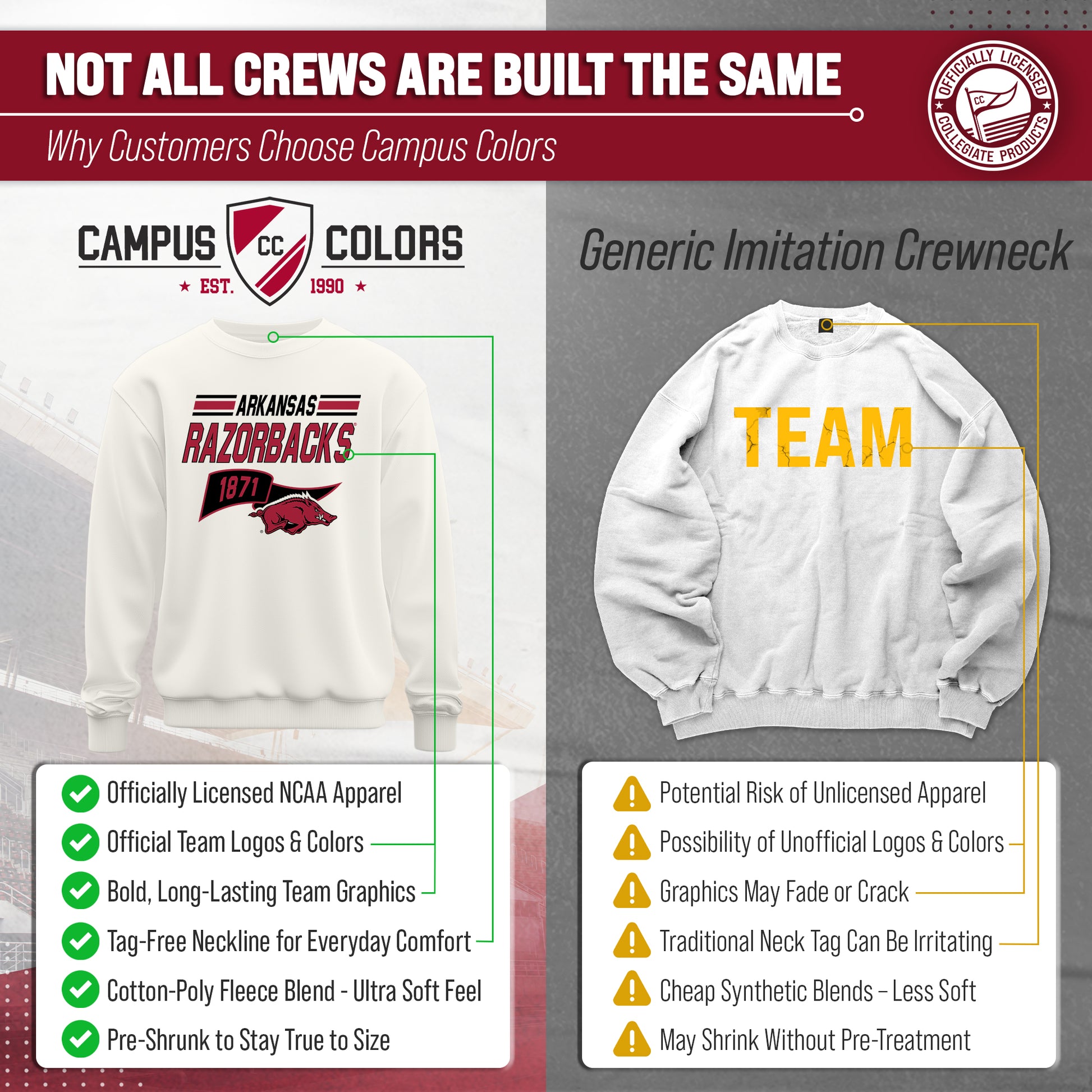 Arkansas Razorbacks NCAA Adult Unisex Varsity Club Pennant Crewneck Fleece Sweatshirt - Off White