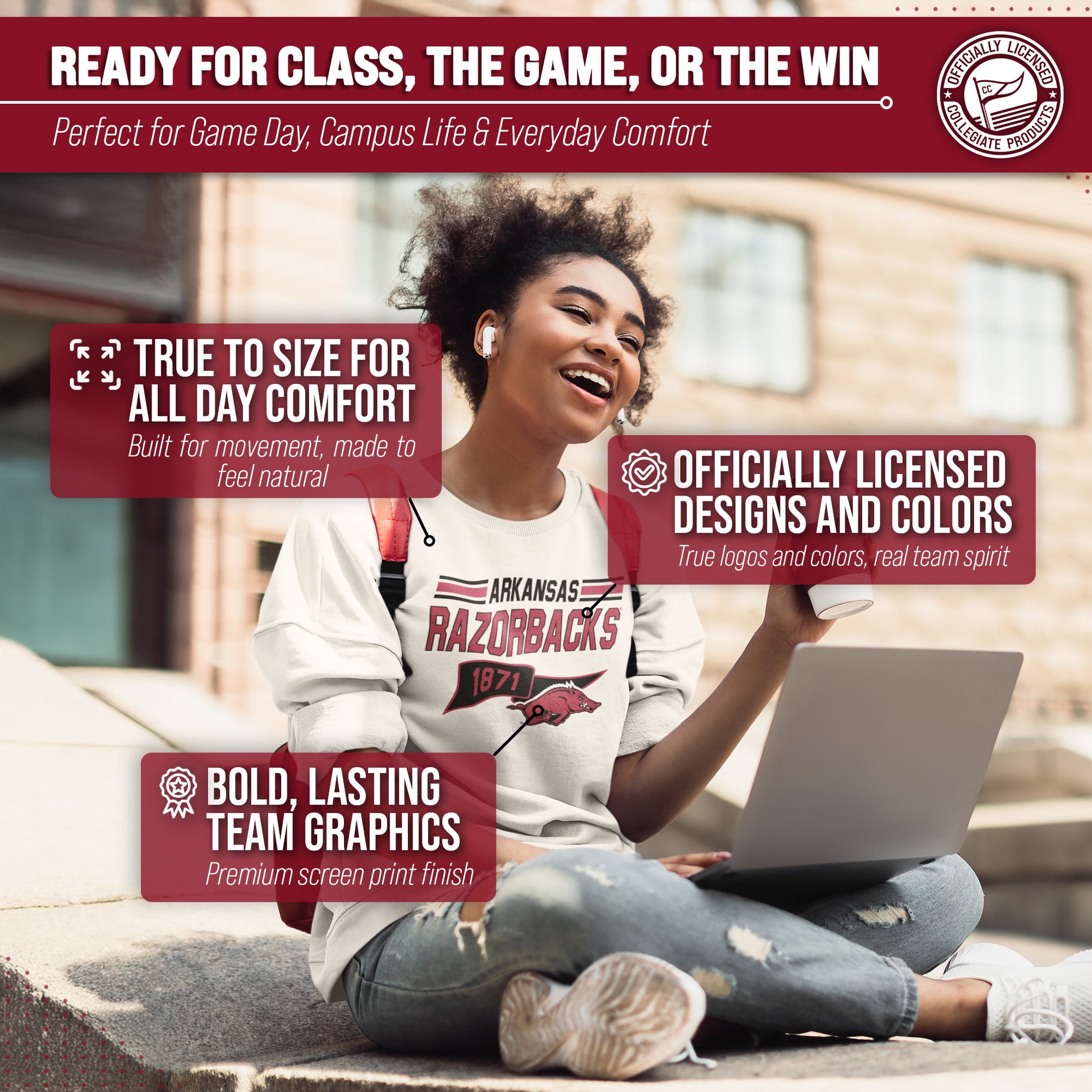 Show off your team spirit and stay warm in the NCAA Adult Unisex Varsity Club Pennant Arkansas Razorbacks Crewneck Fleece Sweatshirt! This cozy sweatshirt is perfect for any Arkansas fan, with its vibrant colored pennant design. Made from a comfortable cotton poly fleece fabric, this Razorbacks crewneck sweatshirt features long sleeves, ribbed wrists and waistband, and will keep you warm on chilly days! But that's not all - you can wear this Arkansas sweatshirt game after game without worrying about wear and tear. It's the perfect addition to your college team apparel collection, whether you're cheering on your team at the stadium or just lounging at home. It is the number one Arkansas item you'll want to have on the next cold game day! So why settle for a plain old sweatshirt when you can show off your love for Arkansas Razorbacks in style? Get your NCAA Adult Unisex Varsity Club Pennant Crewneck Fleece Sweatshirt today for yourself or any Razorbacks fan in your life and be confident know that you are rocking the most authentic and official gear!