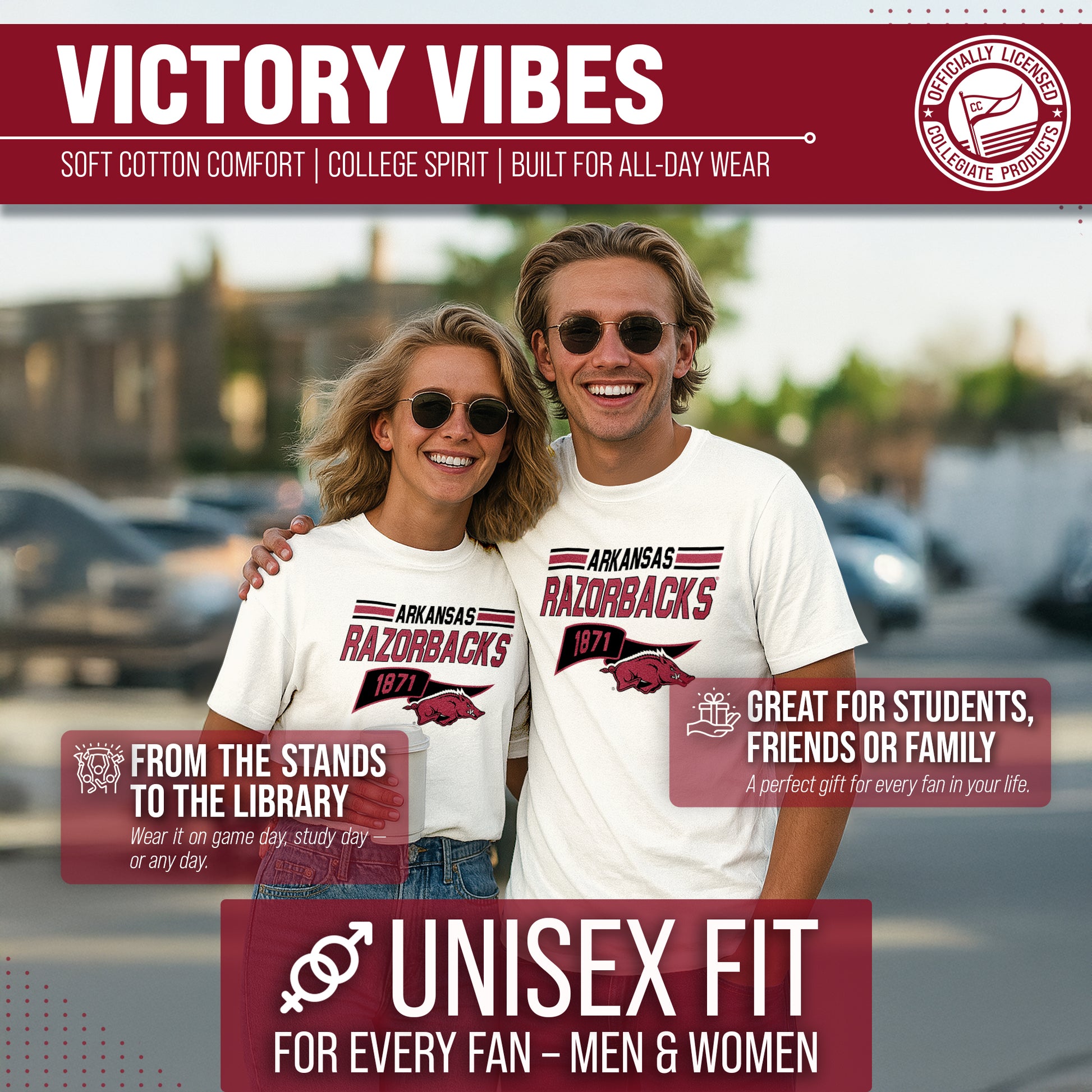 Arkansas Razorbacks NCAA Adult Unisex Varsity Club Pennant T-Shirt Tag-Less - Off White