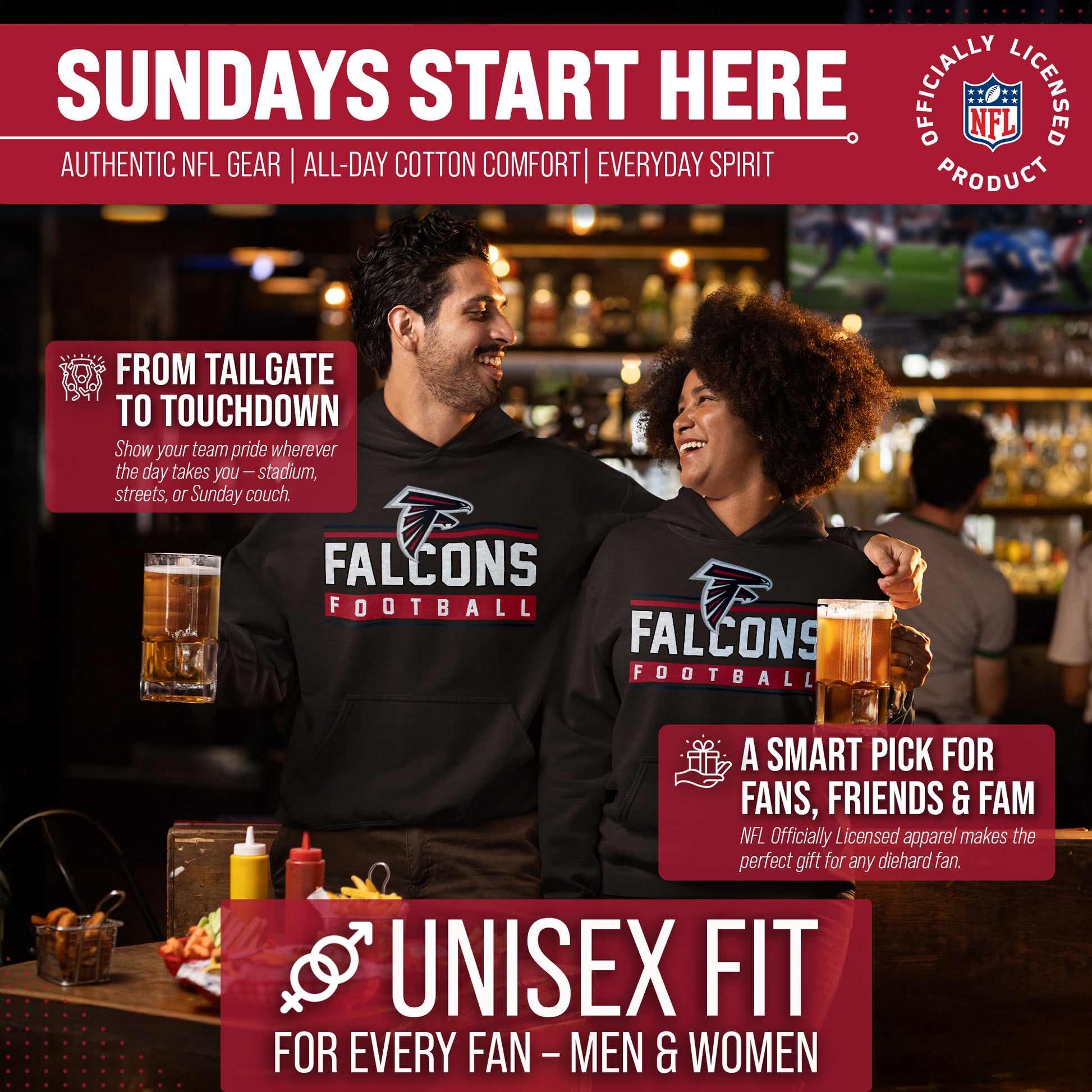 The True Fan womens and mens Atlanta Falcons hoodies are the ultimate light, soft, & comfortable sweatshirts. These Atlanta Falcons pullover hoodies are the most versatile football apparel. Let us help you celebrate your team pride with our durable and lightweight Atlanta Falcons hoodies for men and women. This sweatshirt features a quality, screen printed wordmark that will last. The official wordmark design gives you the look of a loyal and seasoned sports fan and the unique, dual-blended material gives a trendy, distressed look without that heavy printed feel. Made of 50% ringspun cotton and 50% polyester, the dual blend material is extremely soft and smooth. These Atlanta Falcons hoodies for men and women come without a tag, so you'll never feel irritated by tags again! This comfortable Atlanta hoodie makes the best birthday, Christmas, or graduation gifts for Falcons fans.