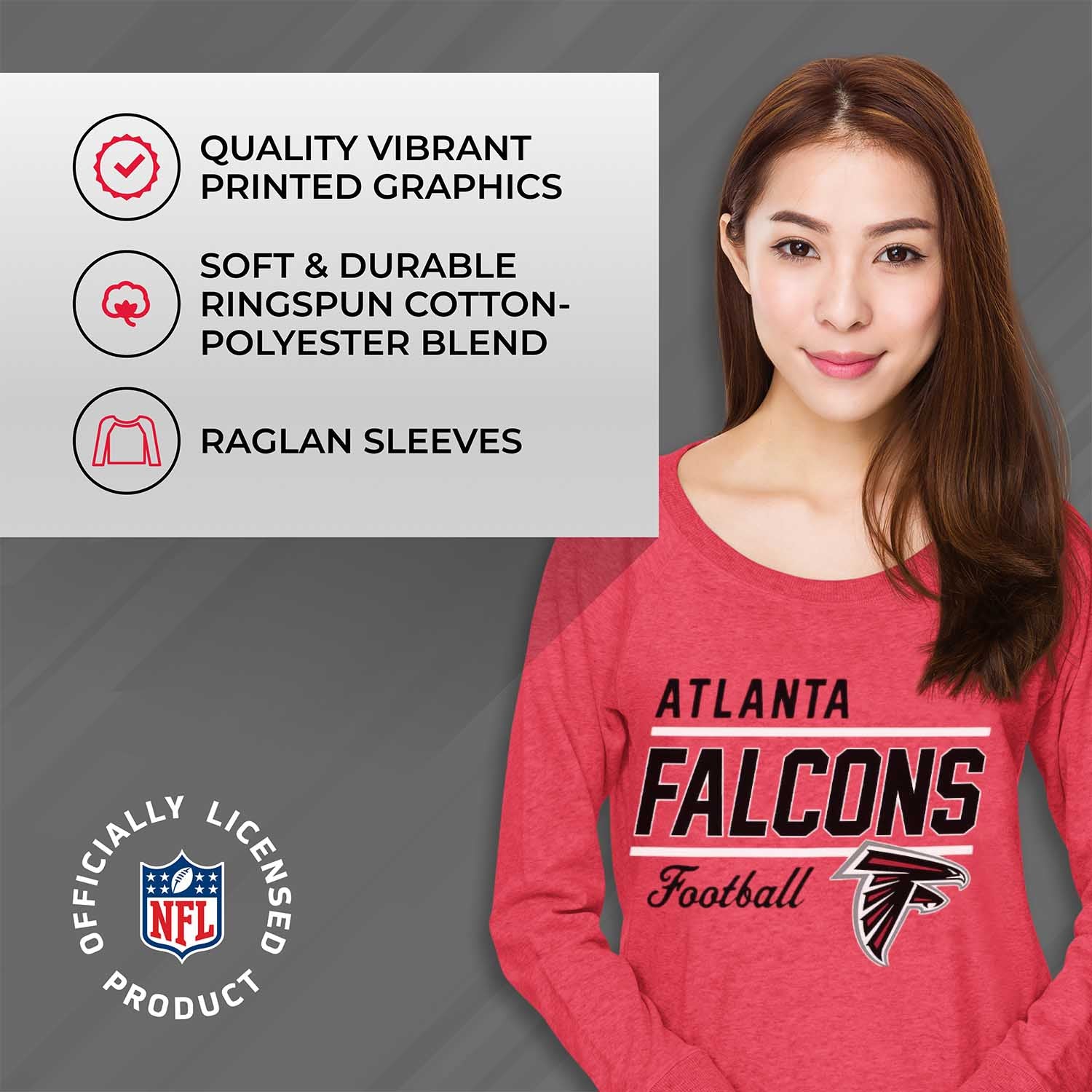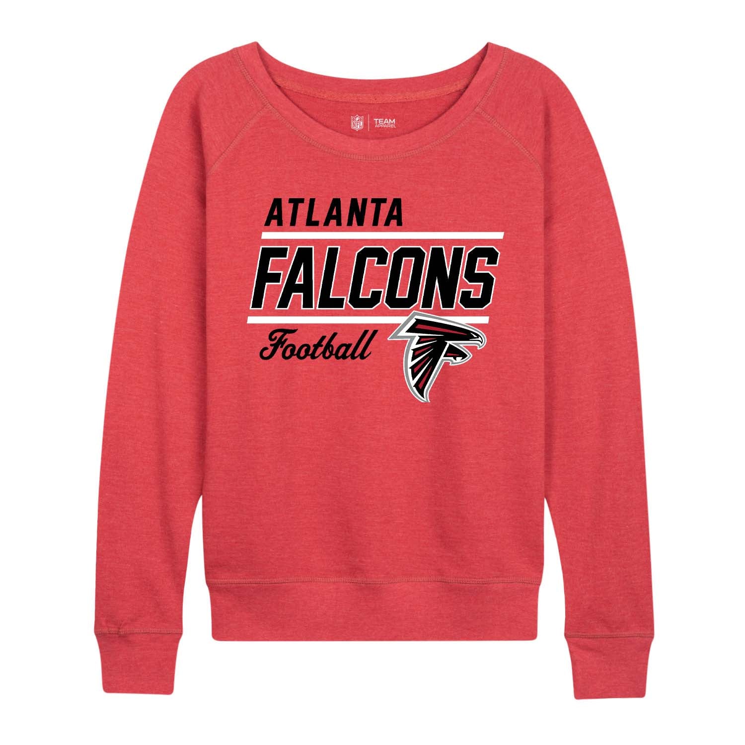 Our officially licensed Atlanta Falcons long sleeve crew neck pullover is super comfortable, runs true to size, and is great for showing off your Falcons pride. The high-quality thermal printed logo will look fresh after years of wear, making it a great alternative to wearing a Atlanta Falcons womens jersey. Our womens long sleeve Gameday crewneck has a relaxed fit for a casual, comfortable look. The long sleeve Falcons crew will look great with shorts at tailgates in warmer months, or with jeans or leggings when it gets cooler. Layer it with a hoodie or even a Atlanta football jersey when the weather gets cold. Available in plus sizes up to 3XW, this is a Atlanta Falcons pullover that women who are plus size or straight size will feel comfortable in. If you're looking to give the gift of ladies Falcons apparel, our long sleeved Atlanta Falcons Slouchy Crew is the perfect gift. Officially licensed to ensure no counterfeit designs or colors, these Atlanta crews for women are perfect for super fans. Made from a cotton poly blend to keep you comfortable, the womens raglan long sleeve Gameday Slouchy Crew will definitely become one of your favorite pieces of Atlanta Falcons apparel.