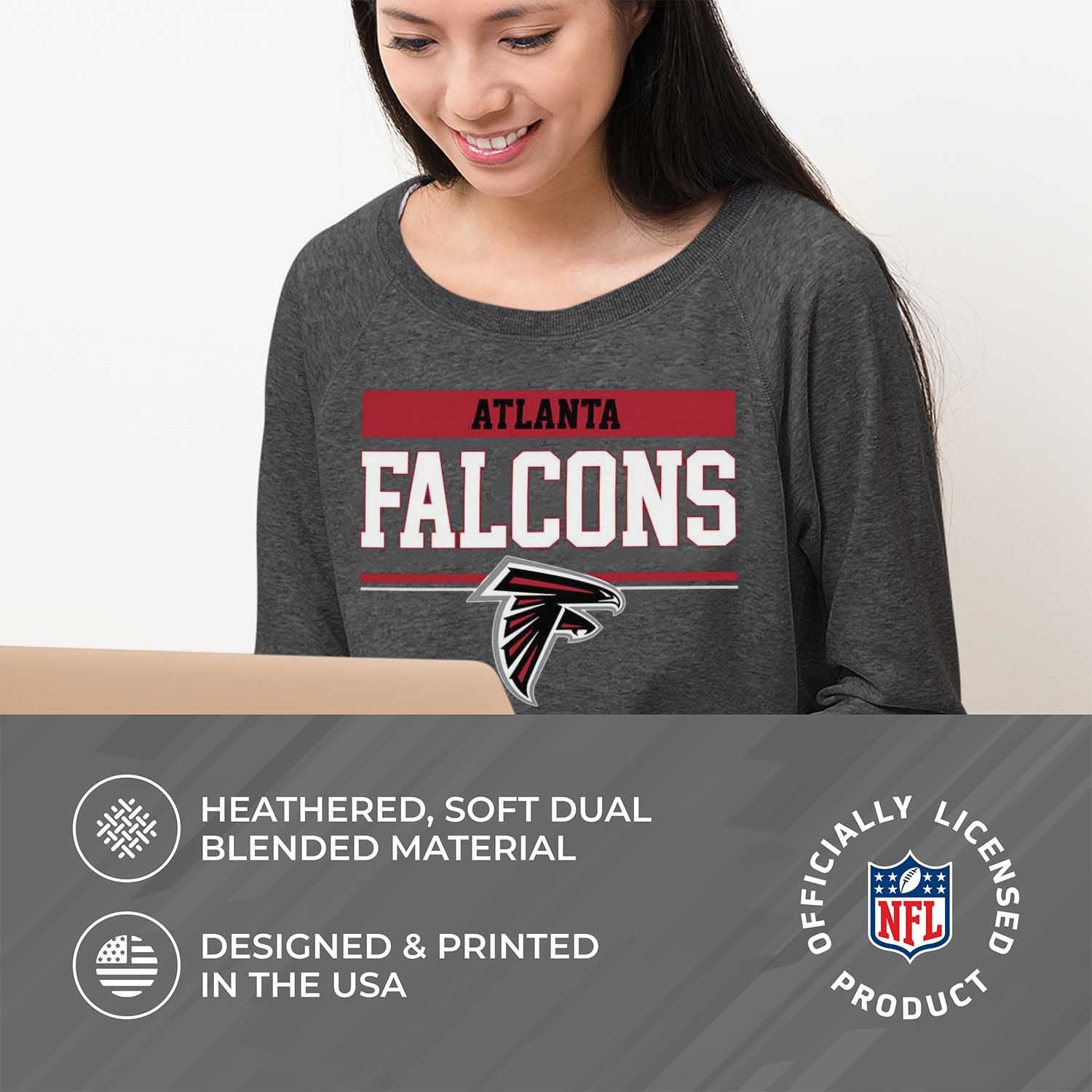 Our officially licensed womens Atlanta Falcons long sleeve charcoal crew neck pullover is super comfortable, has an oversized fit, and is great for showing off your Atlanta pride. The high-quality thermal printed logo and wordmark will look fresh after years of wear, making it a great alternative to wearing a Atlanta Falcons womens jersey. Our womens long sleeve slouchy crewneck has a relaxed fit for a casual, comfortable look. The long sleeve Atlanta crew will look great with shorts at tailgates in warmer months, or with jeans or leggings when it gets cooler. Layer it with a hoodie or even a Atlanta football jersey when the weather gets cold. Available in plus sizes up to 3XL, this is a Atlanta Falcons pullover that women who are plus size or straight size will feel comfortable in. If you're looking to give the gift of ladies Atlanta apparel, our long sleeved Atlanta Falcons Slouchy Crew is the perfect gift. Officially licensed to ensure no counterfeit designs or colors, these Atlanta crews for women are perfect for super fans. Made from a cotton poly blend to keep you comfortable, the womens raglan long sleeve Gameday Slouchy Crew will definitely become one of your favorite pieces of Atlanta Falcons apparel.