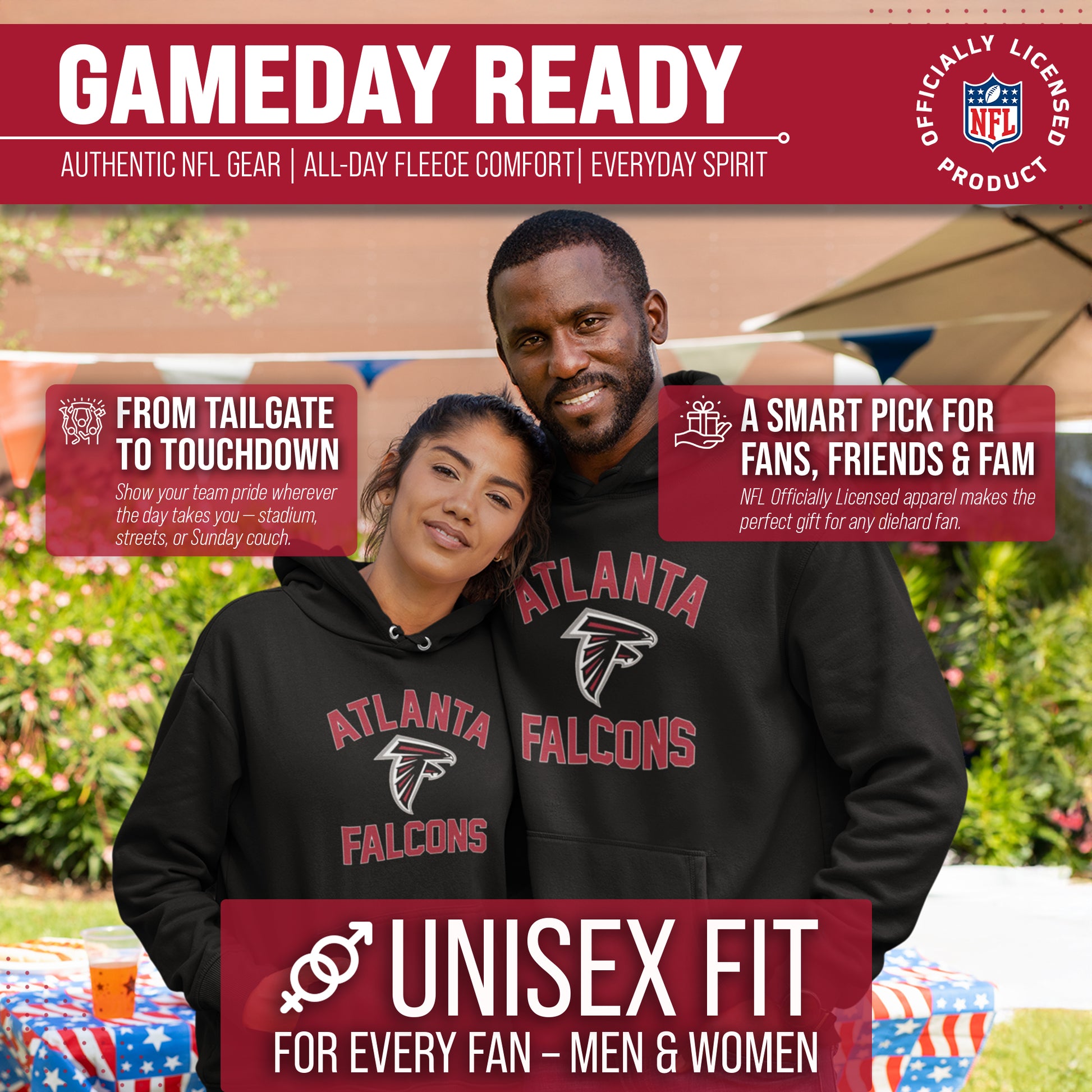 Atlanta Falcons NFL Gameday Adult Hooded Sweatshirt - Black