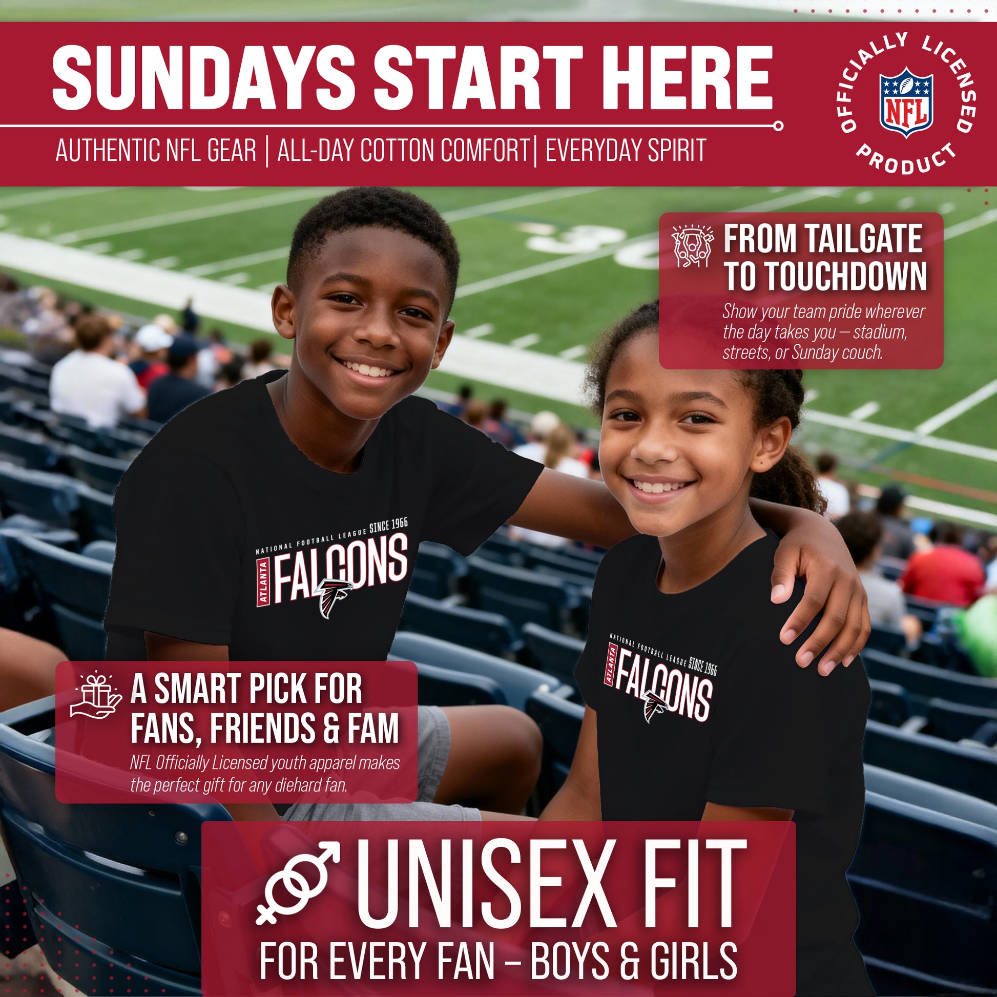 Atlanta Falcons NFL Youth Modern Endzone Football T-Shirt Unisex Tag Free Comfortable - Black