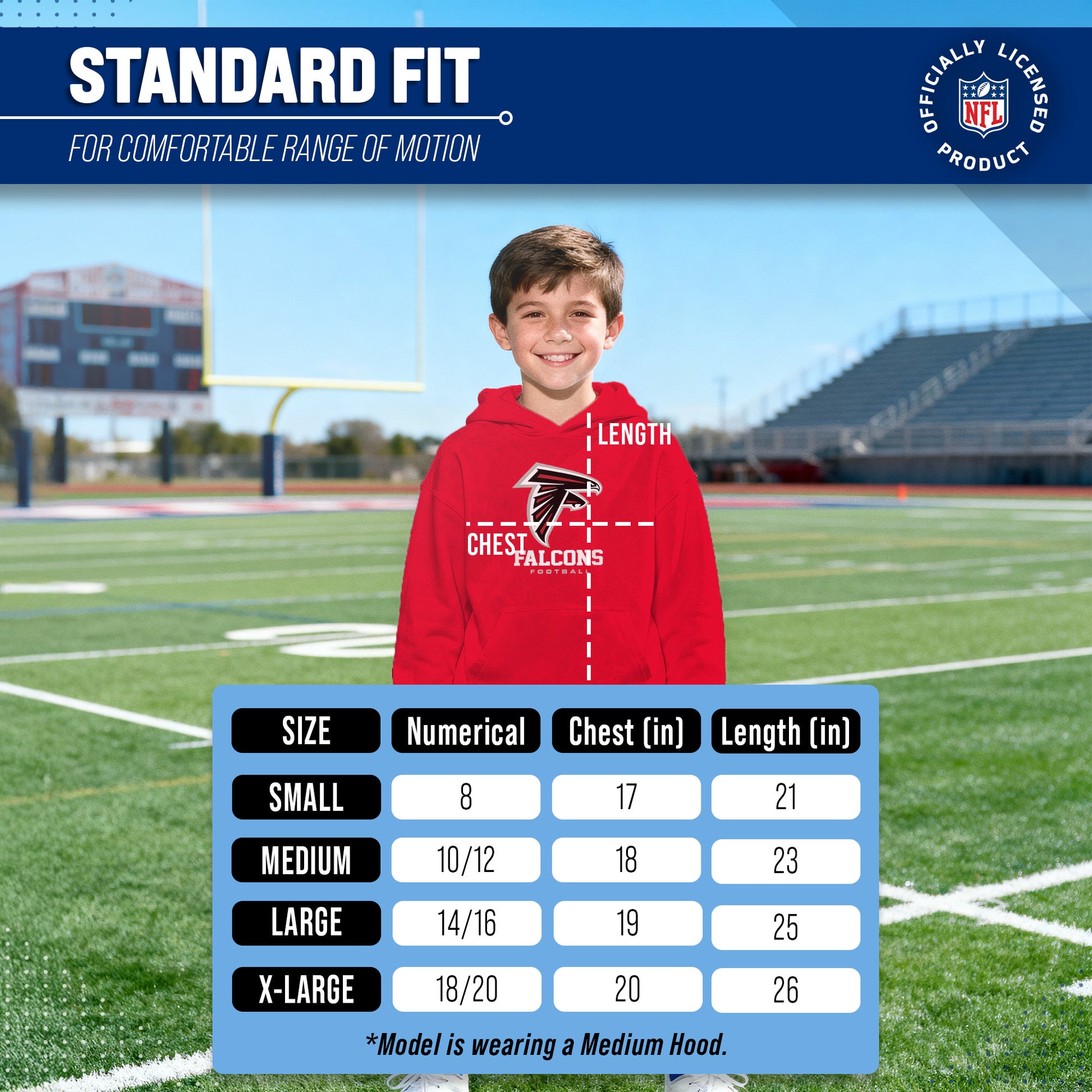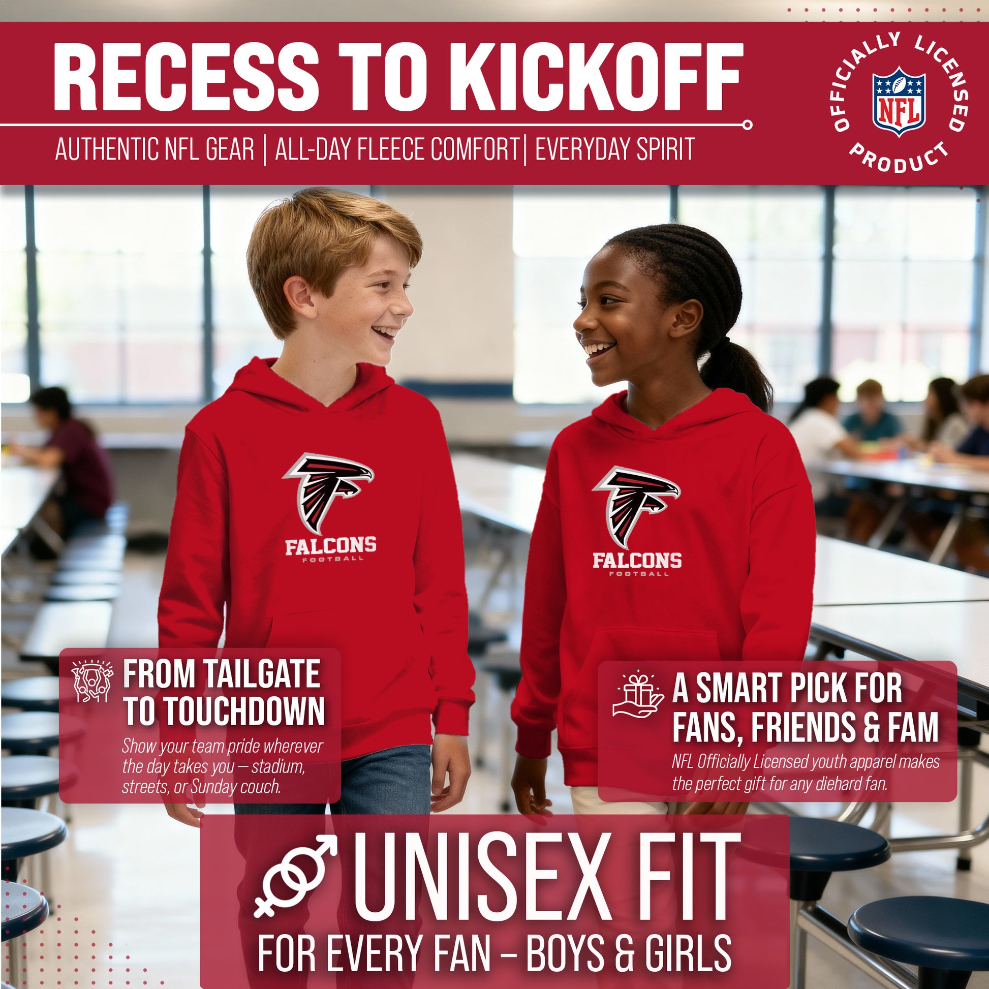 Atlanta Falcons Youth NFL Ultimate Fan Logo Fleece Hooded Sweatshirt -Tagless Football Pullover For Kids - Red