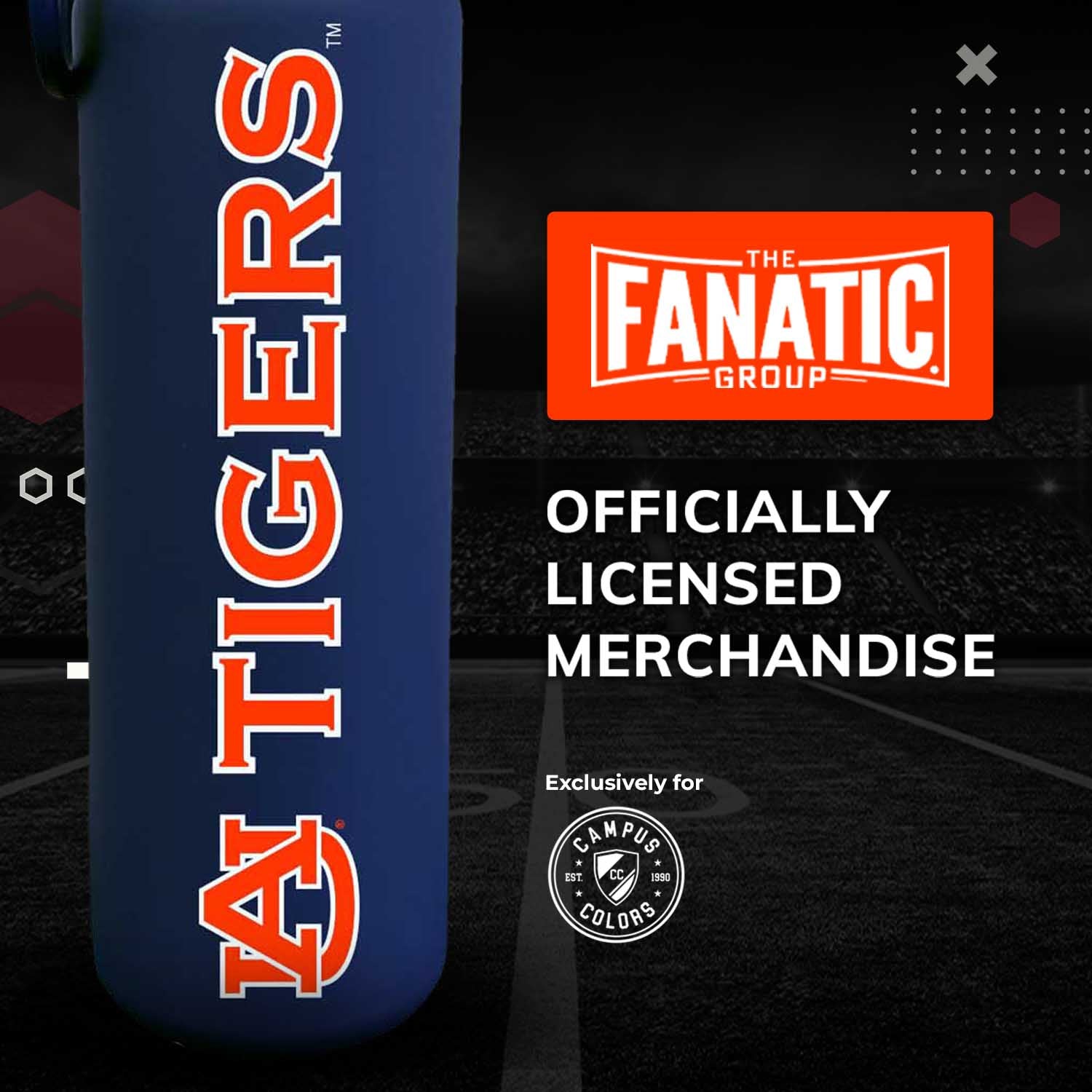 This officially licensed 24oz Auburn water bottle is the best accessory for any Auburn Tigers fan. You can use this water bottle 24 oz for water, sports drink, or even to keep your coffee hot. Our vacuum sealed sport bottle ensures that your drinks stay hot or cold for hours. You can bring this bottle along to sport games, hikes, or tailgates on game day. This sport water bottle 24 oz is a slim bottle that fits in most car cup holders for convenience. This stainless sports water bottle features an easy flow spout for the best drinking experience. The twist on cap features an easy drinking spout to make sipping a breeze. The bottle's lid twists on and off to reveal an easy drinking mouthpiece. The convenience of our double walled water bottles make them perfect for sports and everyday life! Show off your school spirit with this Auburn Tigers water bottle. This durable stainless sports water bottle make the perfect Auburn Tigers accessories for any activity. Our water bottle with clip for backpack is perfect for student campus life and busy alumni activities. Our vacuum sealed water bottles feature a built in handle. The easy grab bottle allows you to sip your water without spilling it on yourself while playing sports or walking to class. The college water bottle is coated in silicone for added grip and softer finish, and the exterior is sweat free so the Auburn water bottle won't drip on you. This insulated water bottle is the perfect birthday or Christmas gift for fans who love to collect Auburn stuff. Pair with other Auburn novelties or apparel for the ultimate Tigers gift for women and men. Auburn gear is great as birthday gifts for college students, alumni, and sport fans. With our Auburn Tigers water bottle, fans can show team pride and stay hydrated all day and every day!