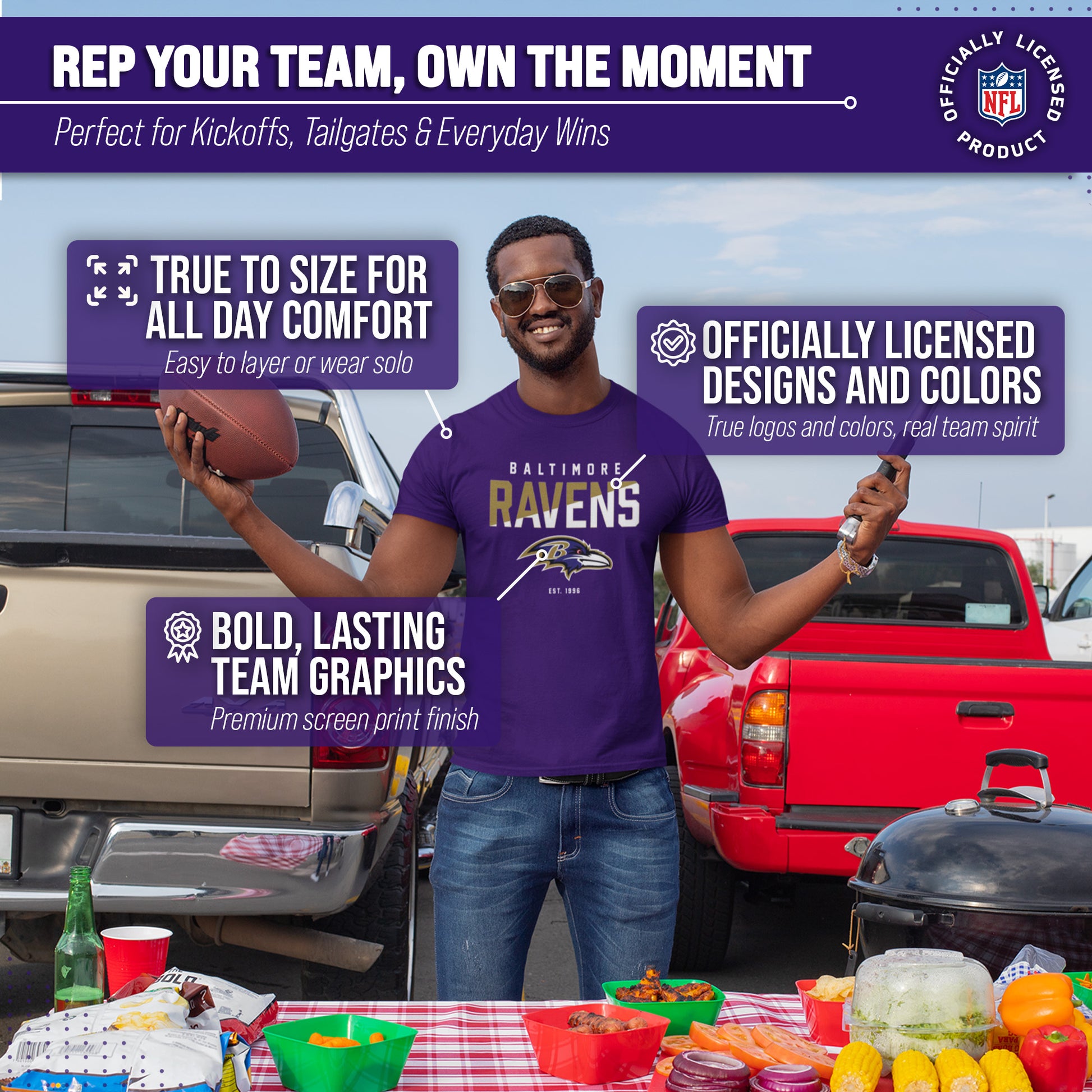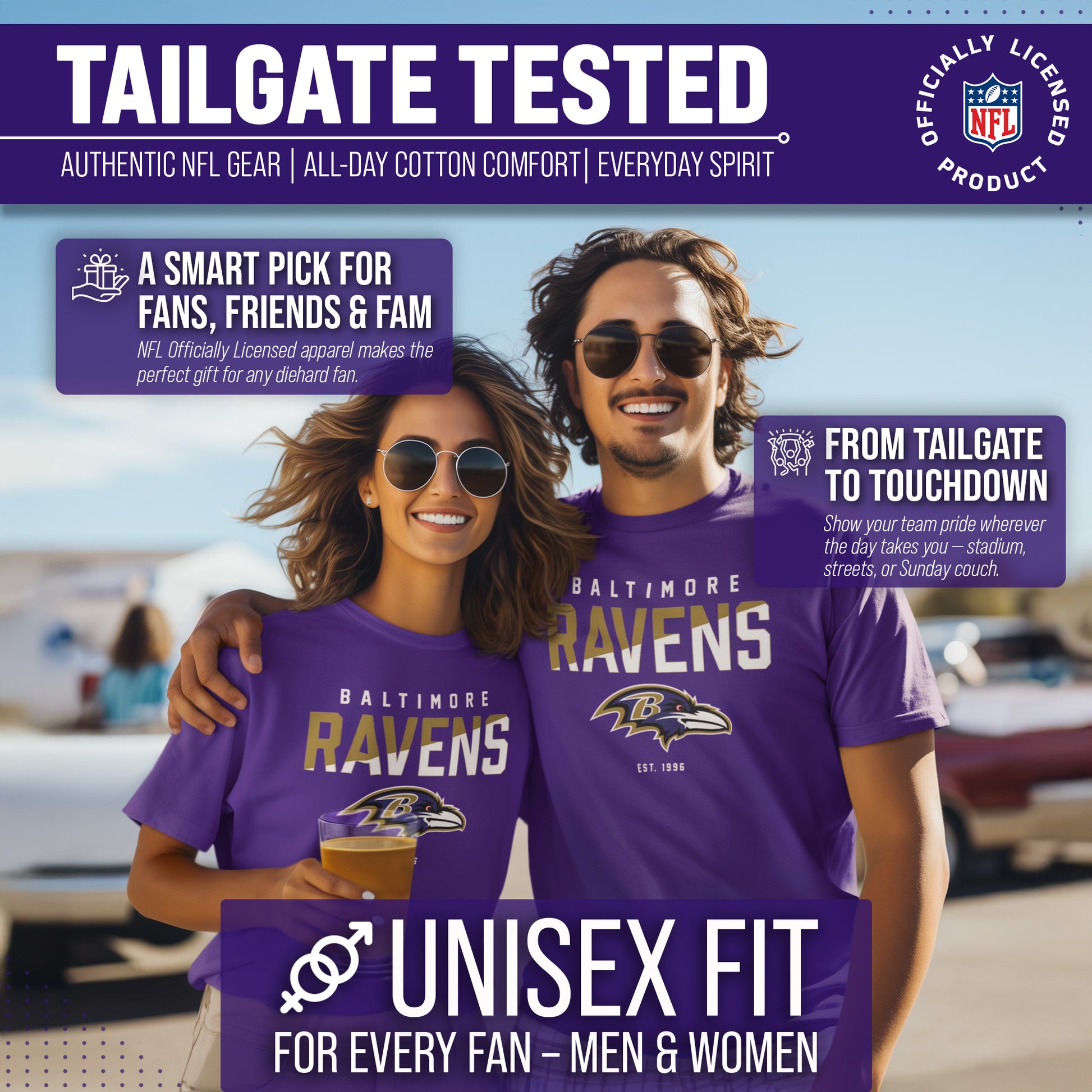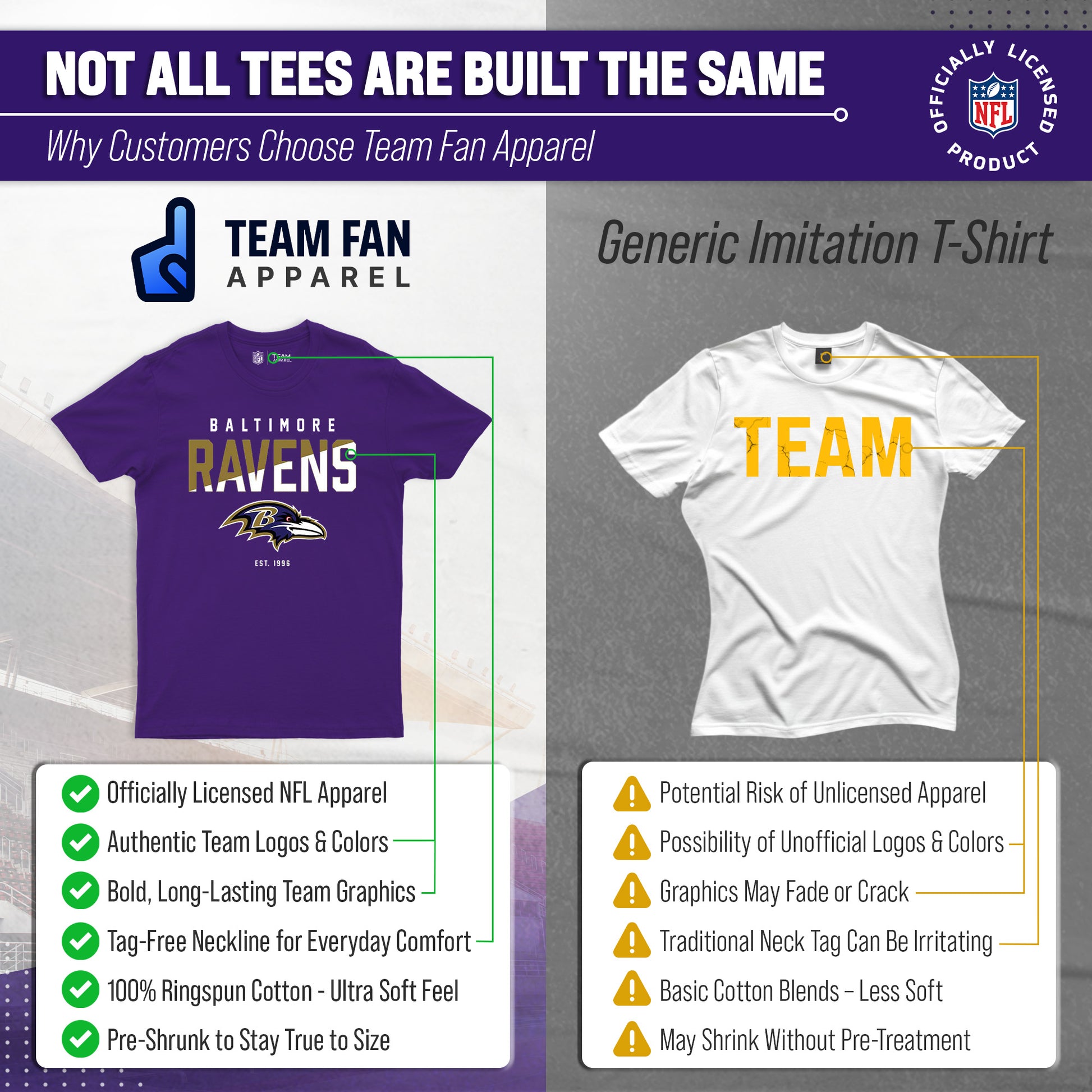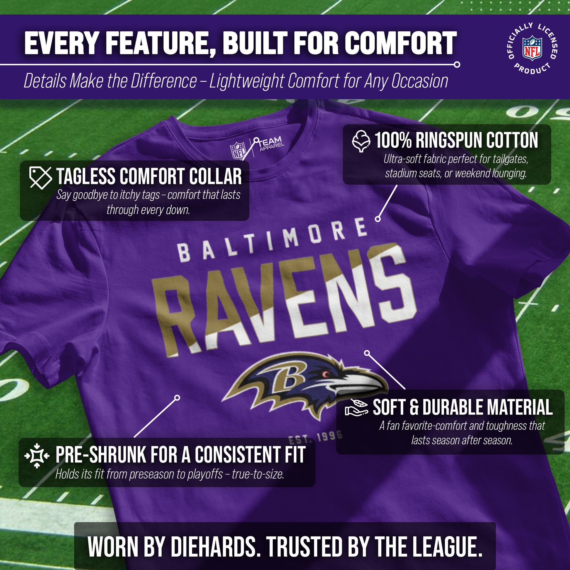Score with Team Fan Apparel, the ultimate destination for officially licensed NFL apparel for men and women. We use only the highest quality screen printing techniques to bring you the most comfortable, durable, and stylish clothing possible. Go ahead and show your team pride at the big game or any time! This premium t-shirt fits both male and female adults and comes in small, medium, large, XL, and XXL. So needless to say, it fits Baltimore Ravens fans of all types! Maybe you aren't a Ravens fan but you know someone who is? Don't worry! This high-quality t-shirt is soft, lightweight, breathable and a GREAT gift for any birthday, anniversary, Father's Day, Mother's day, you name it! So, if you want to stand out as the #1 fan at the next big game or watch party, you're going to want to be wearing one of these hockey t-shirts.